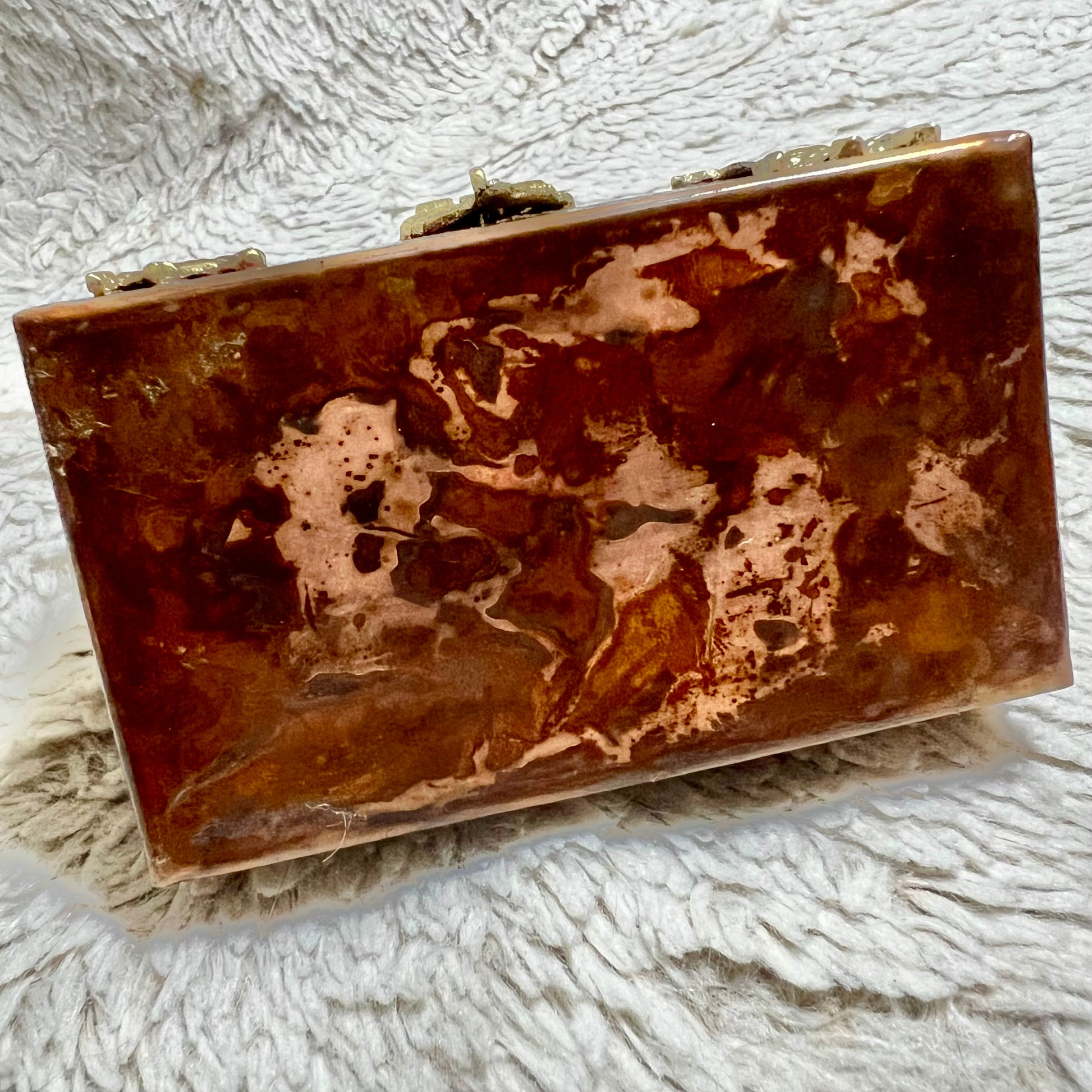 Antique Art Nouveau Miniature Elegant Cooper & Brass box w/ intricate details & Blue Velvet-Lined Interior.