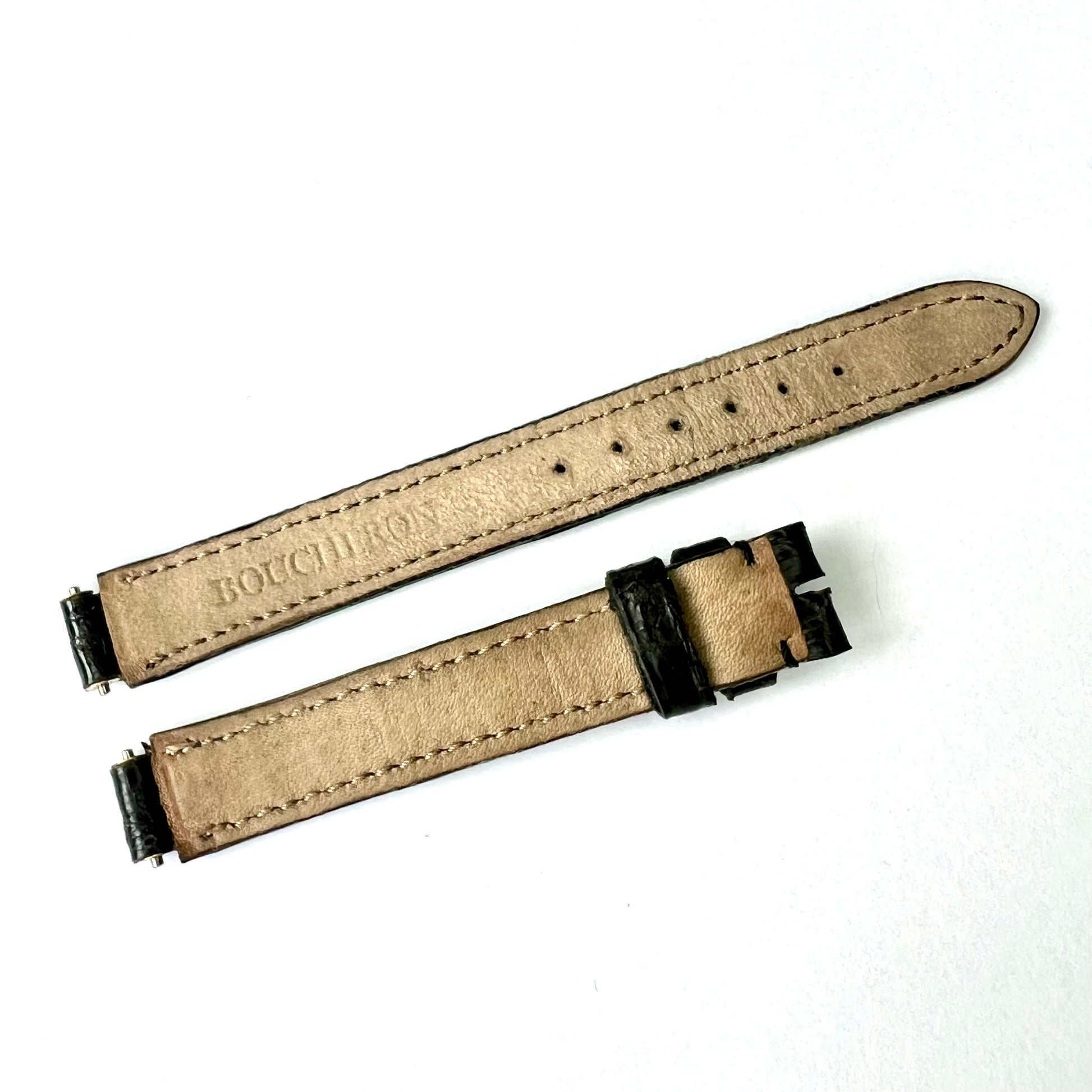 BOUCHERON 9/12mm Black Crocodile Skin Strap w/ Original Pins