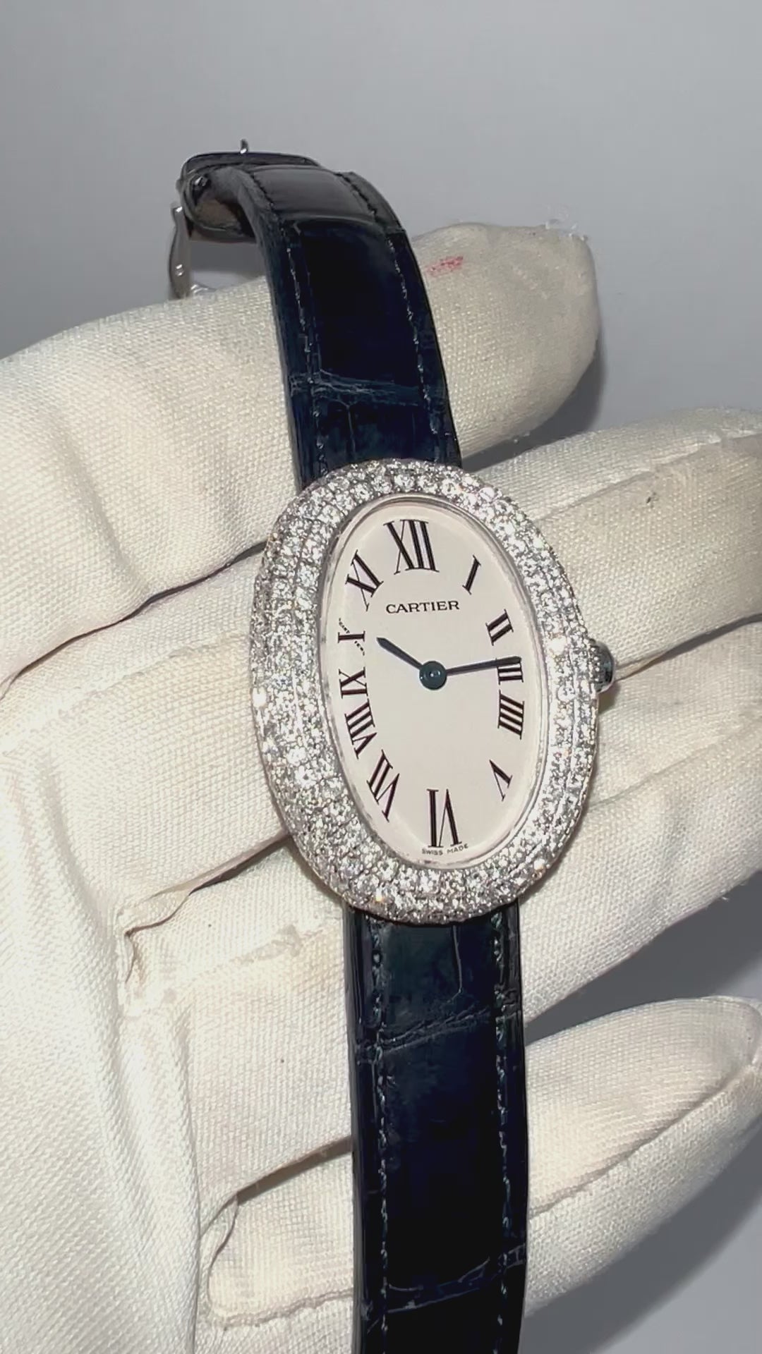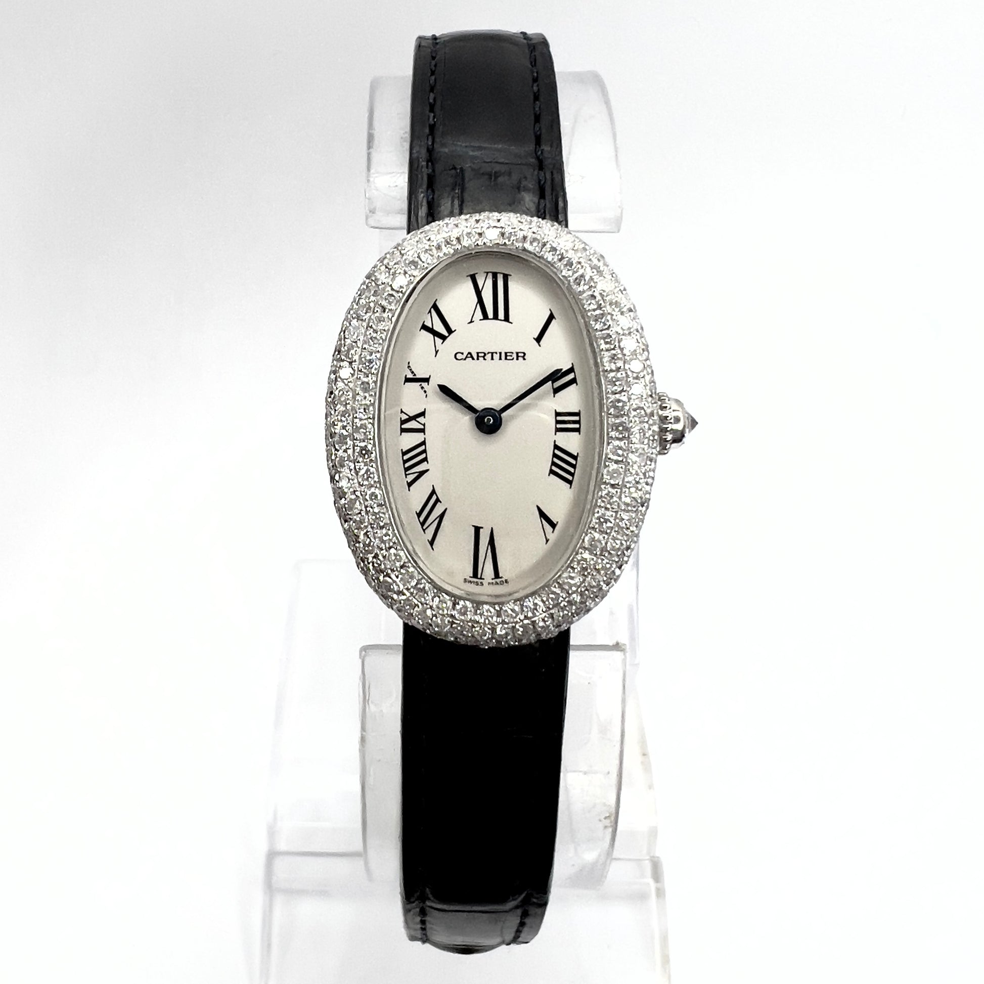 Authentic Pre Owned CARTIER BAIGNOIRE Quartz 18K White Gold 2.02TCW Diamond Watch