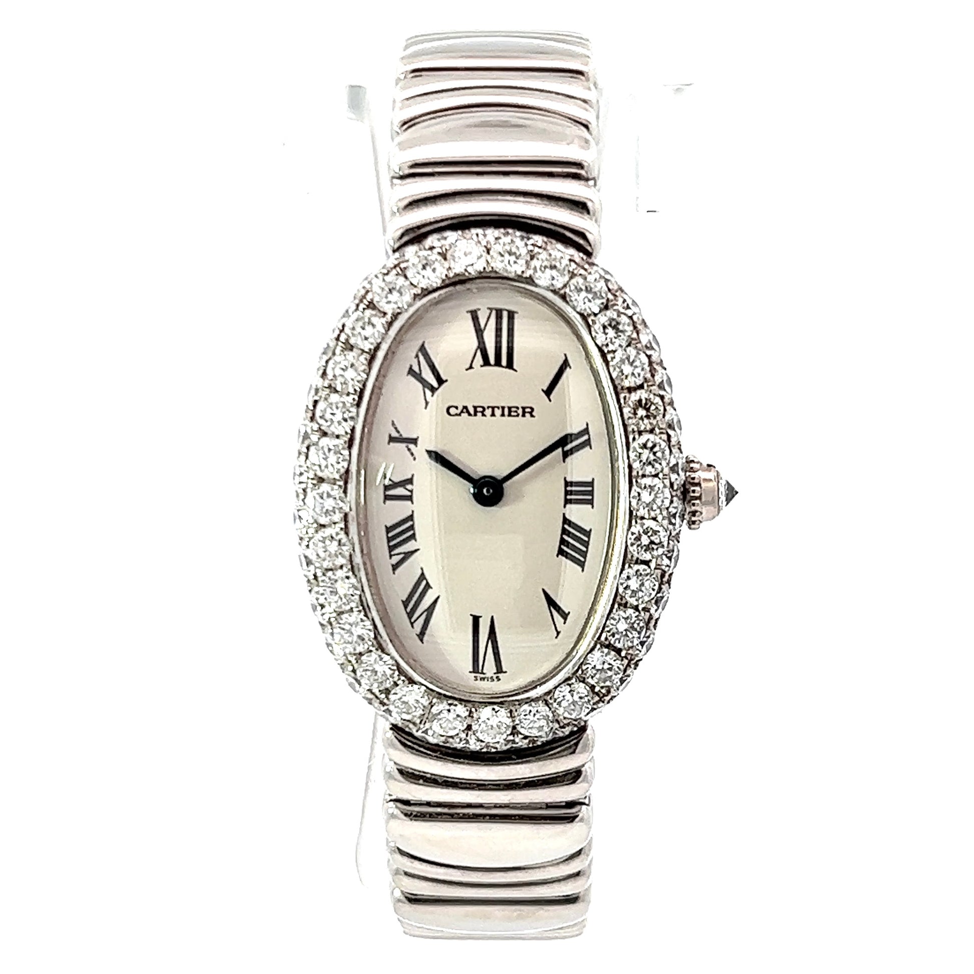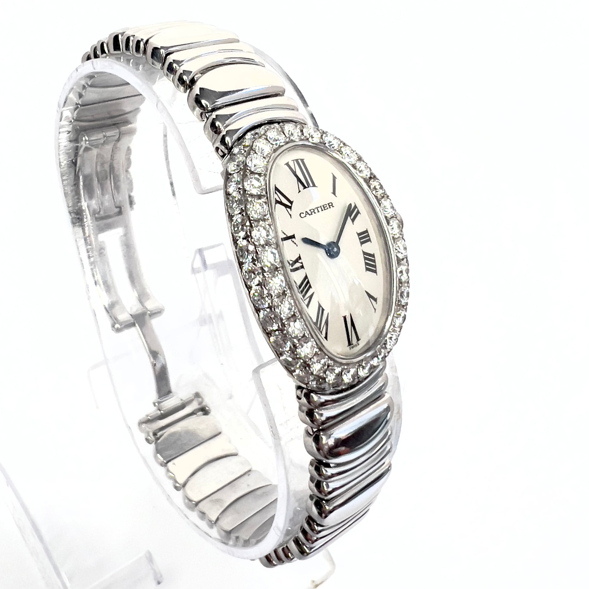 CARTIER BAIGNOIRE 23mm Quartz 18K White Gold 3.2TCW Diamond Watch