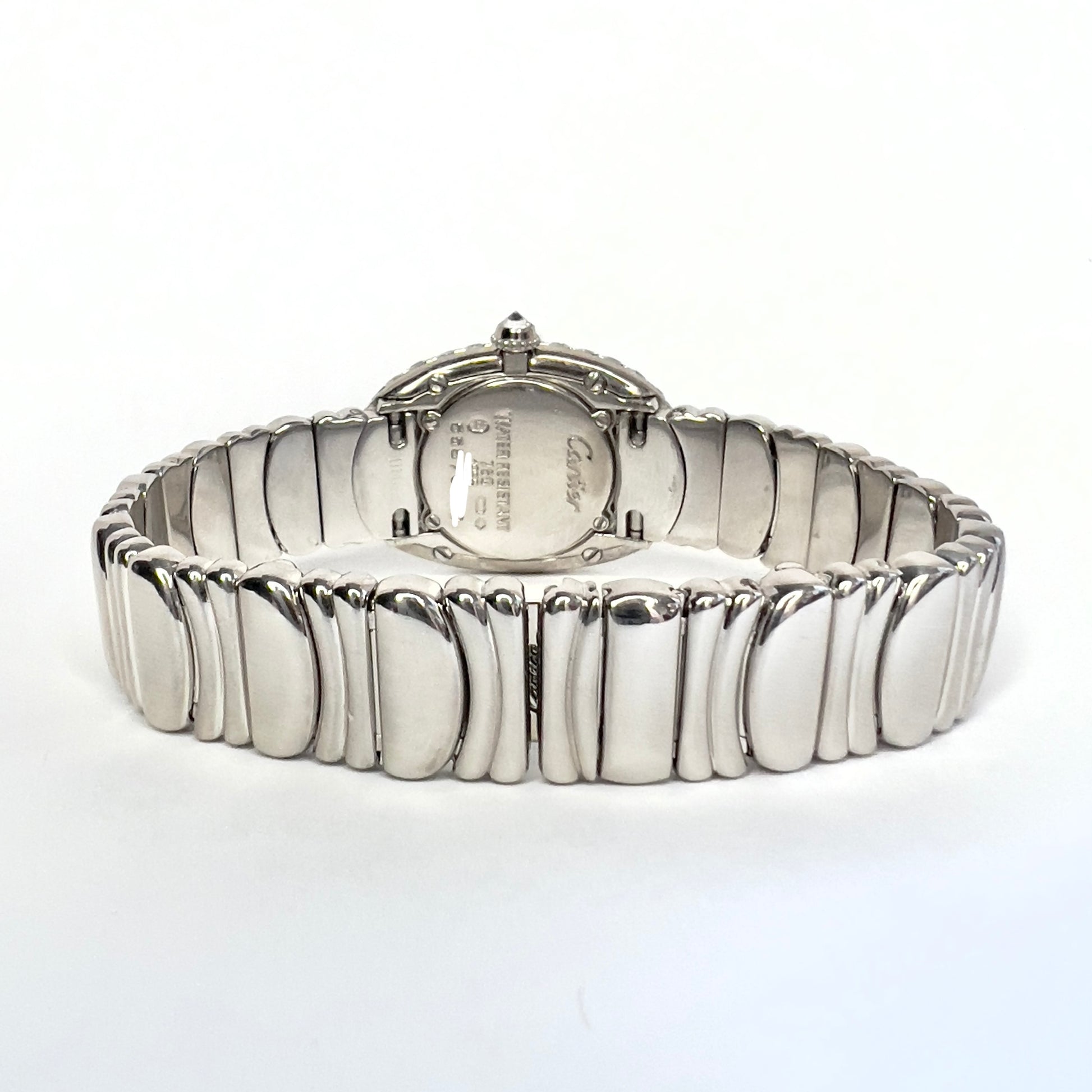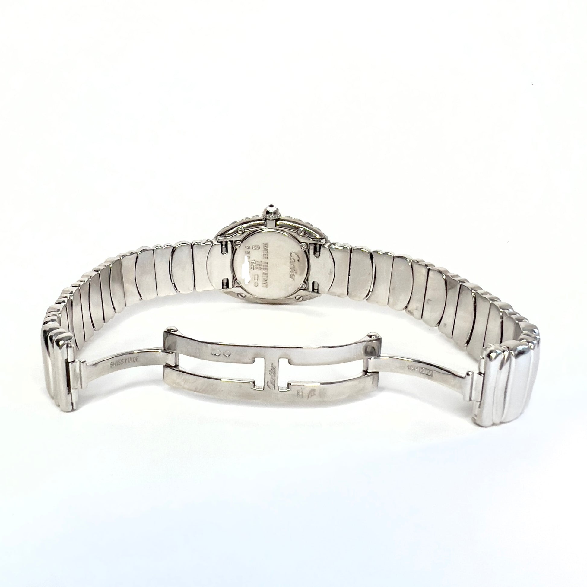 • Case: Domed Glossy 18K White Gold hallmarked ‘Cartier’ and stamped ‘Water Resistant', '18K', 'Swiss Made’, and Serial Number.