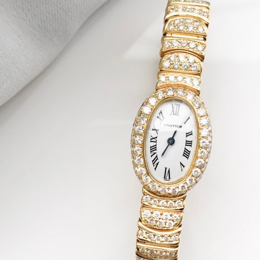 CARTIER BAIGNOIRE Mini 18mm Quartz 18K Yellow Gold Diamond Watch