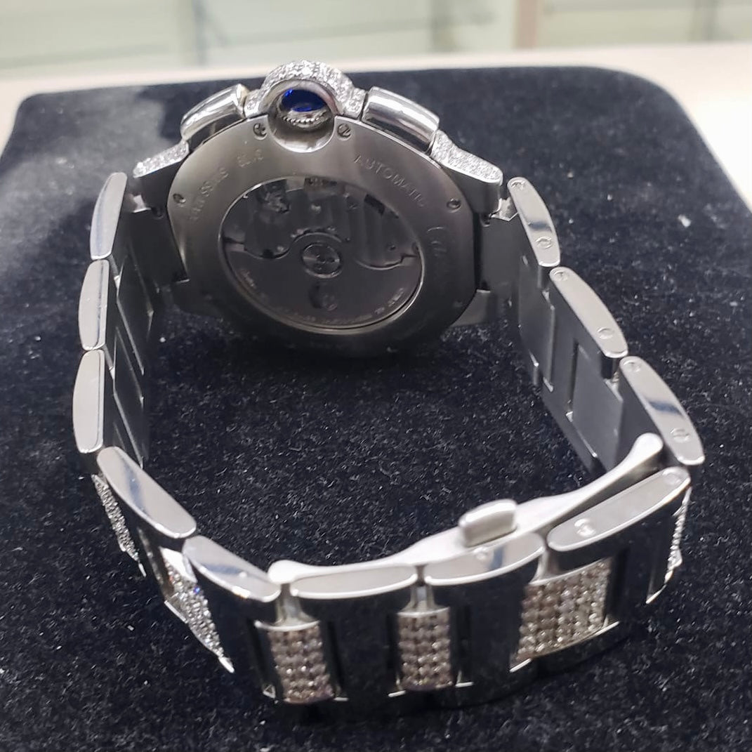 CARTIER BALLON BLEU 44mm Automatic Chronograph Steel DIAMOND Watch