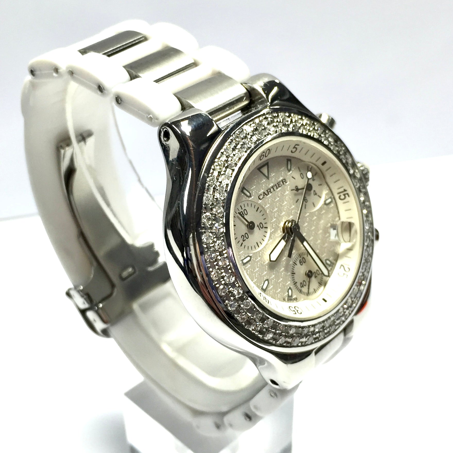 Authentic Pre Owned CARTIER CHRONOSCAPH 21 Chronograph 2424 Quartz 38mm Steel 2.38TCW DIAMOND Watch