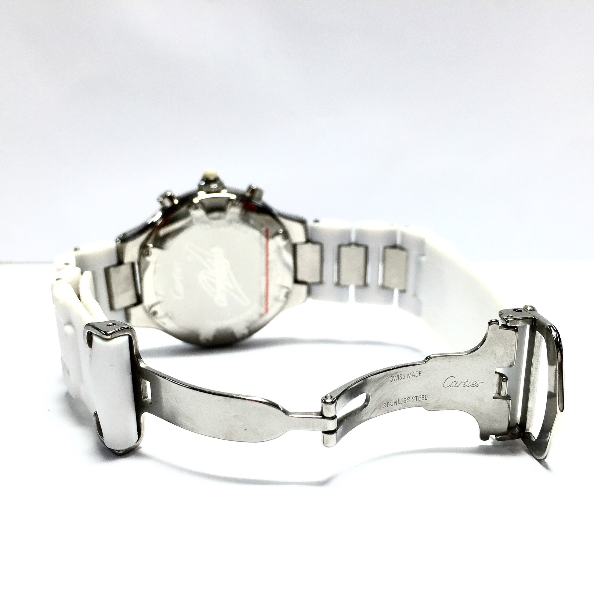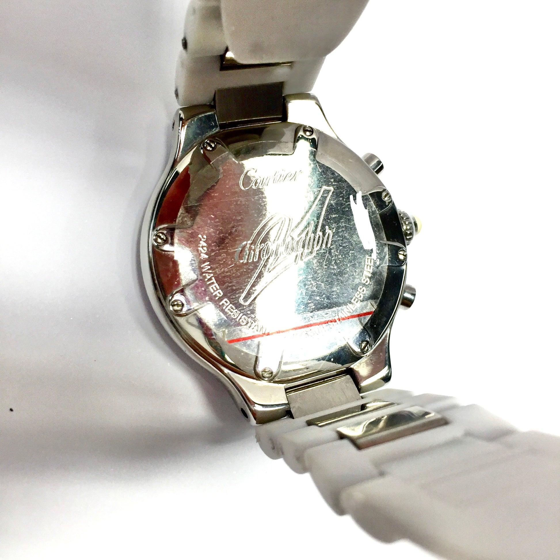 • Case: Glossy Stainless Steel hallmarked ‘Cartier’ and stamped ‘Chronoscaph 21’, 'Water Resistant 100m/330ft', 'Stainless Steel', ‘2424’ and Serial Number.
