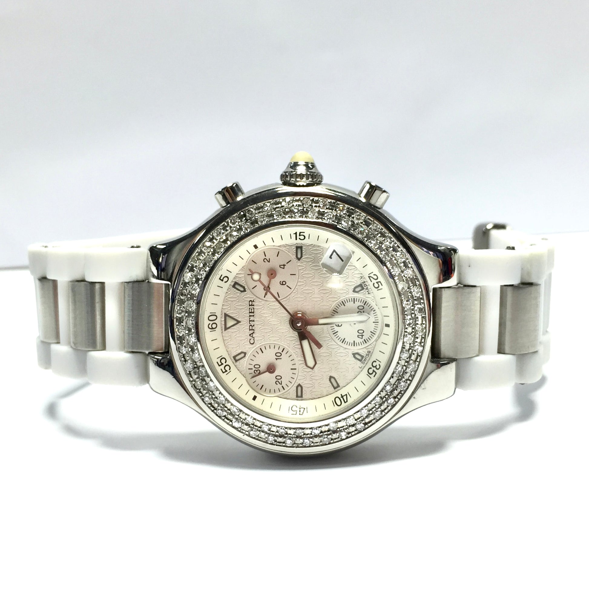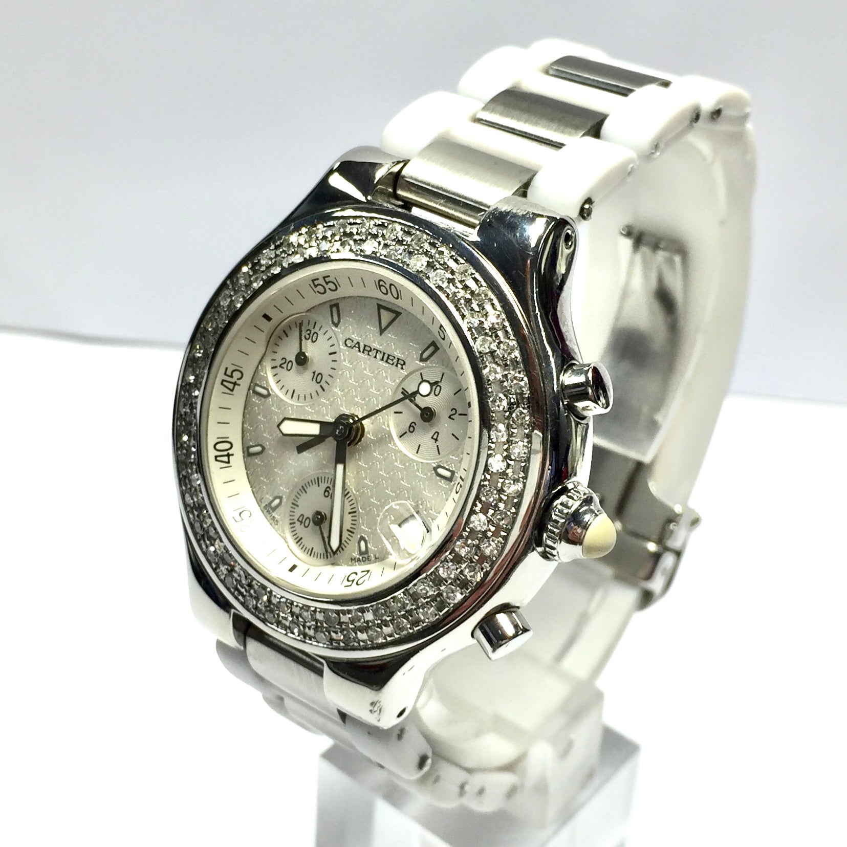 CARTIER CHRONOSCAPH 21 Chronograph 2424 Quartz 38mm Steel 2.38TCW DIAMOND Watch