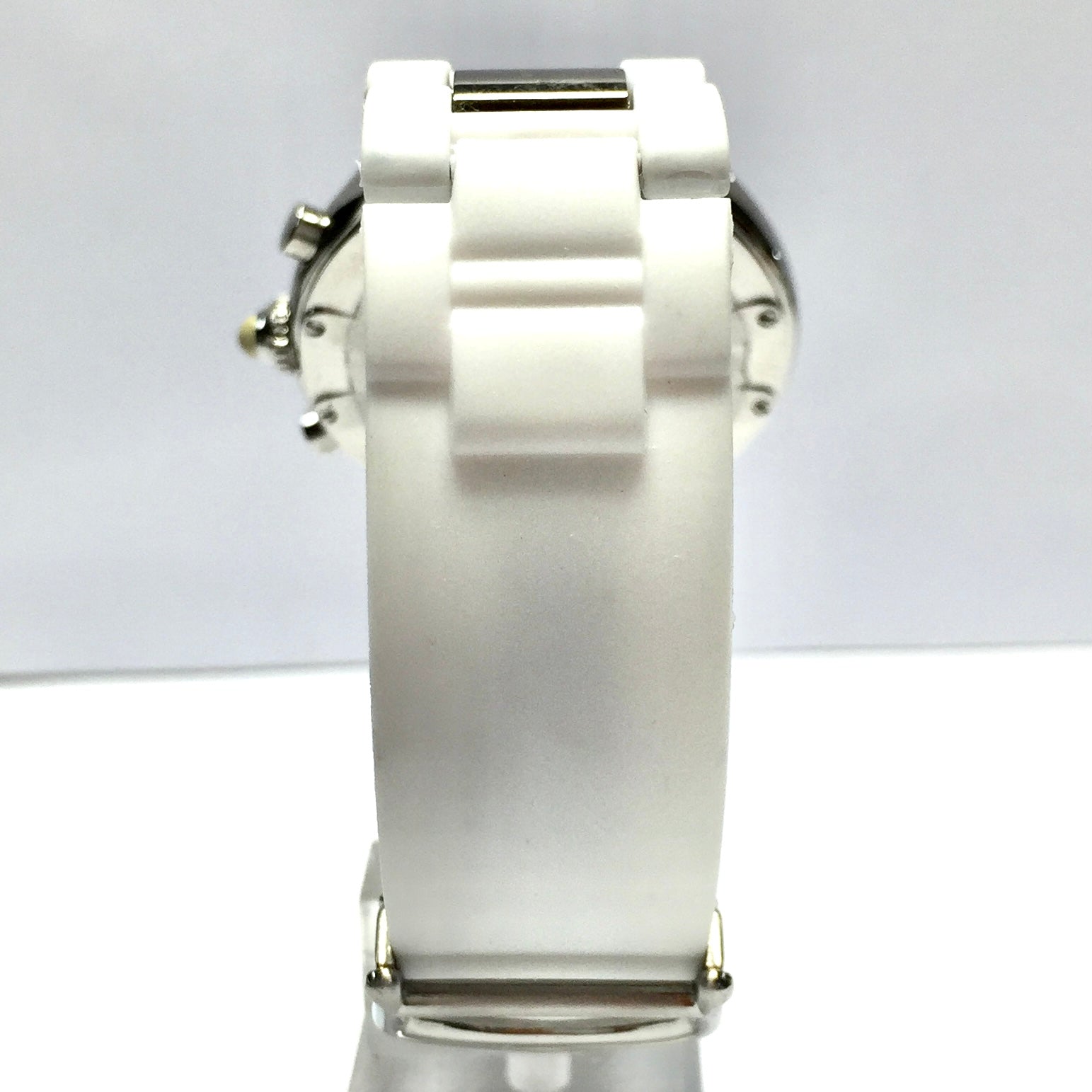 • Band: Adjustable. White Rubber & Brushed Stainless Steel links. 18.65mm wide. Fits approx. up to 8 Inches wrist.