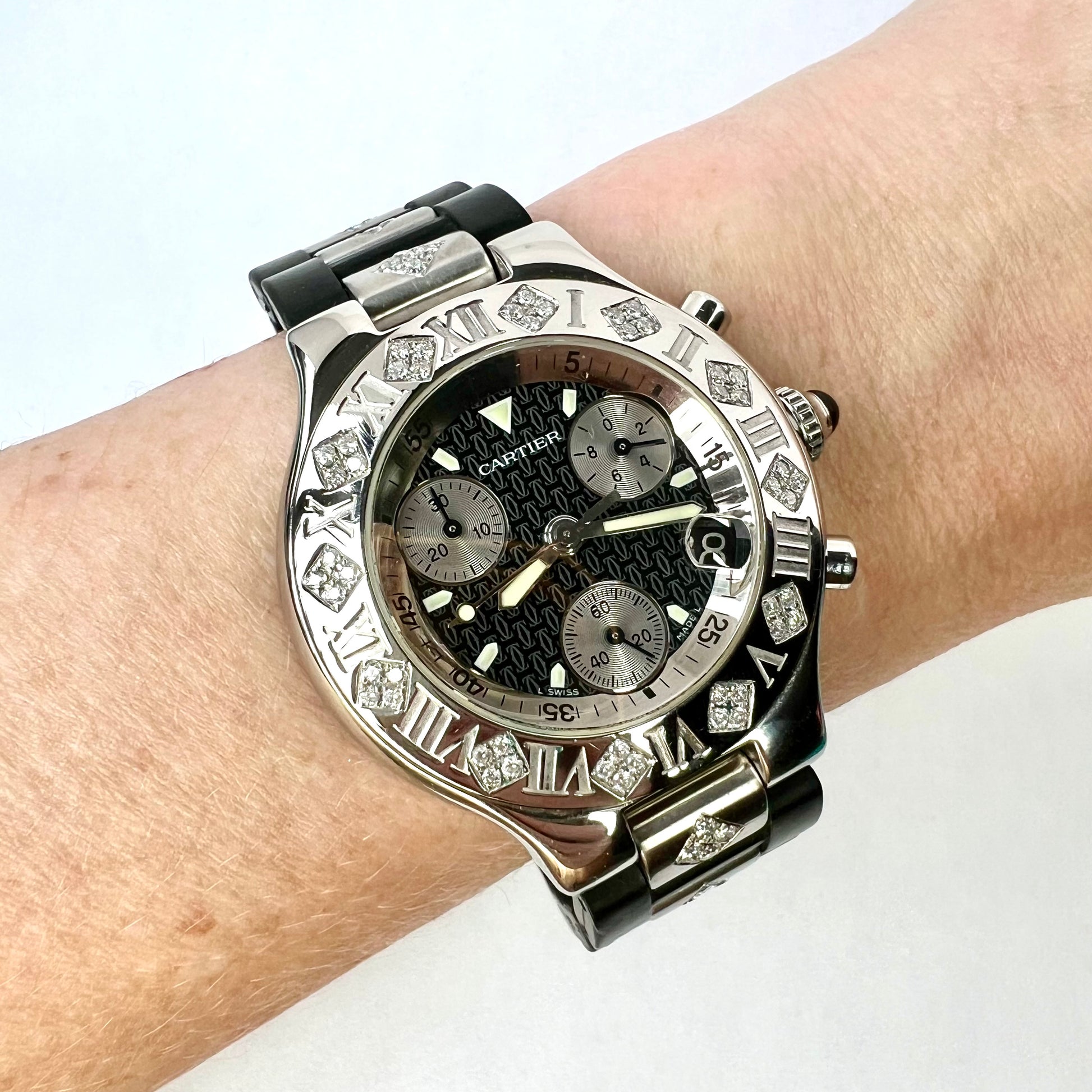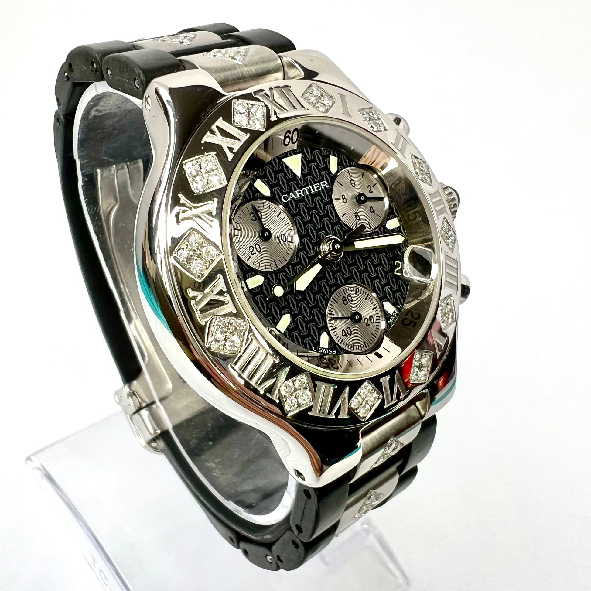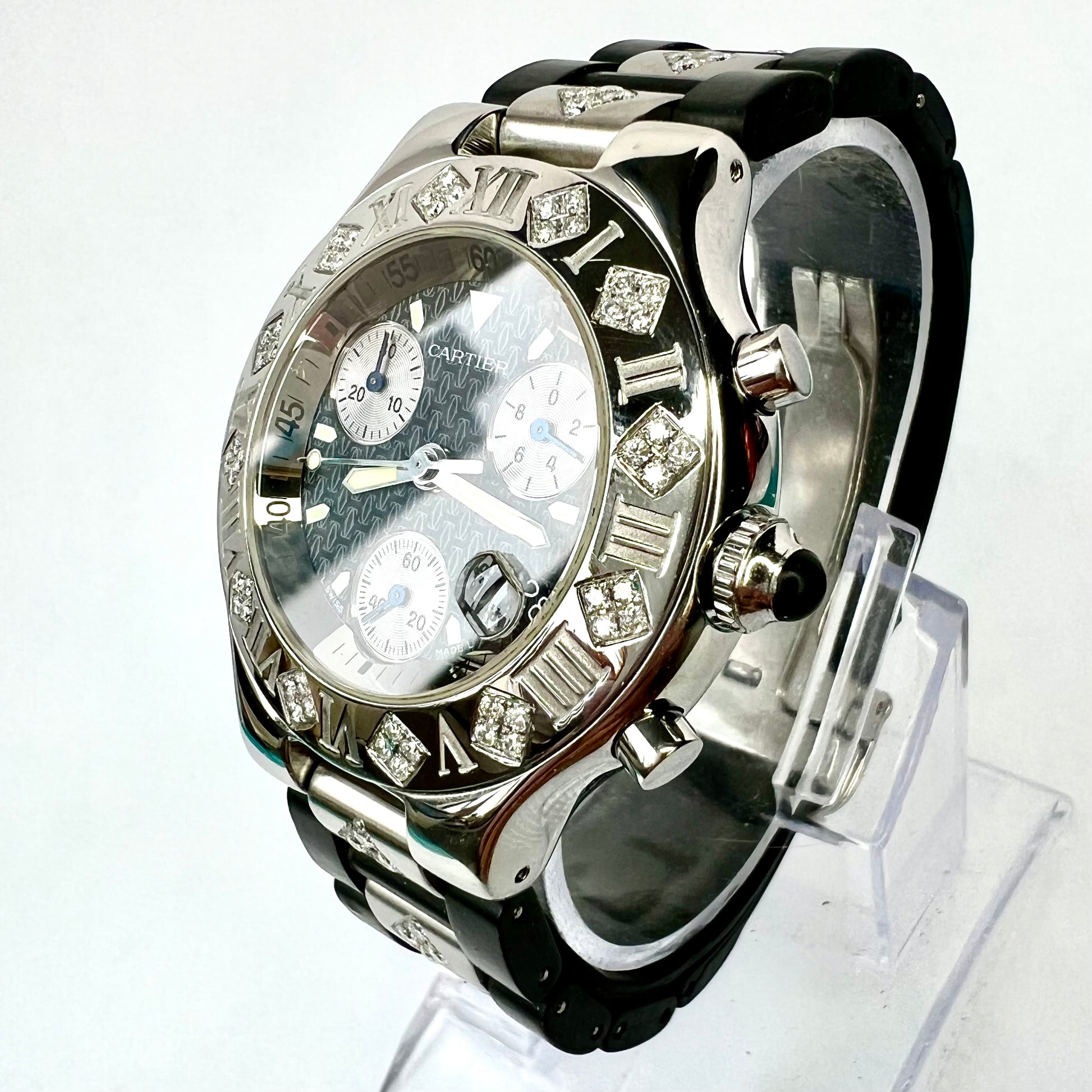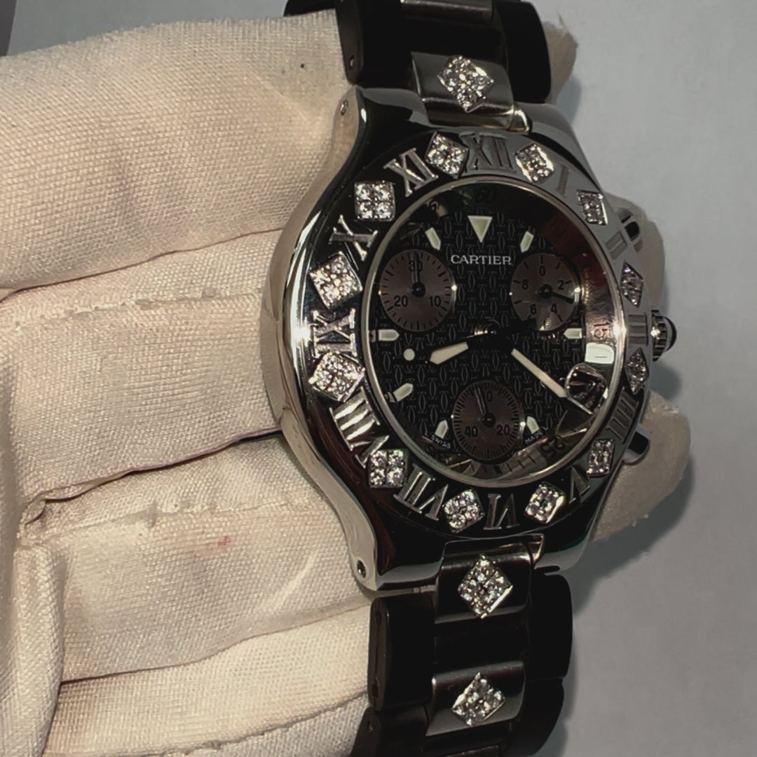 Authentic Pre Owned CARTIER CHRONOSCAPH 21 Chronograph Quartz Steel 38mm 1.1TCW DIAMOND Watch