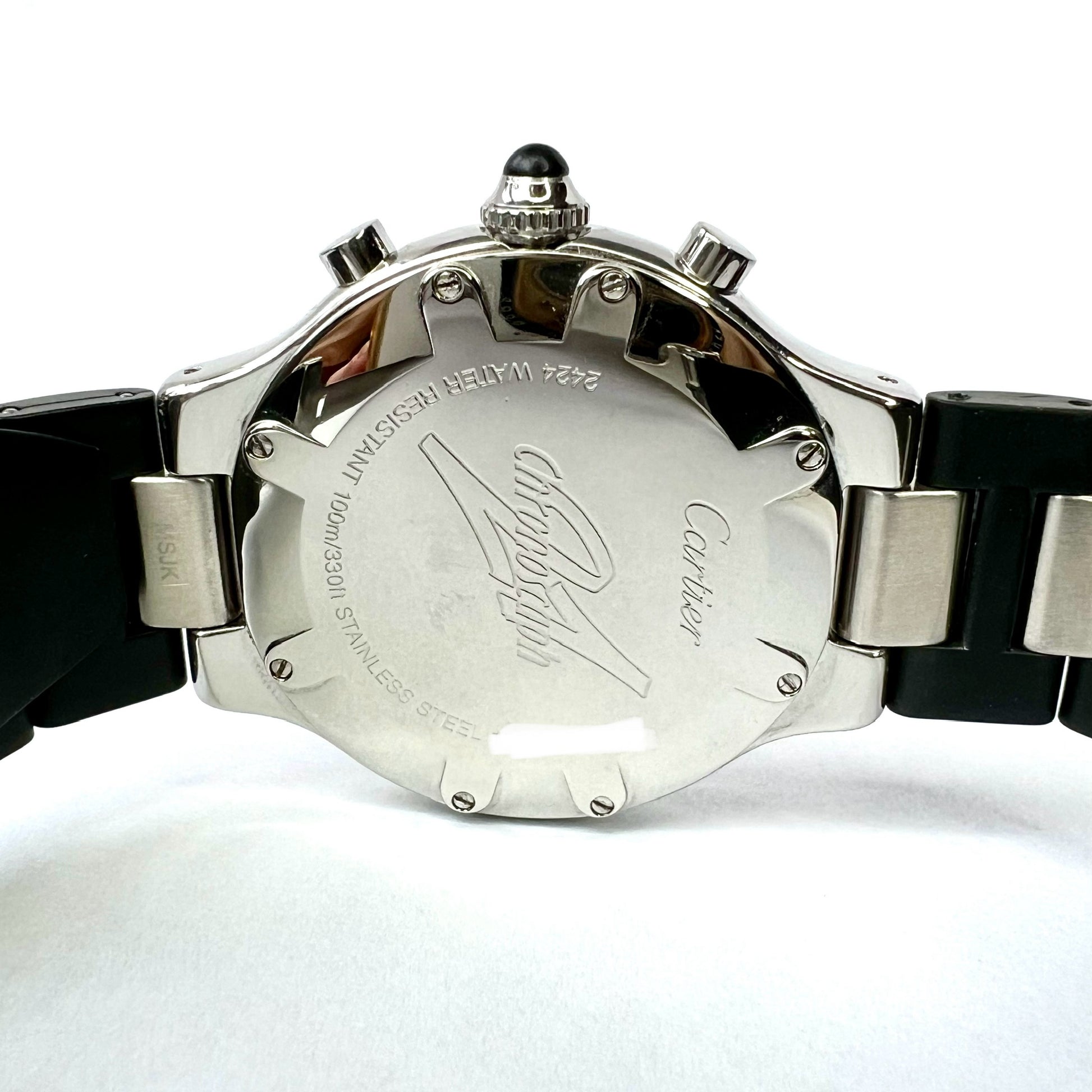 • Case: Glossy Stainless Steel hallmarked ‘Cartier’ and stamped ‘Chronoscaph 21’, 'Water Resistant 100m/330ft', 'Stainless Steel', ‘2424’ and Serial Number