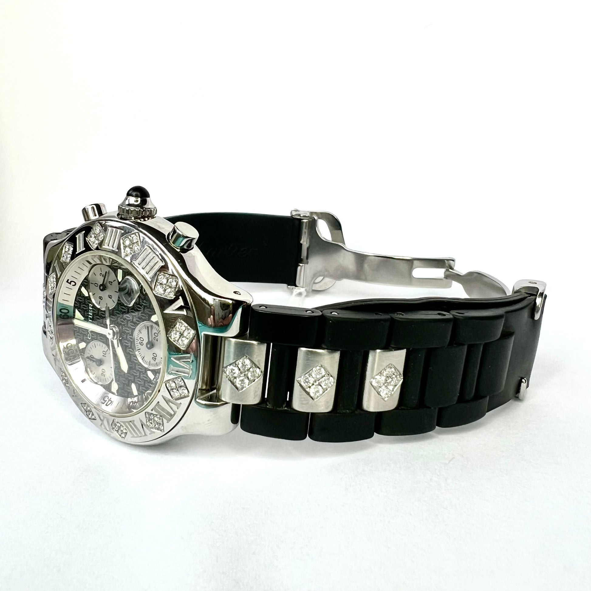 CARTIER CHRONOSCAPH 21 Chronograph Quartz Steel 38mm 1.1TCW DIAMOND Watch