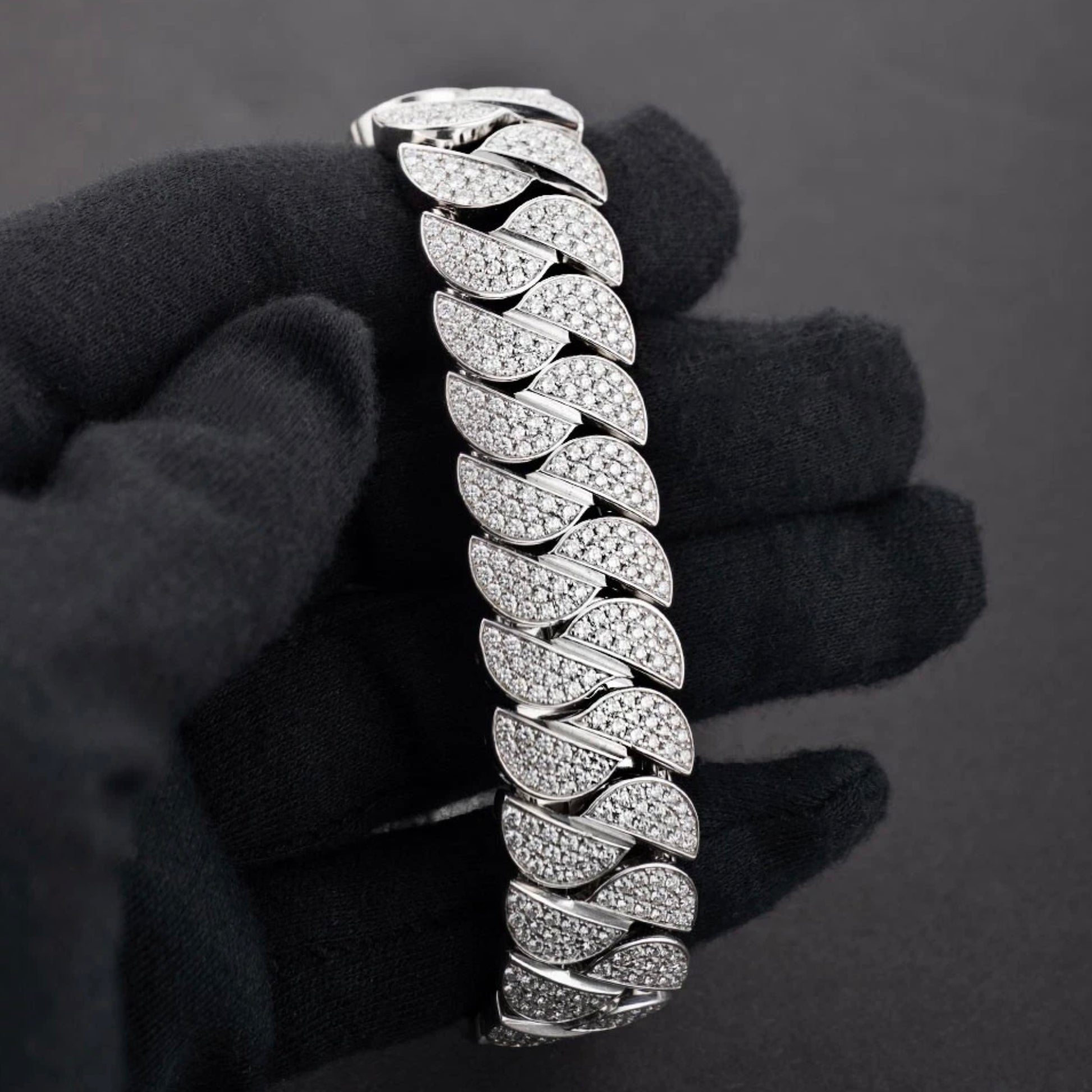 Bracelet: Glossy Stainless Steel set with Custom Natural Diamonds. Fits approx. 6.25 inches wrist. Extra Links available.