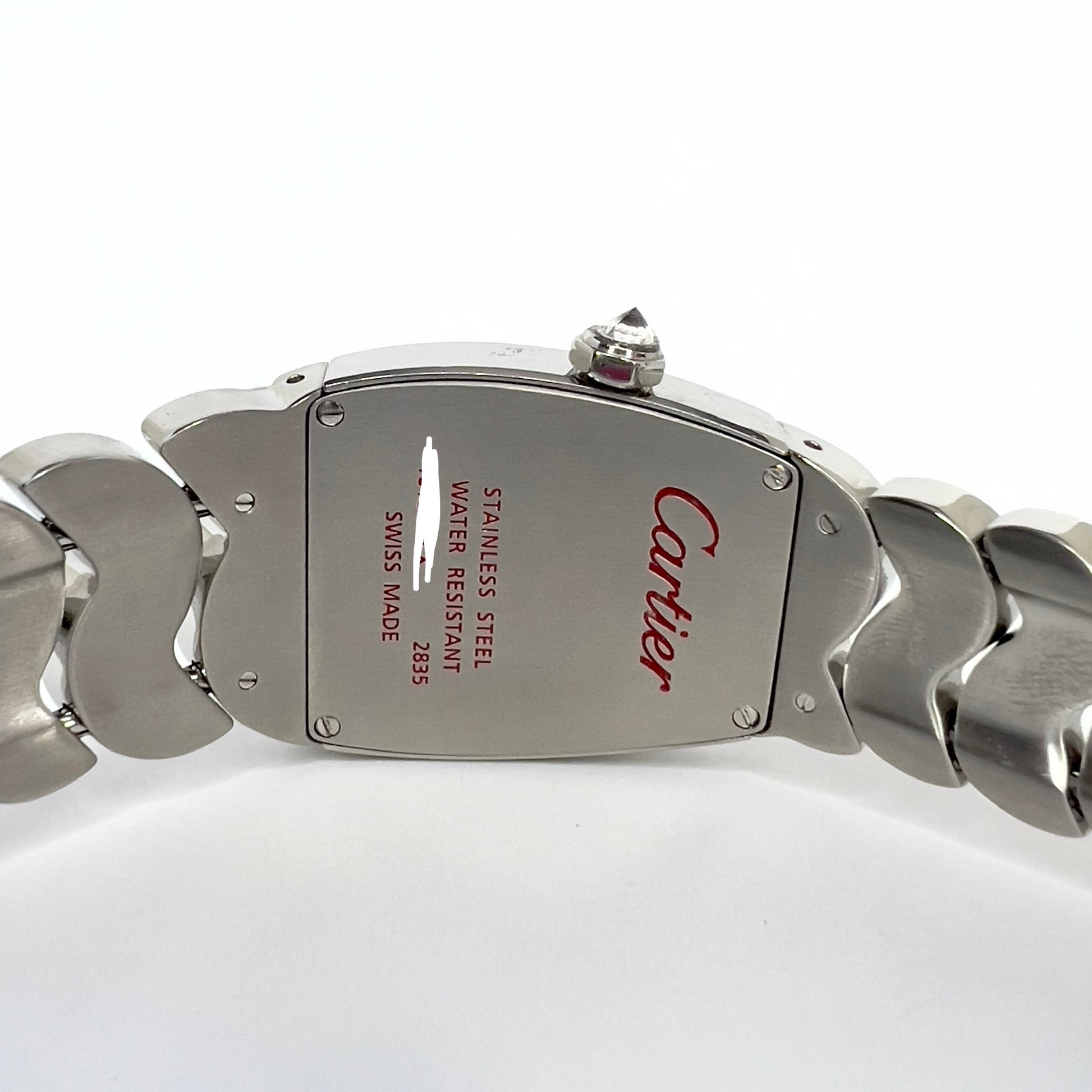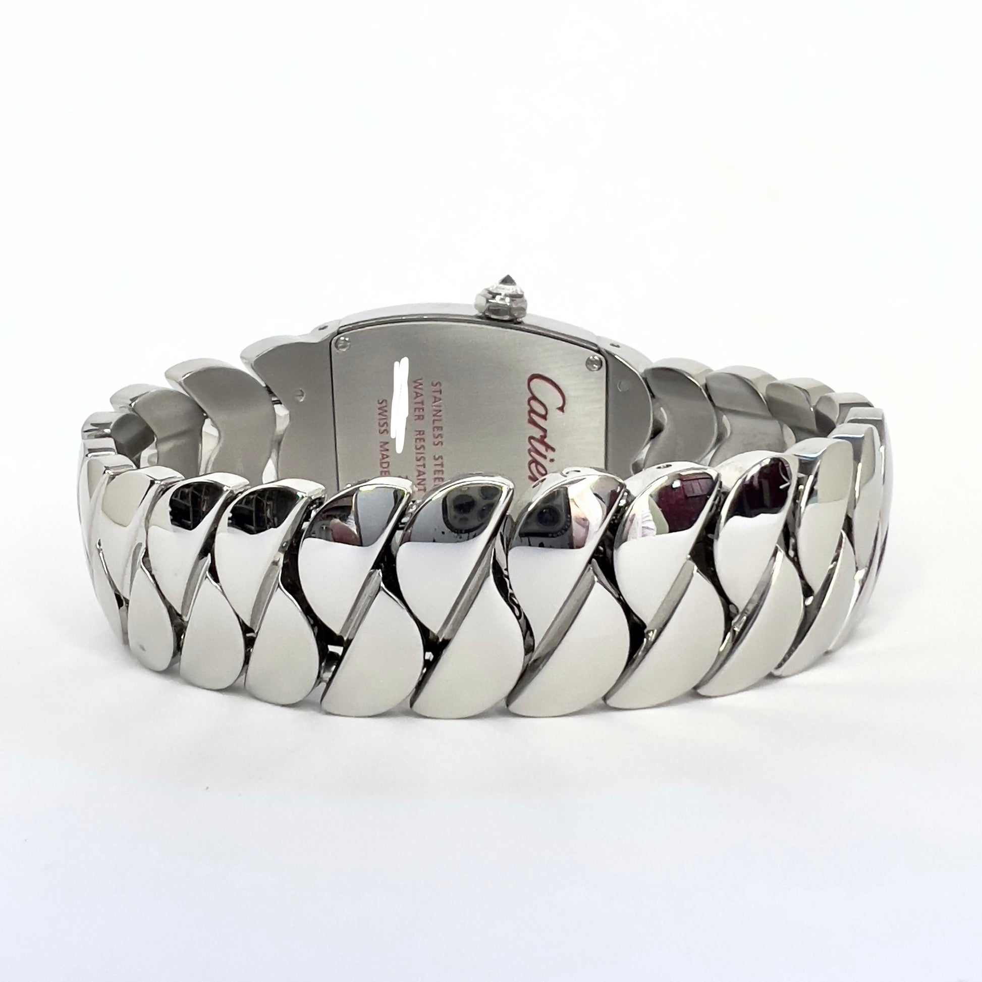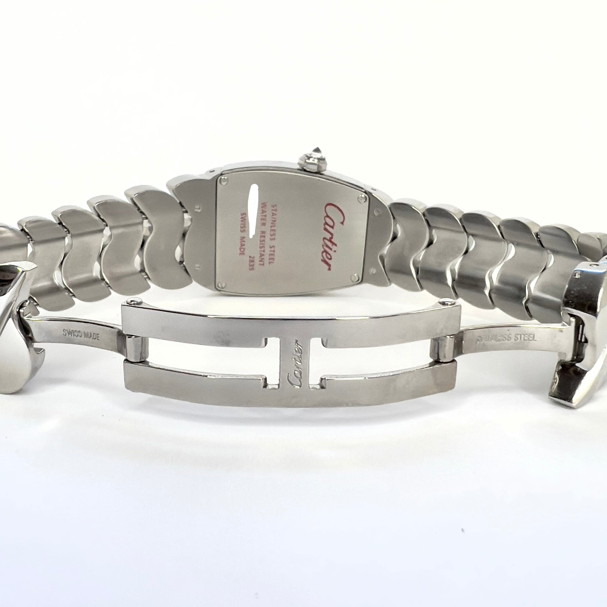 Case: Domed Glossy Stainless Steel hallmarked ‘Cartier’ and stamped ‘Stainless Steel’, ‘Water Resistant’, ‘Swiss Made’, ‘2835’ and Serial Number