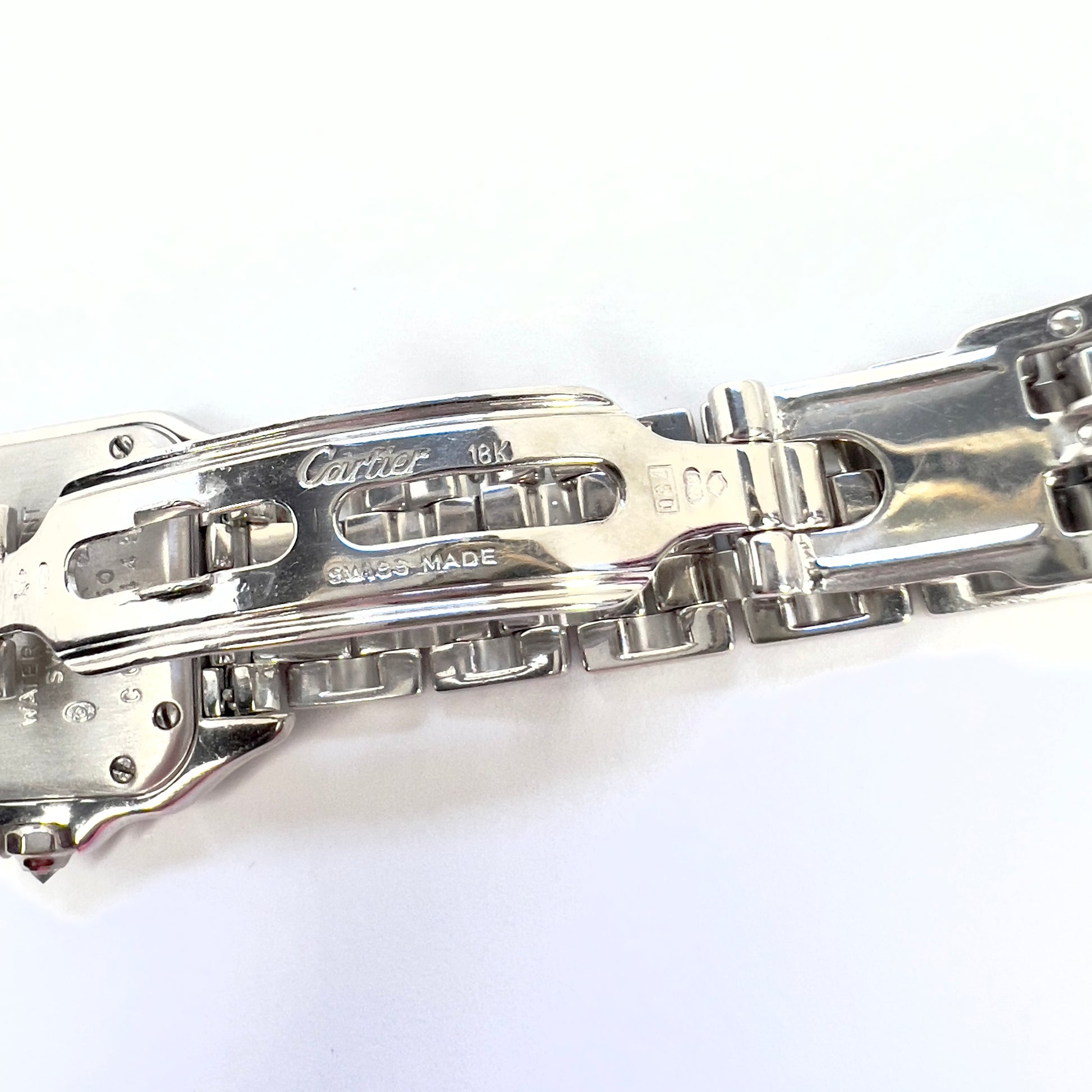 • Case: Glossy 18K White Gold set with F-G VS-SI Custom Natural Diamonds and hallmarked ‘Cartier’, ‘Quartz’, ‘18K', 'Swiss Made’ and Serial Number