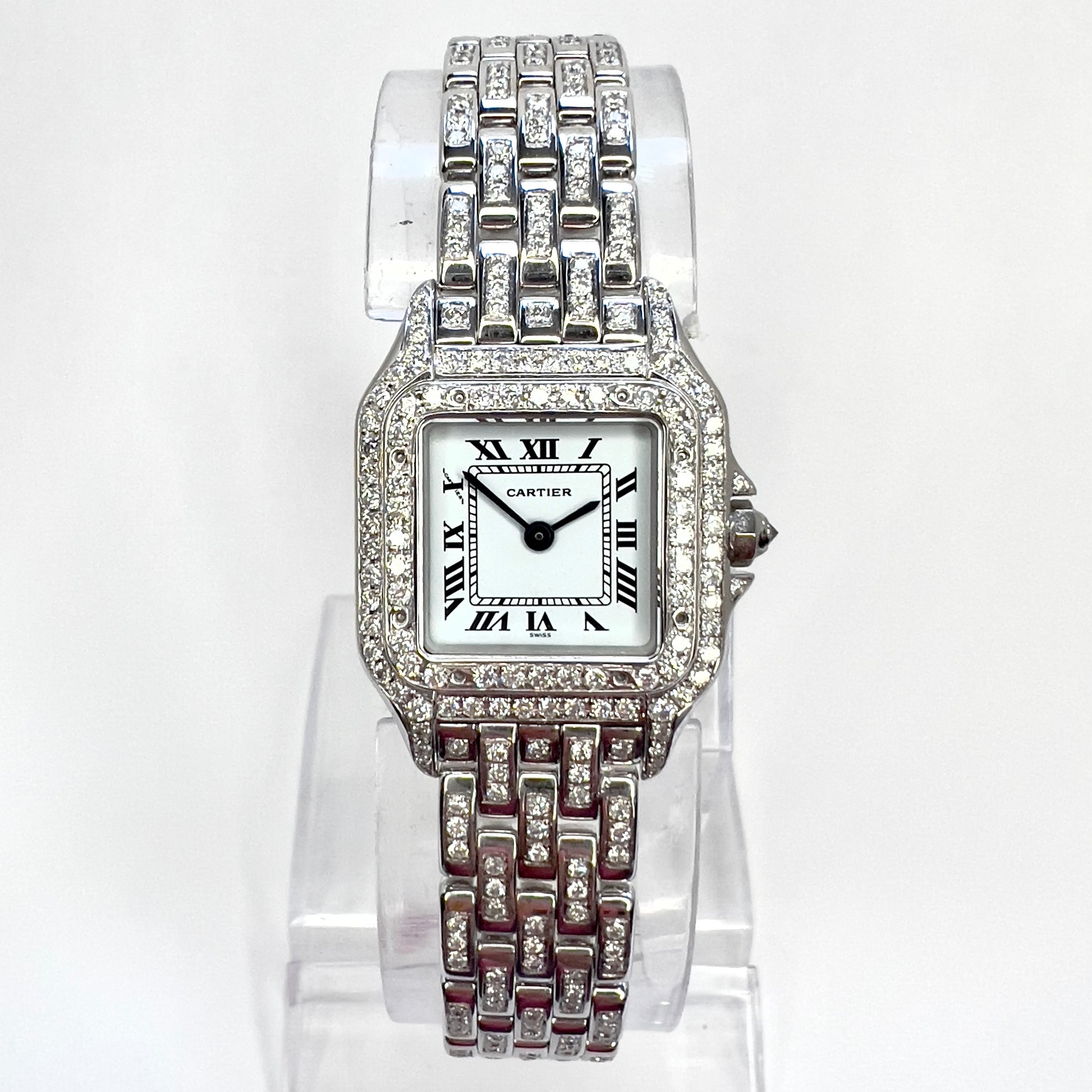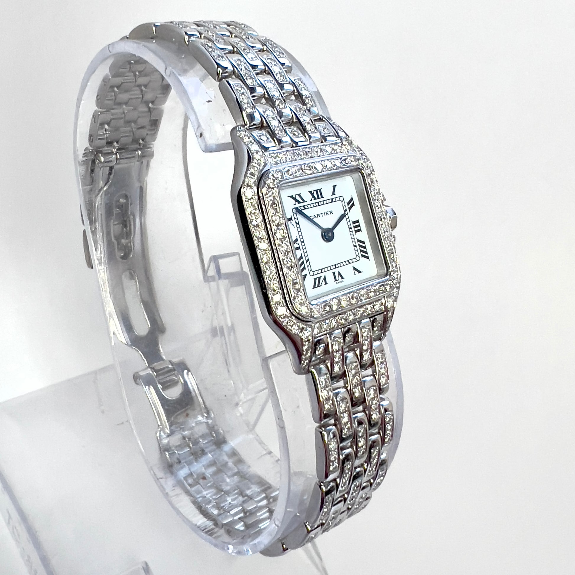 Authentic Pre Owned CARTIER PANTHERE Quartz 23mm 18K White Gold 3.5TCW Diamond Watch