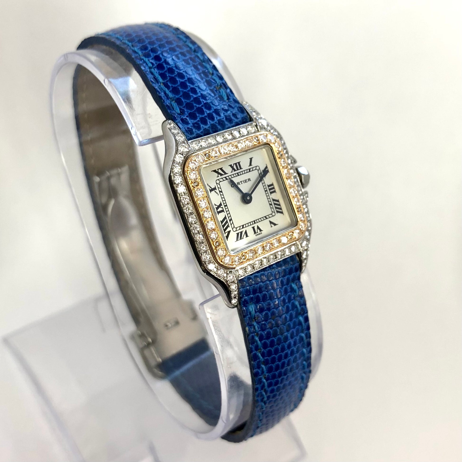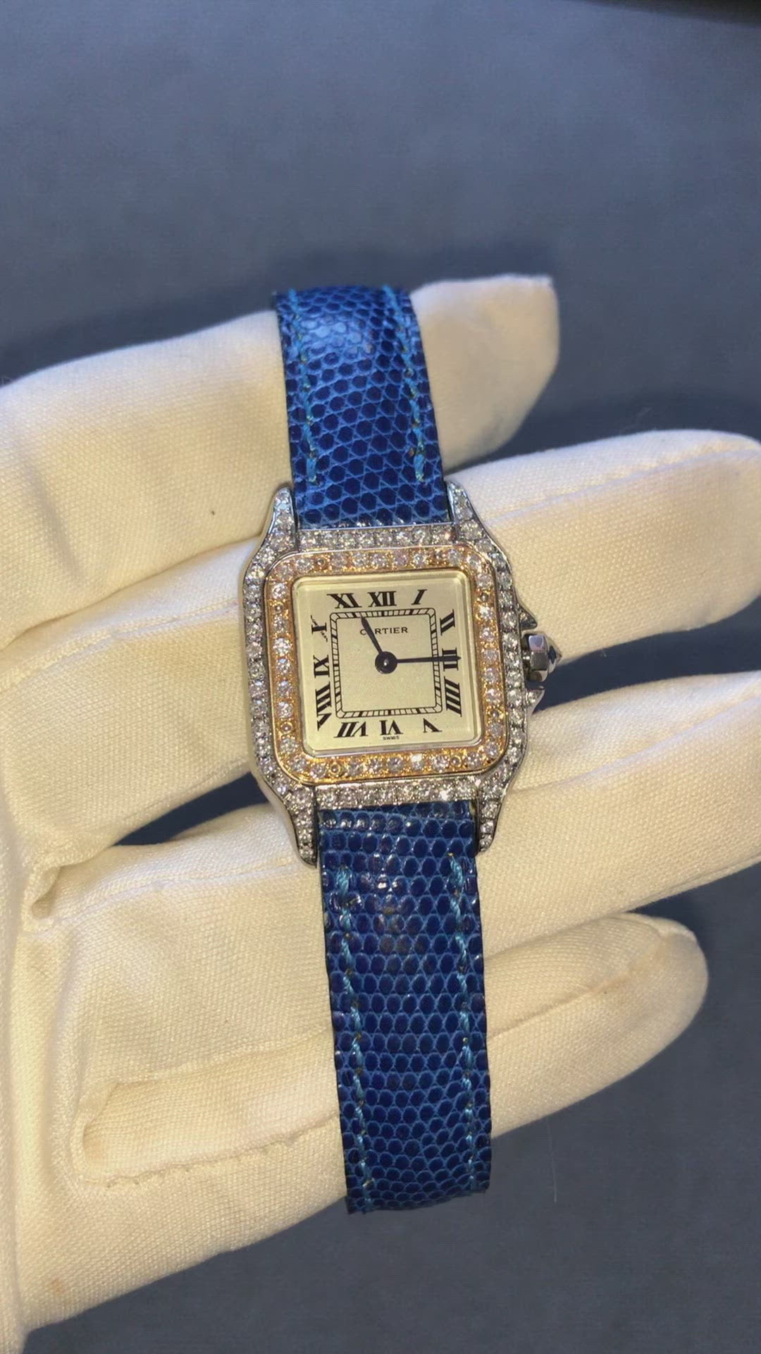 Band: Genuine Blue Leather stamped Cartier, Paris.