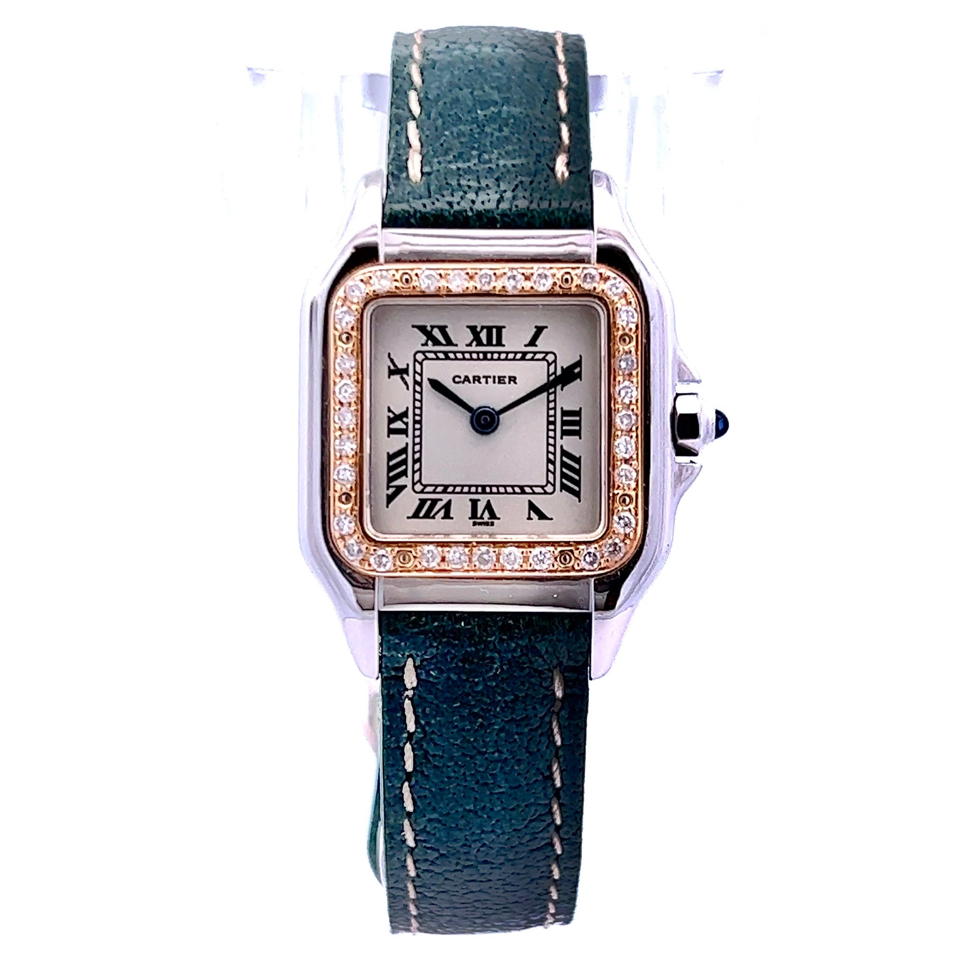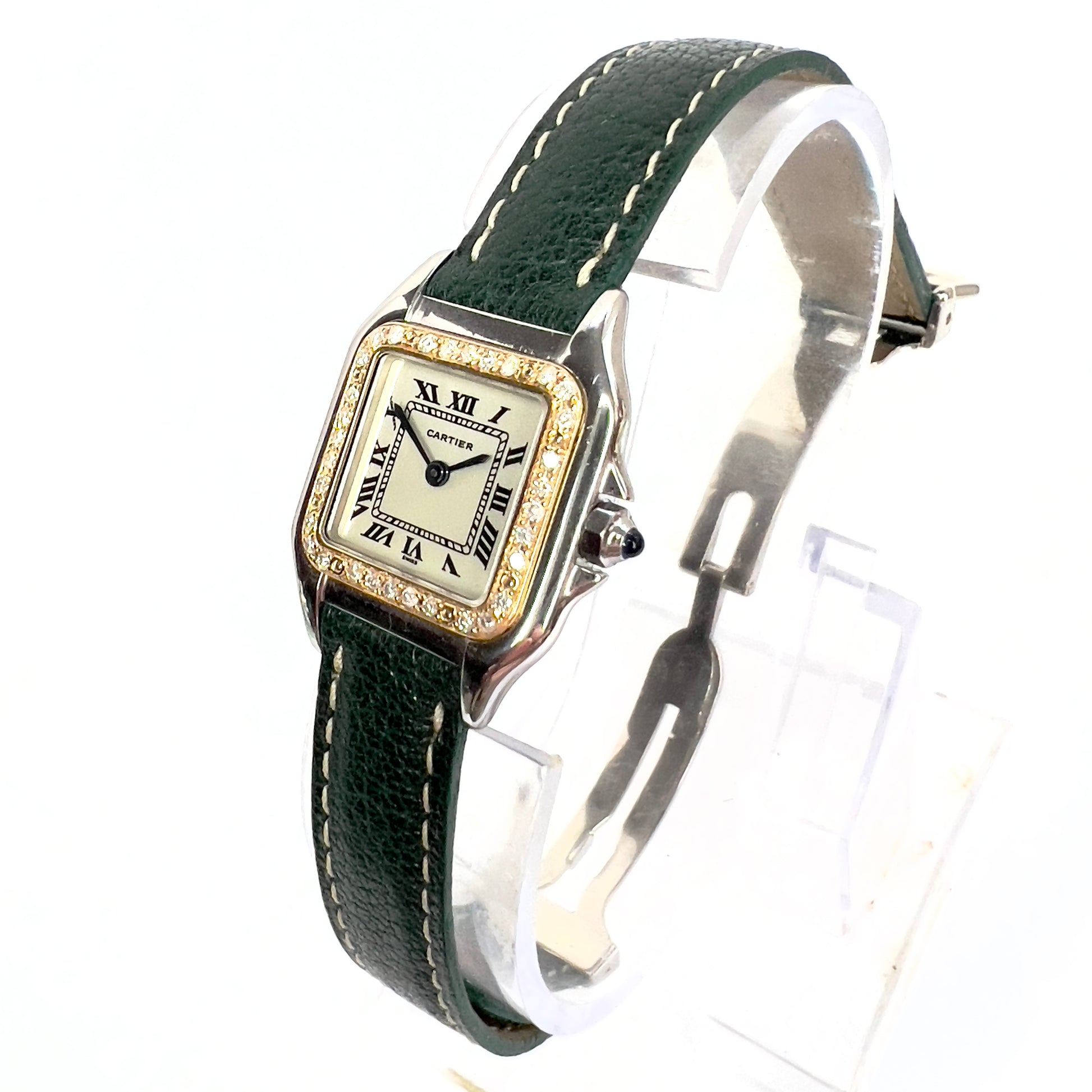 Band: Genuine Green Leather stamped Cartier, Paris, Made in France. Fits approx. 6.5 Inches Wrist
