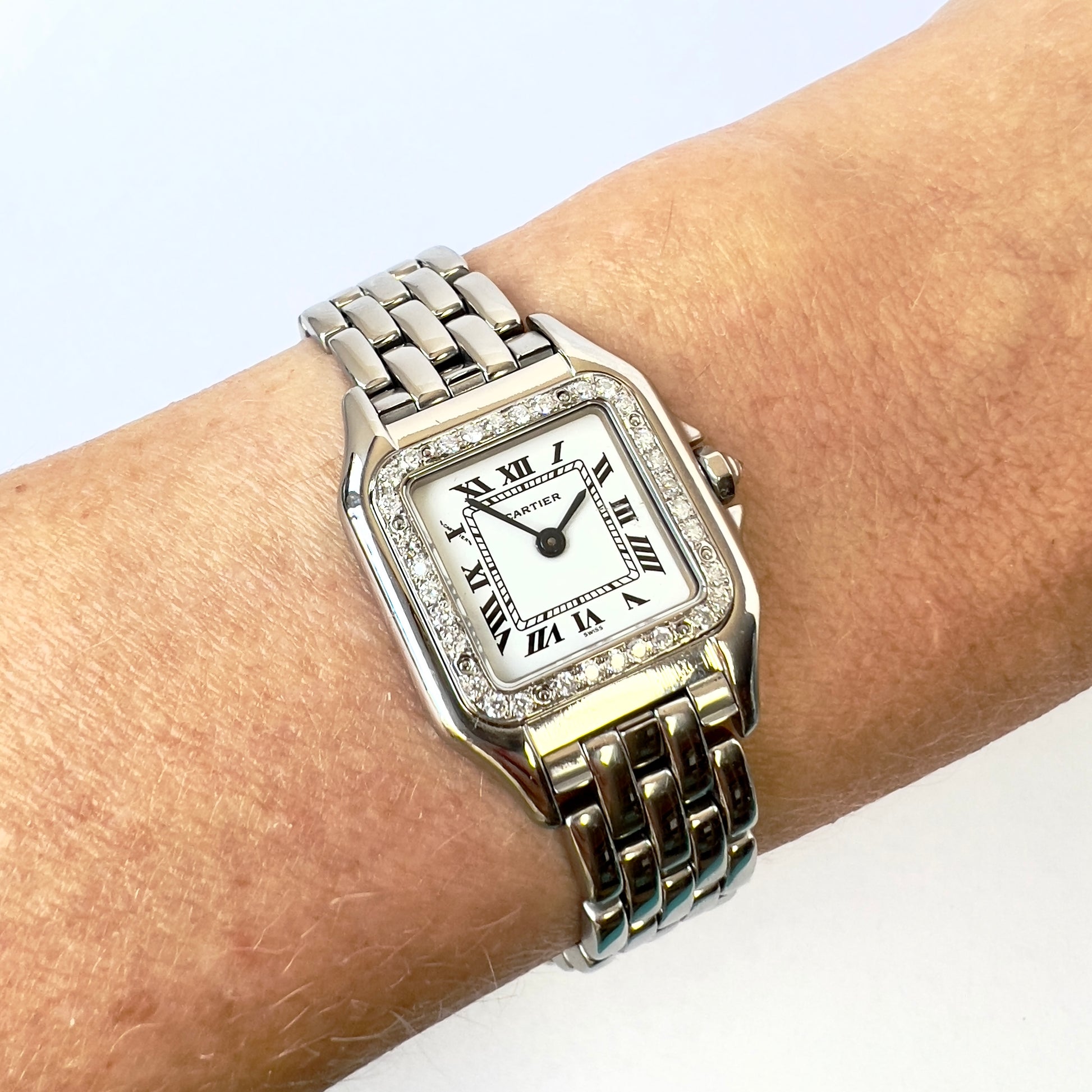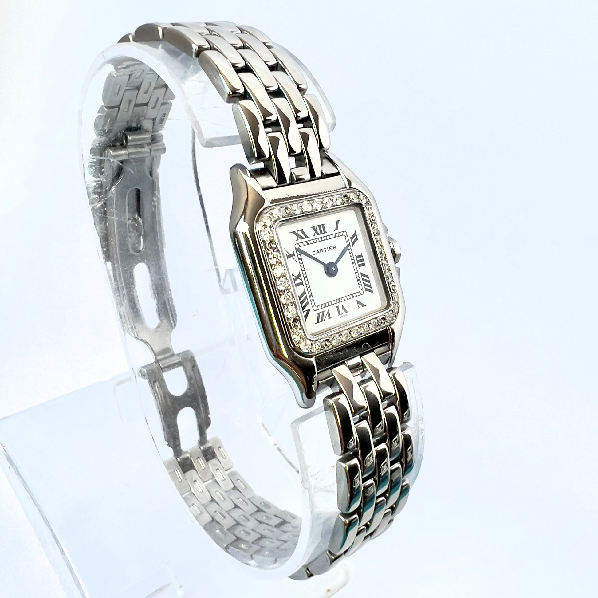 Authentic Pre Owned CARTIER PANTHERE 23mm Quartz Steel 0.34TCW DIAMOND Watch