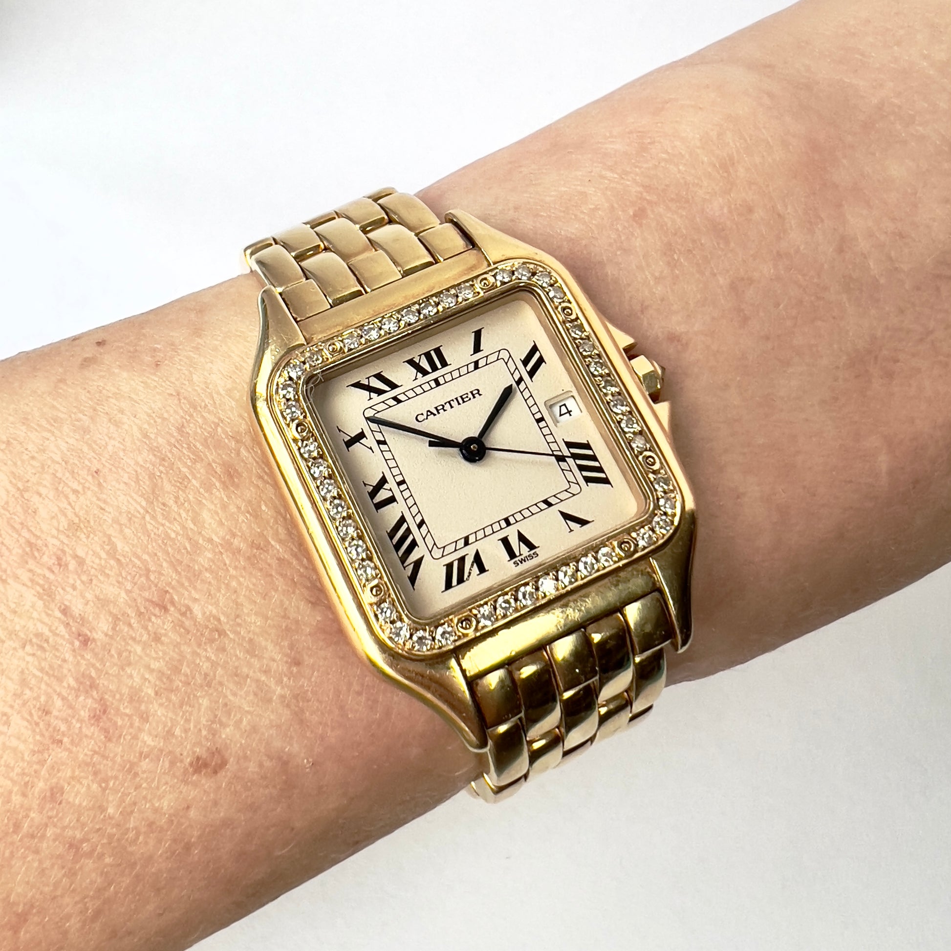 Authentic Pre Owned CARTIER PANTHERE 27mm 18K Yellow Gold 0.50TCW DIAMOND Watch