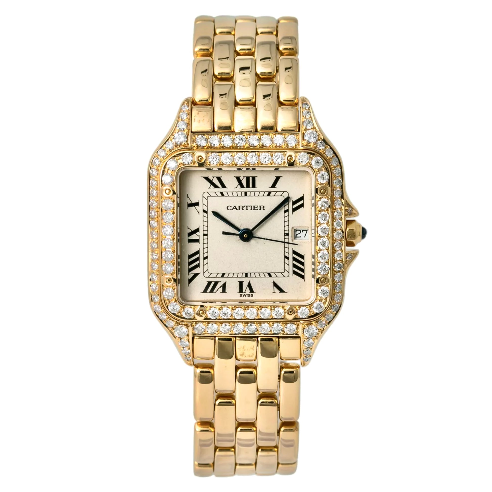 Authentic Pre owned CARTIER PANTHERE Quartz 27mm 18K Yellow Gold 1.20TCW DIAMOND Watch