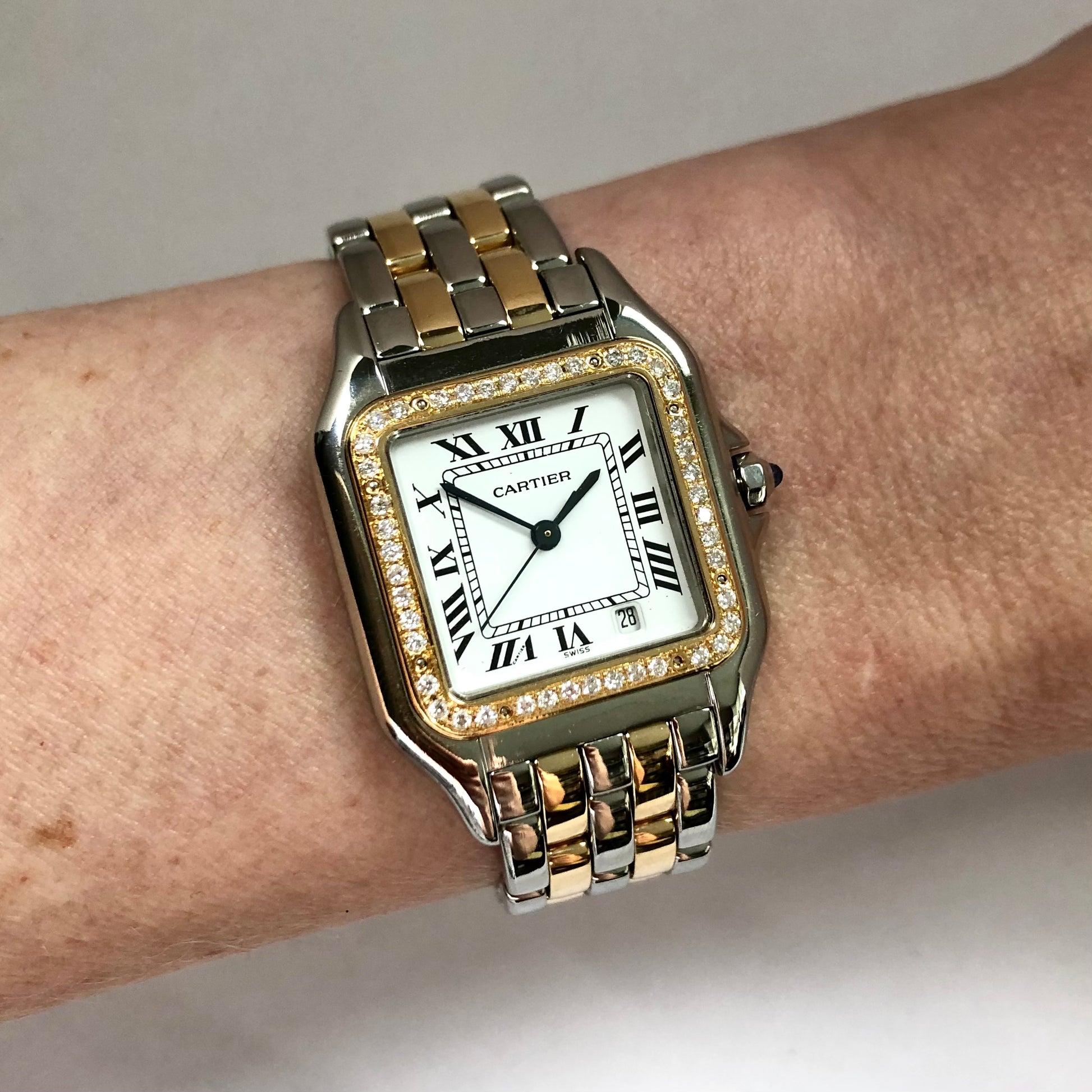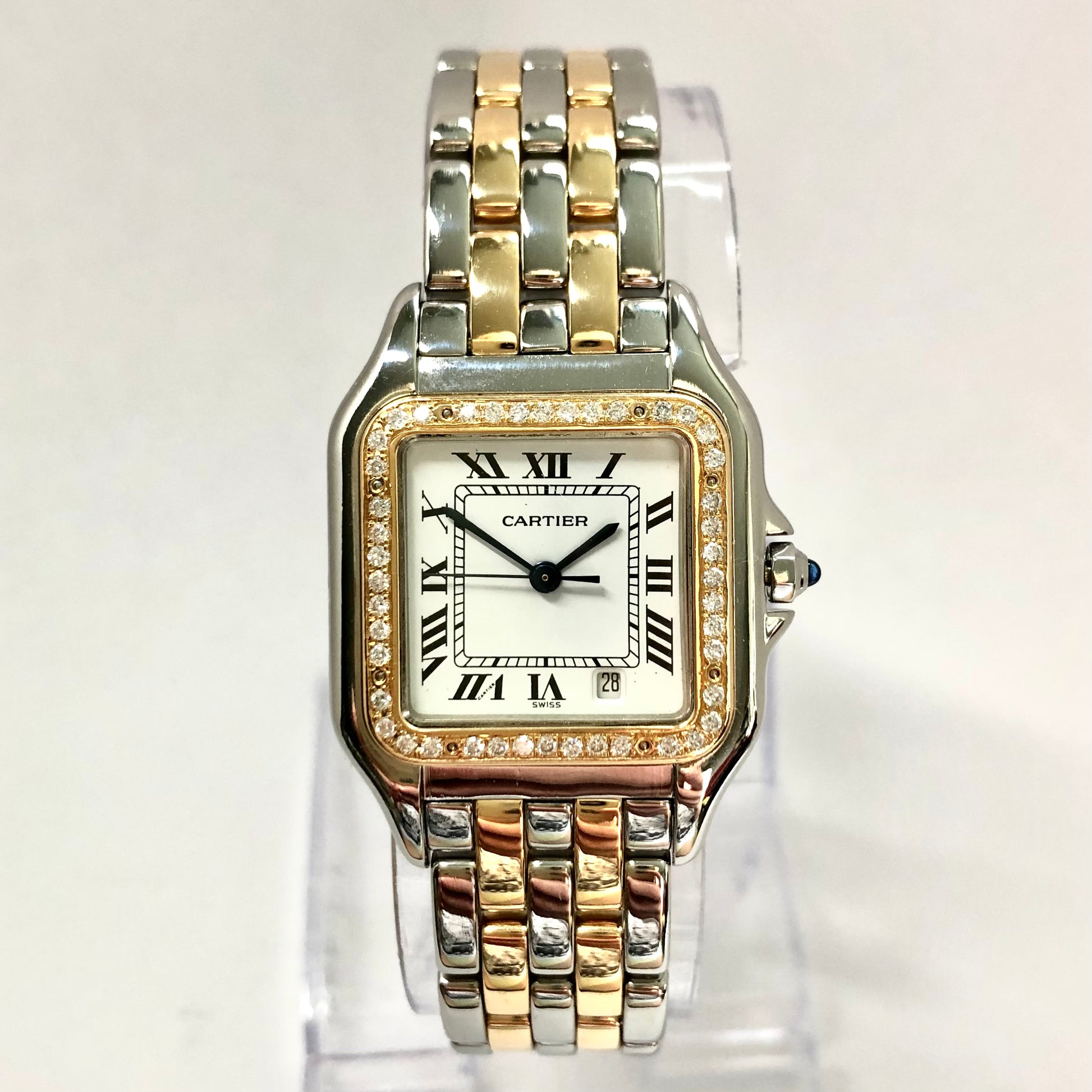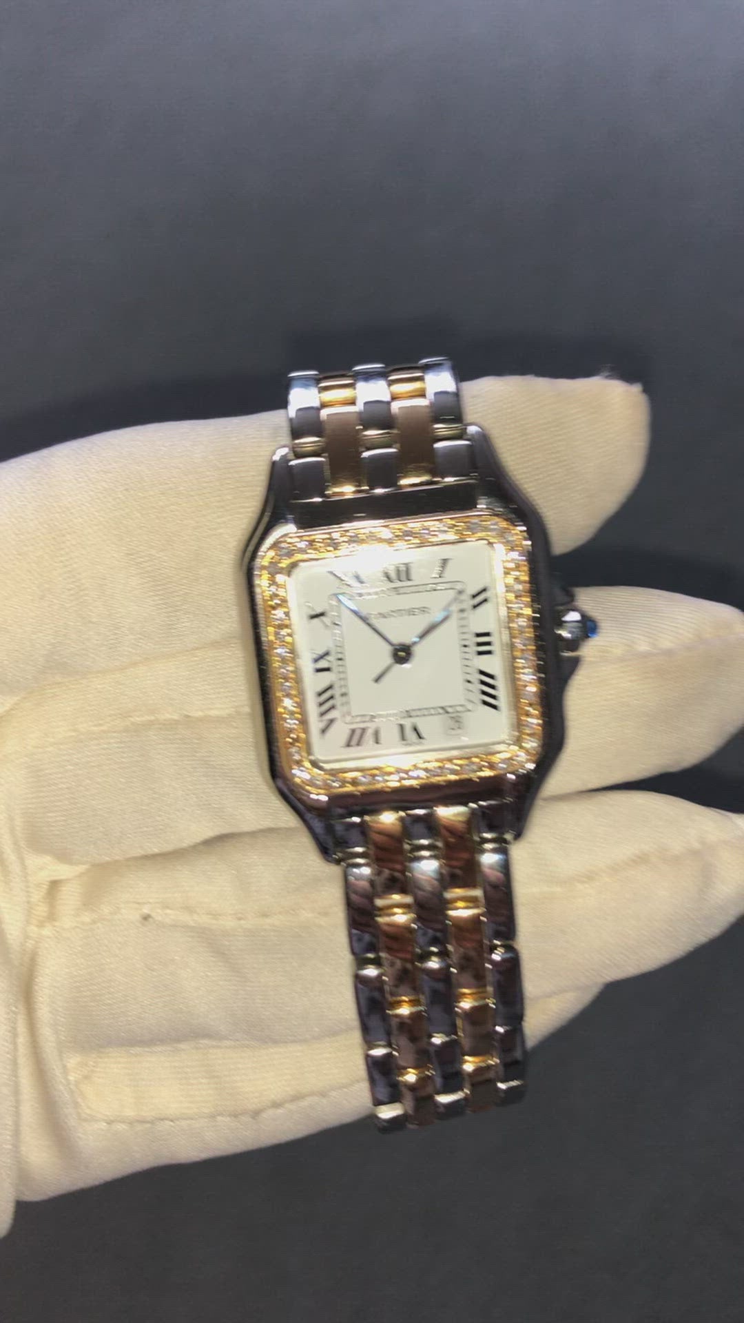 Authentic Pre Owned CARTIER PANTHERE 27mm 2 Row Gold 0.48TCW DIAMOND Watch