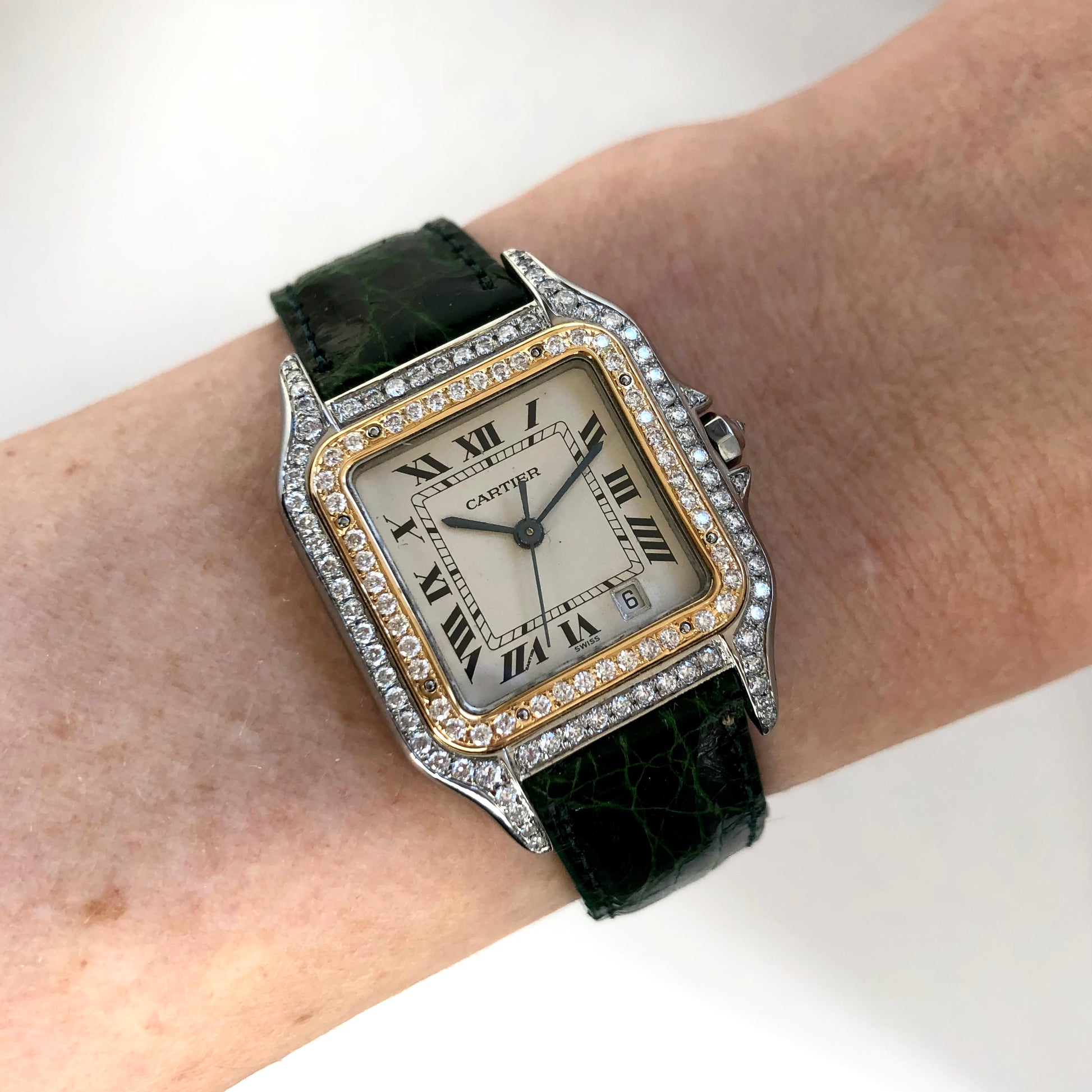 Authentic Pre Owned CARTIER PANTHERE 27mm Quartz 2 Tone 1.4TCW DIAMOND Watch