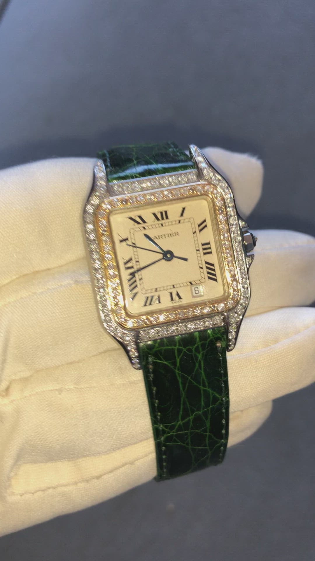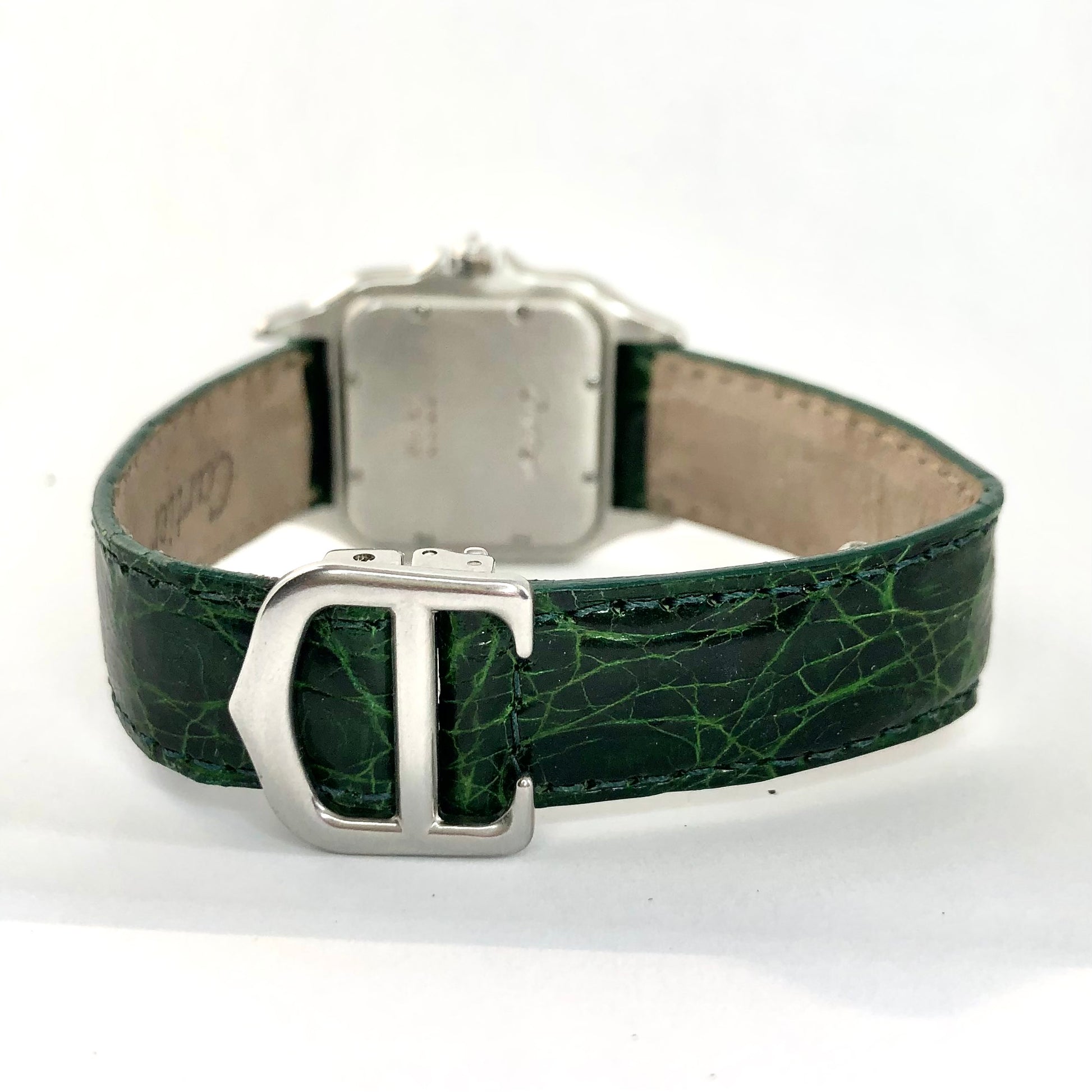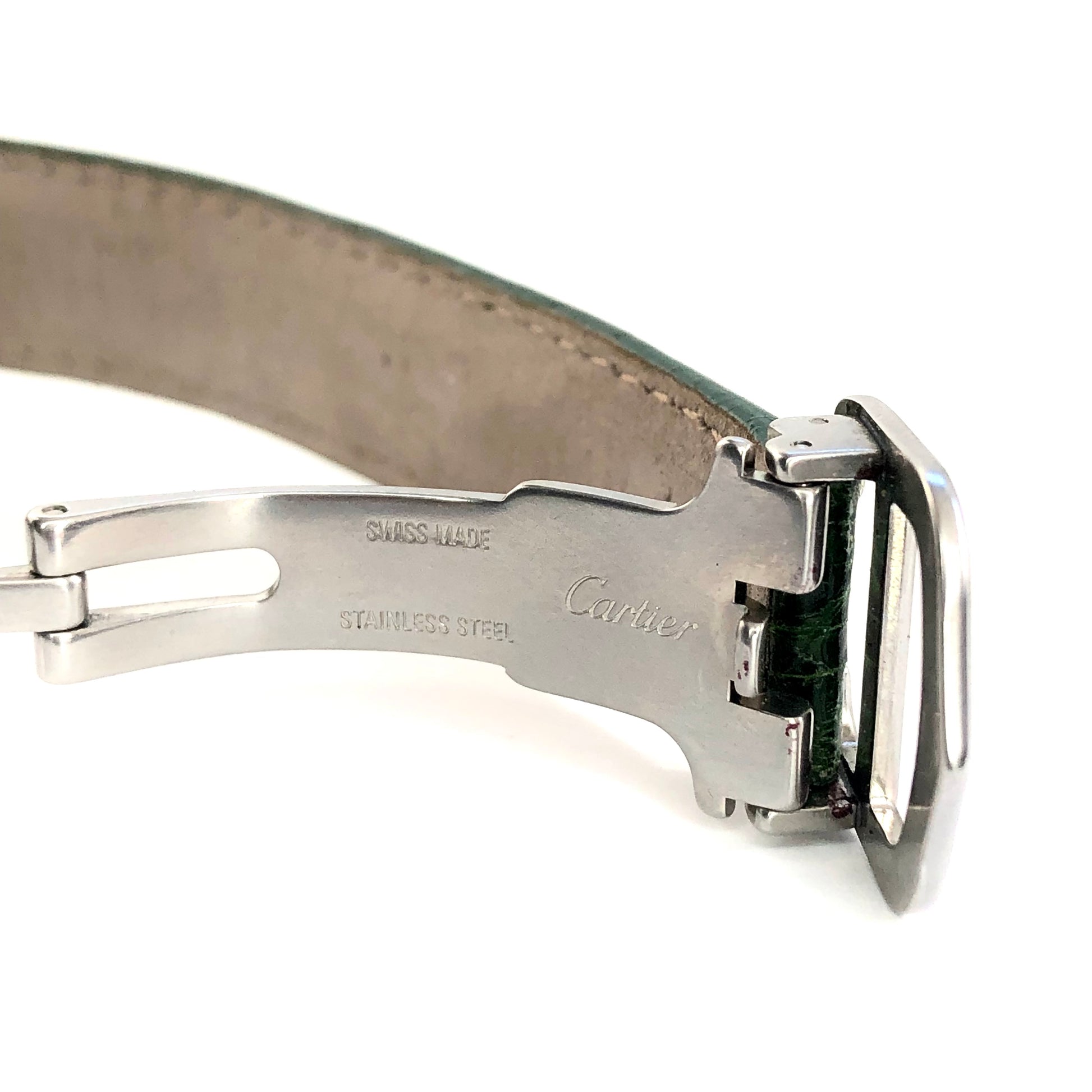 Band: Dark Green Leather stamped Cartier. Fits up to 6.75 Inches Wrist