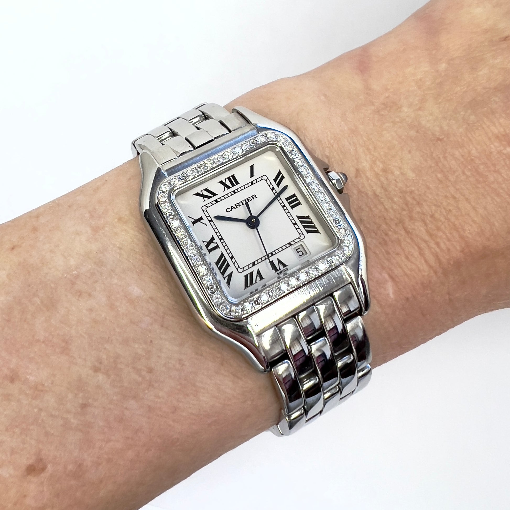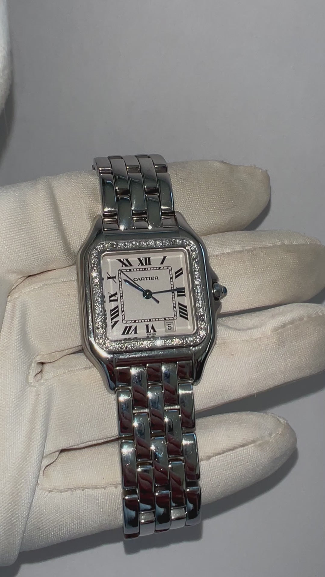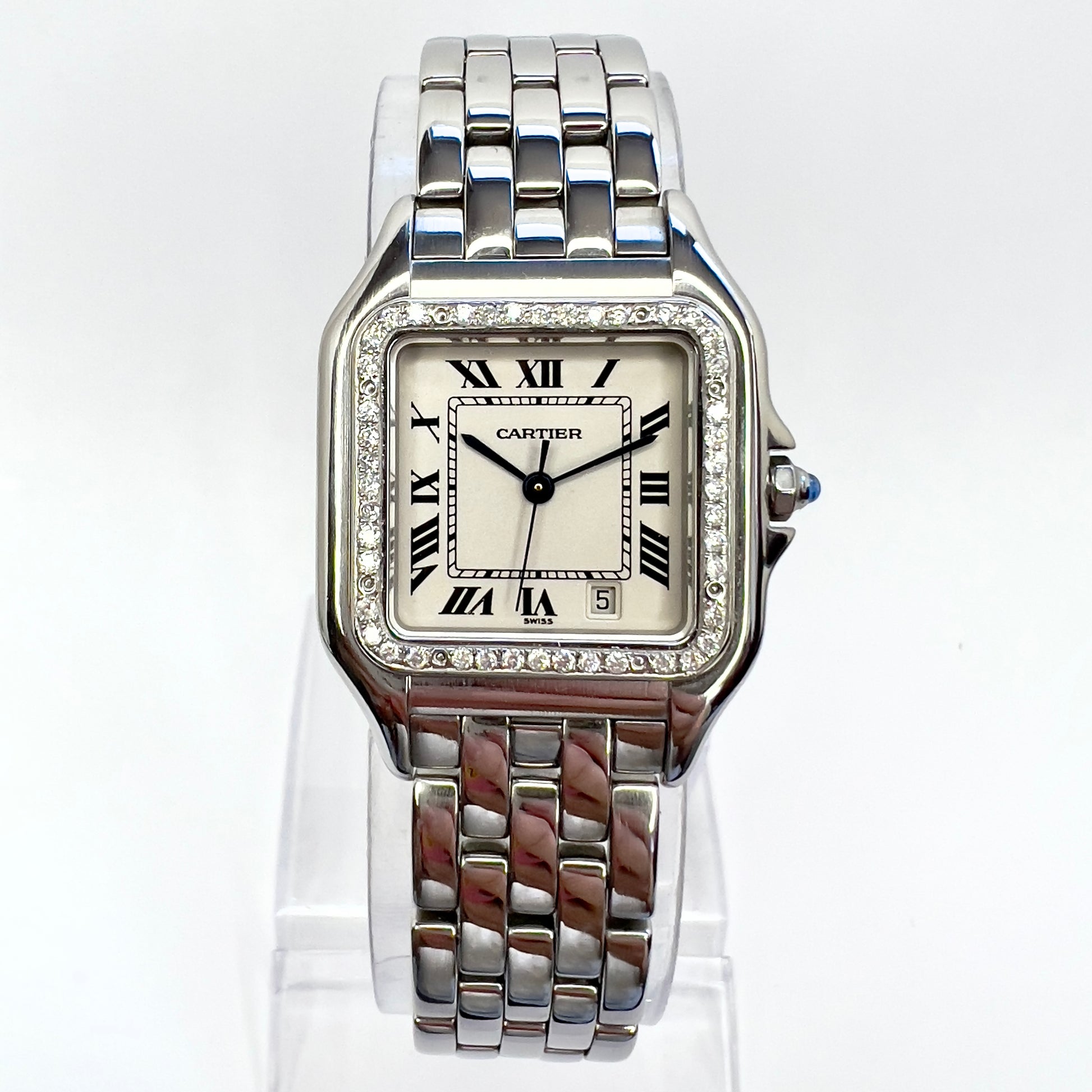 Authentic Pre Owned CARTIER PANTHERE 27mm Steel 0.48TCW Diamond Watch
