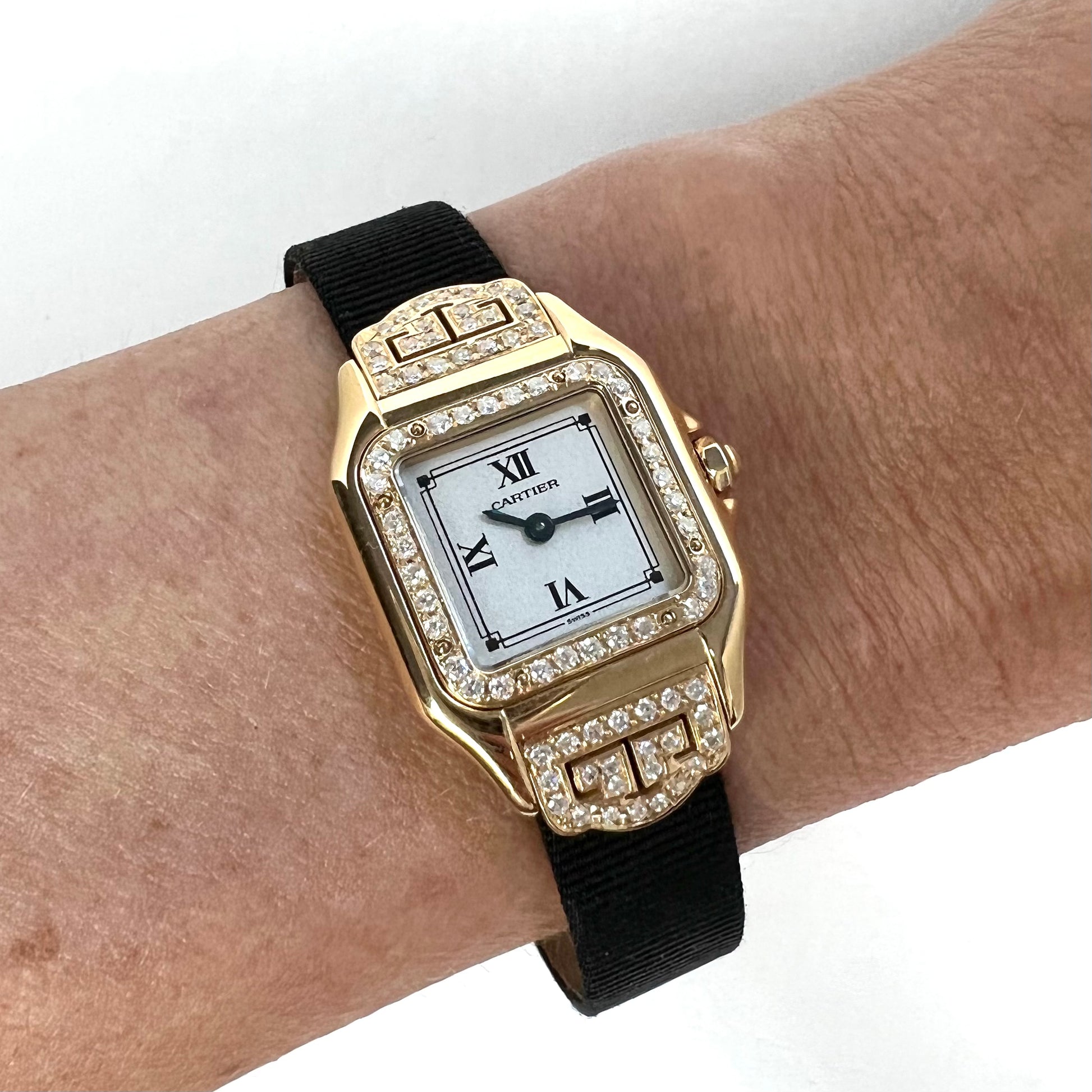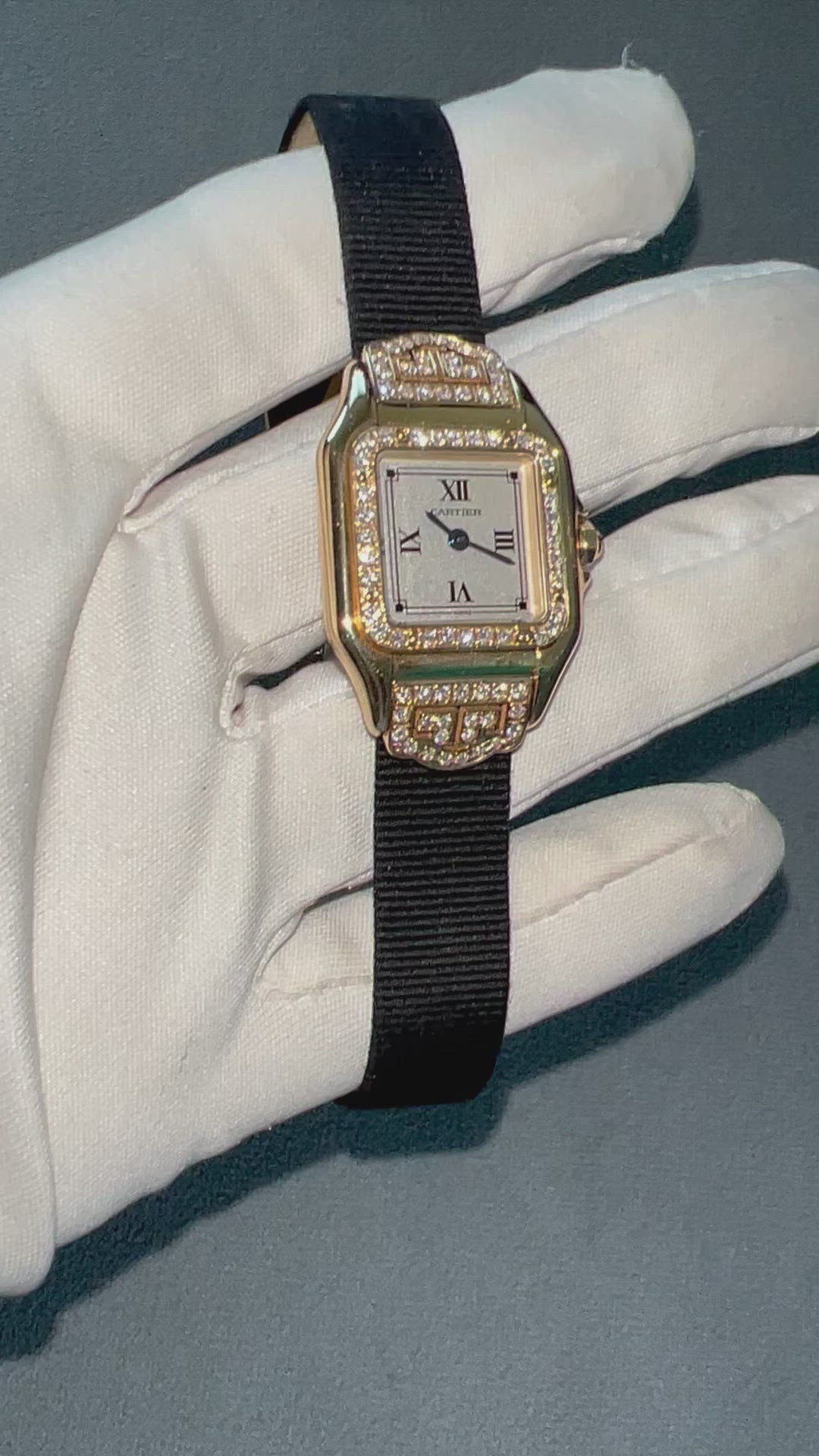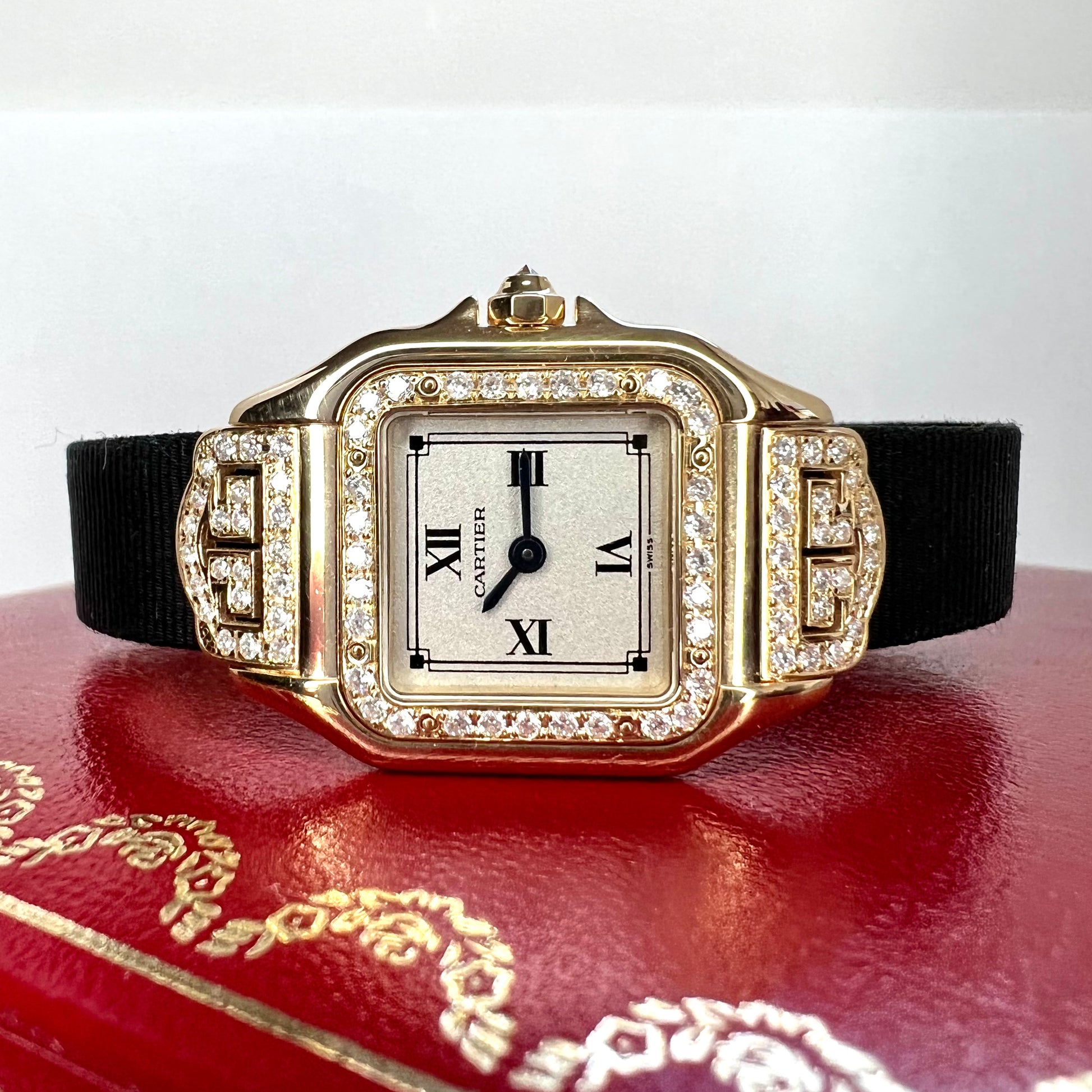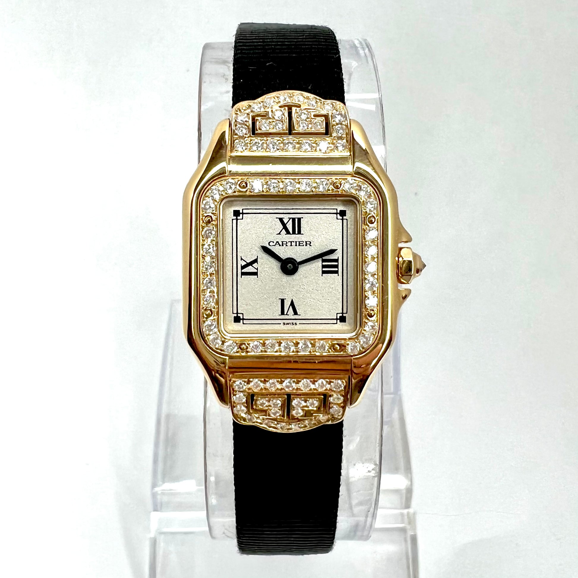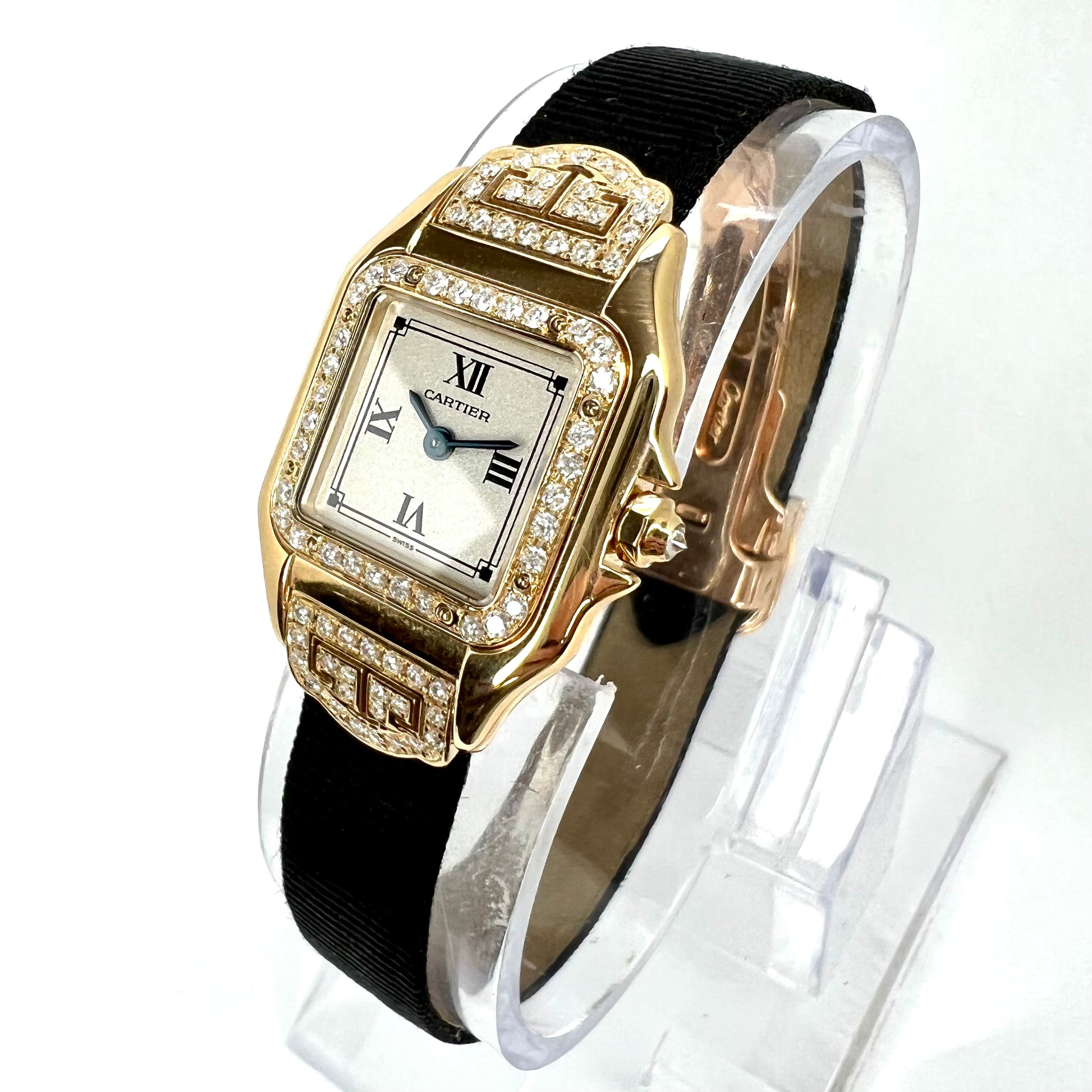 Authentic Pre Owned CARTIER PANTHERE Art Deco 23mm Quartz 18K Yellow Gold ~1.15TCW Diamond Watch