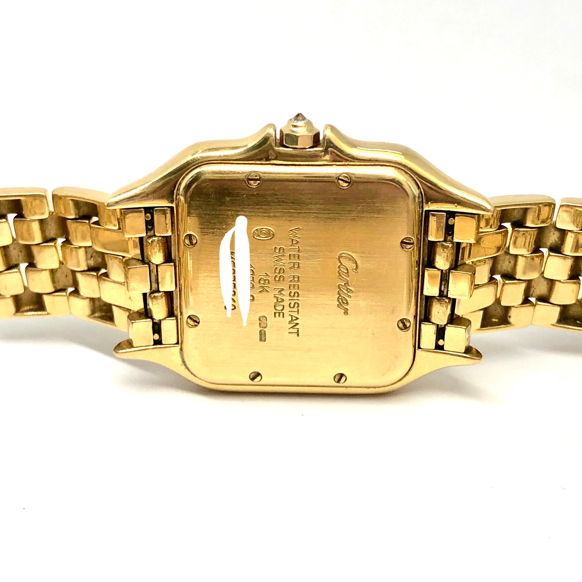 • Case: Glossy 18K Yellow Gold hallmarked ‘Cartier’ and stamped ‘Quartz’, ‘18K', 'Swiss Made’ and Serial Number