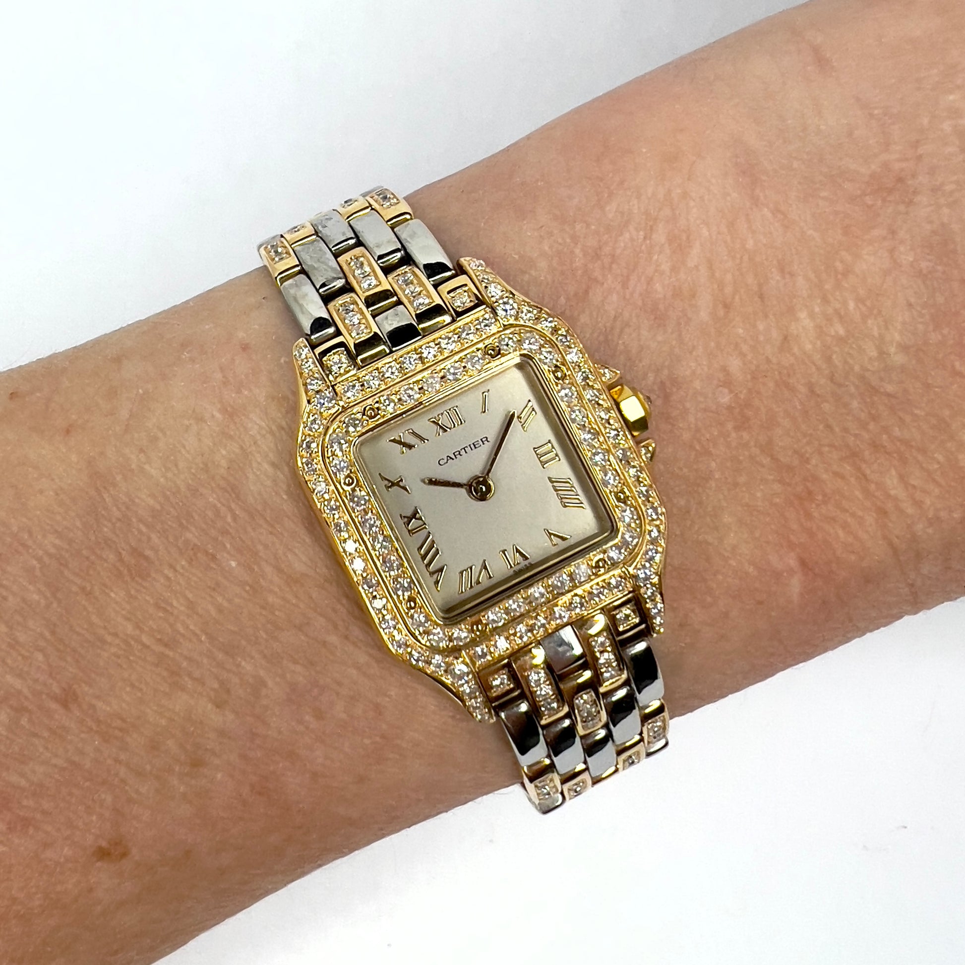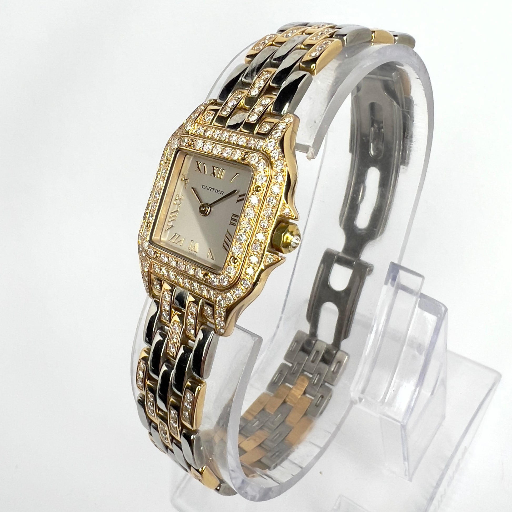 Authentic Pre Owned CARTIER PANTHERE Limited Edition Quart 23mm 2 Tone 1.96TCW Diamond Watch