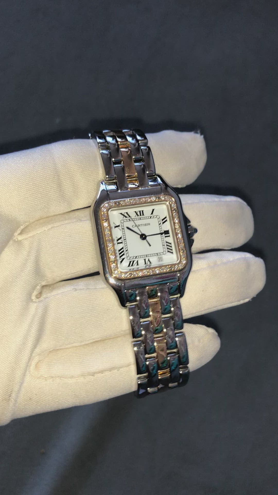 Authentic Pre Owned CARTIER PANTHERE Quartz 27mm 1 Row Gold 0.48TCW DIAMOND Watch