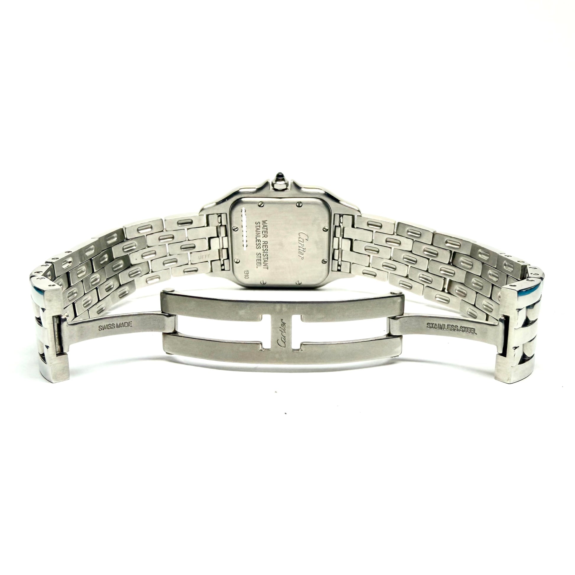 • Case: Glossy Stainless Steel, hallmarked ‘Cartier’ and stamped ‘Water Resistant’, ‘Stainless Steel', ‘1310’ and Serial Number