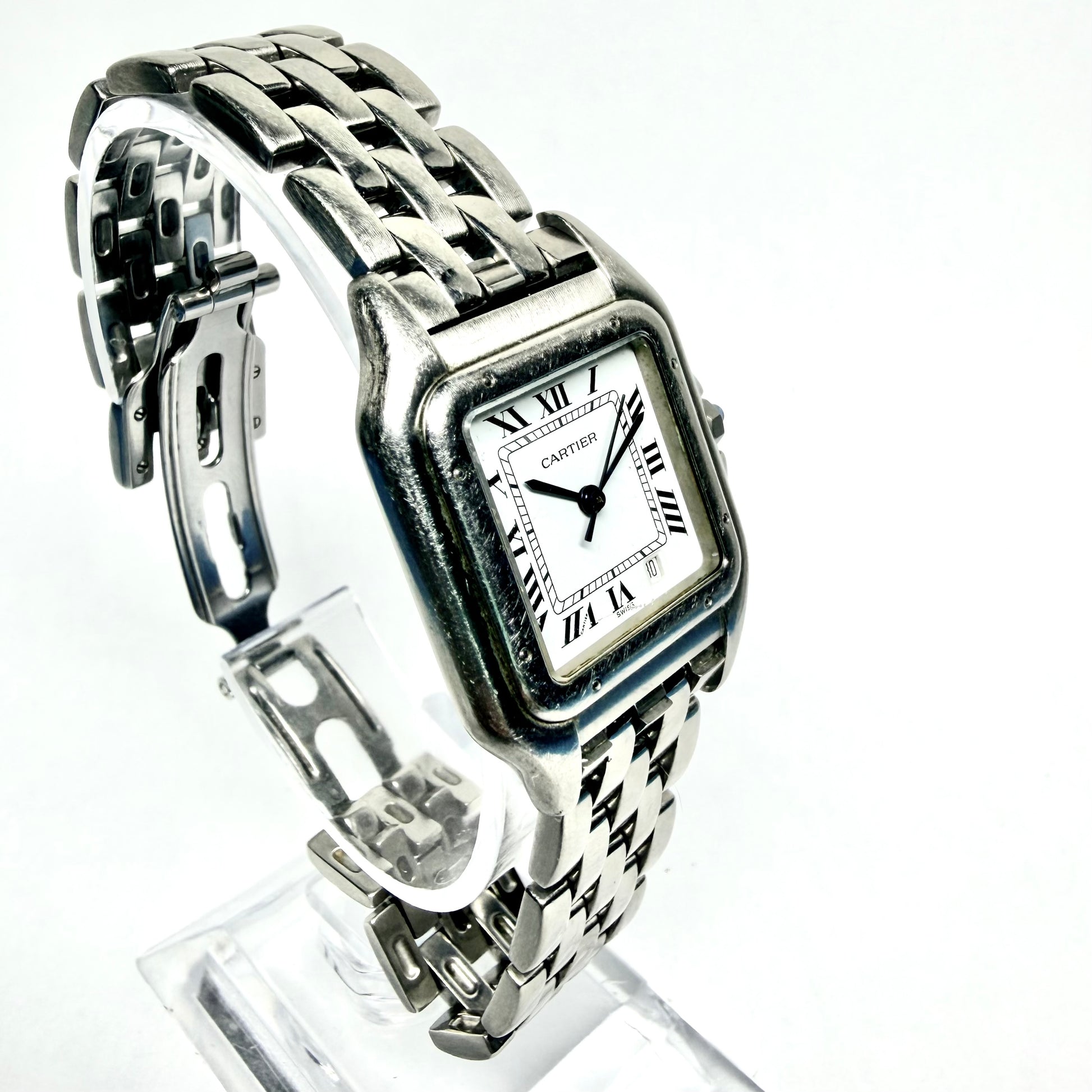• Case: Glossy Stainless Steel hallmarked ‘Cartier’ and stamped ‘Water Resistant’, ‘Stainless Steel', ‘1310’ and Serial Number