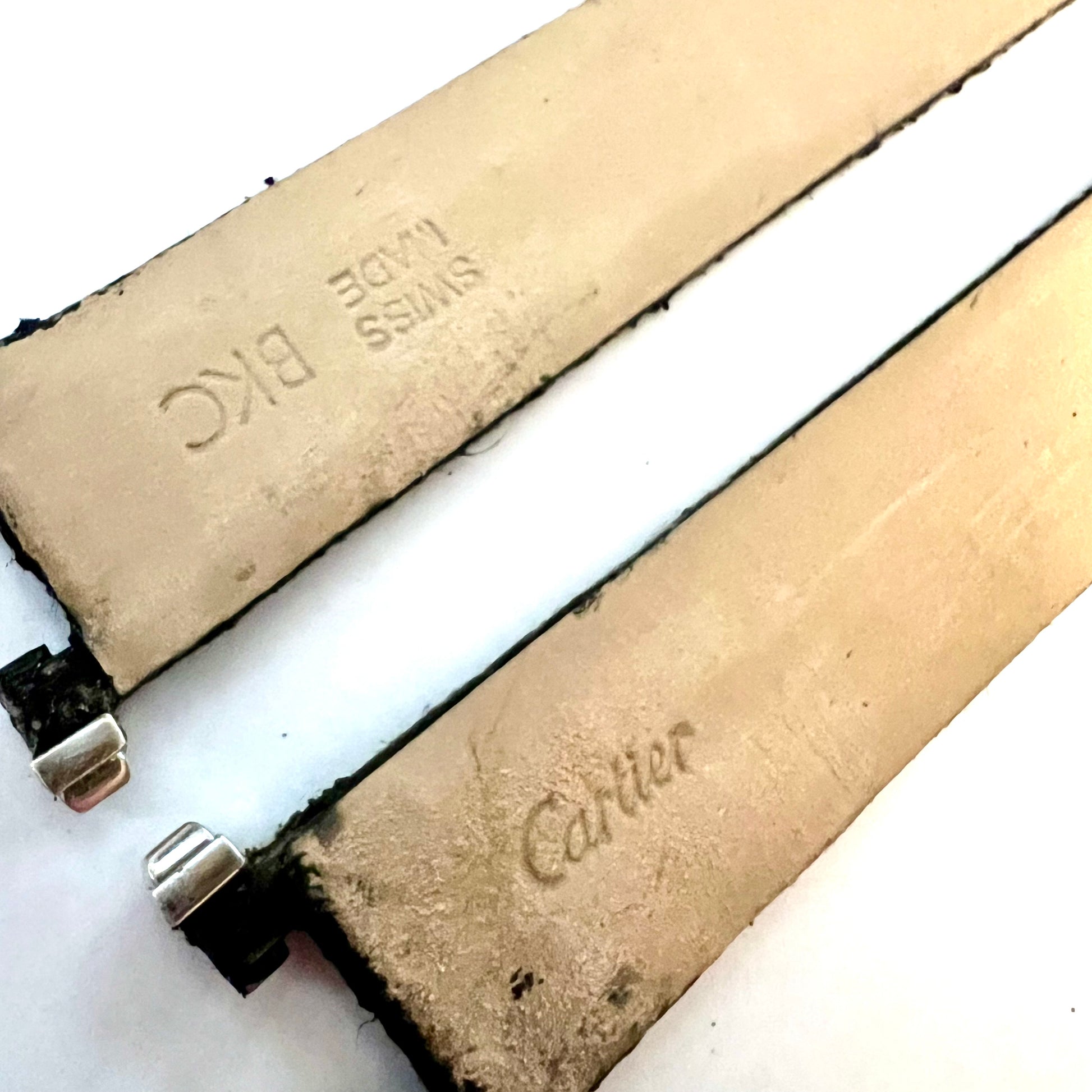 CARTIER PASHA 17/16mm Black Leather Band Strap with 18K White Gold Lugs Pieces