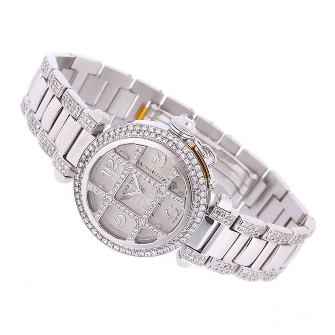 Authentic Pre Owned CARTIER PASHA GRID 38mm Automatic Steel 7.3TCW DIAMOND Watch