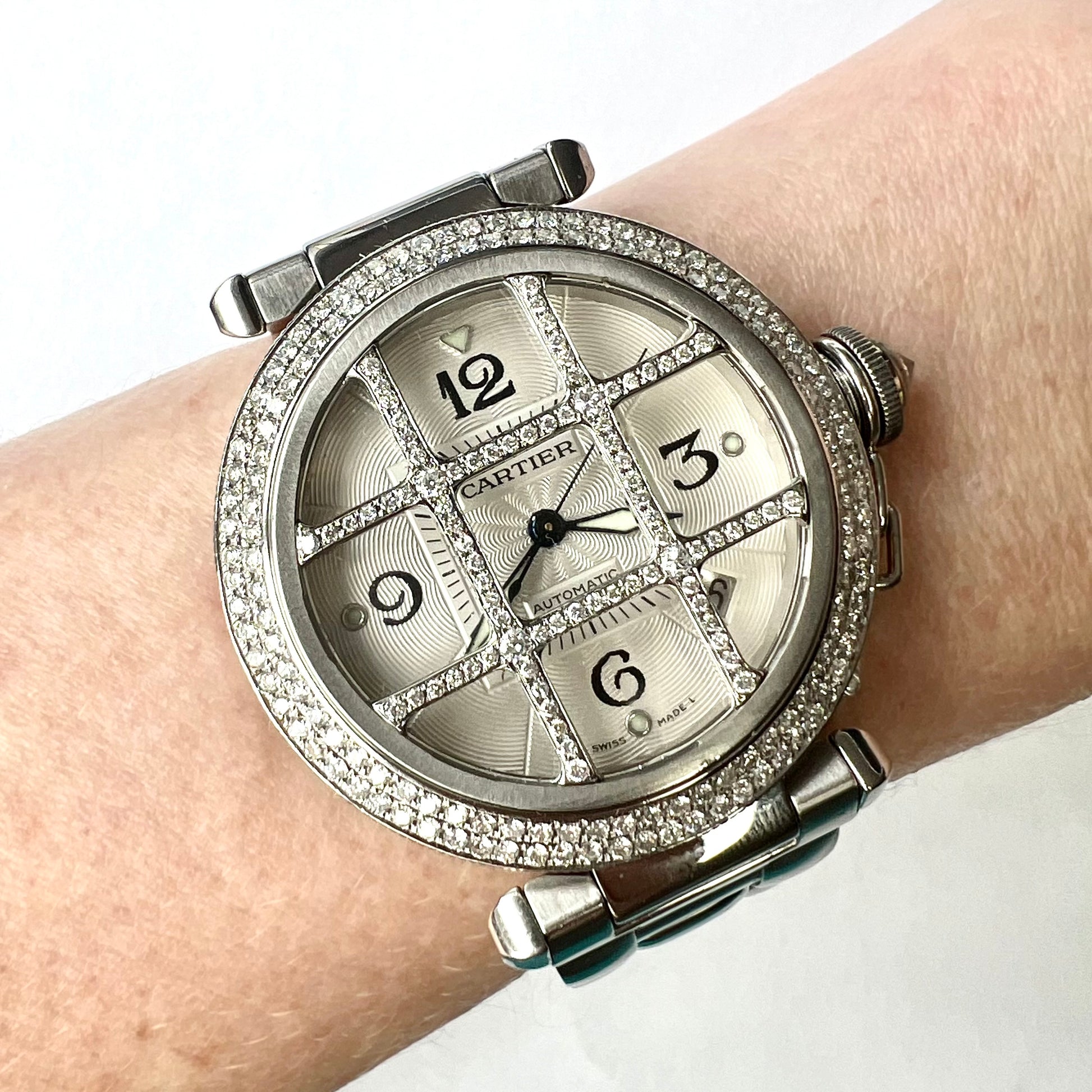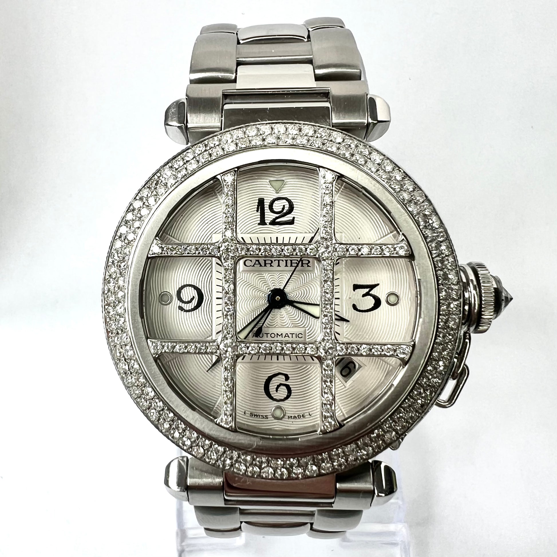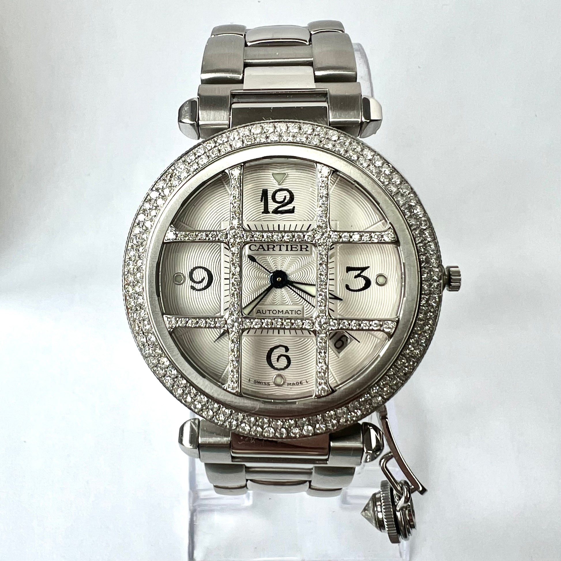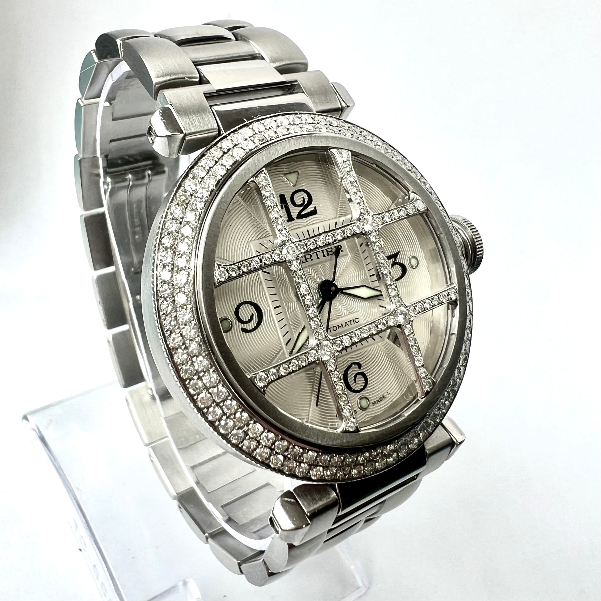 Authentic Pre Owned CARTIER PASHA GRID 38mm Automatic Steel 1.9TCW DIAMOND Watch