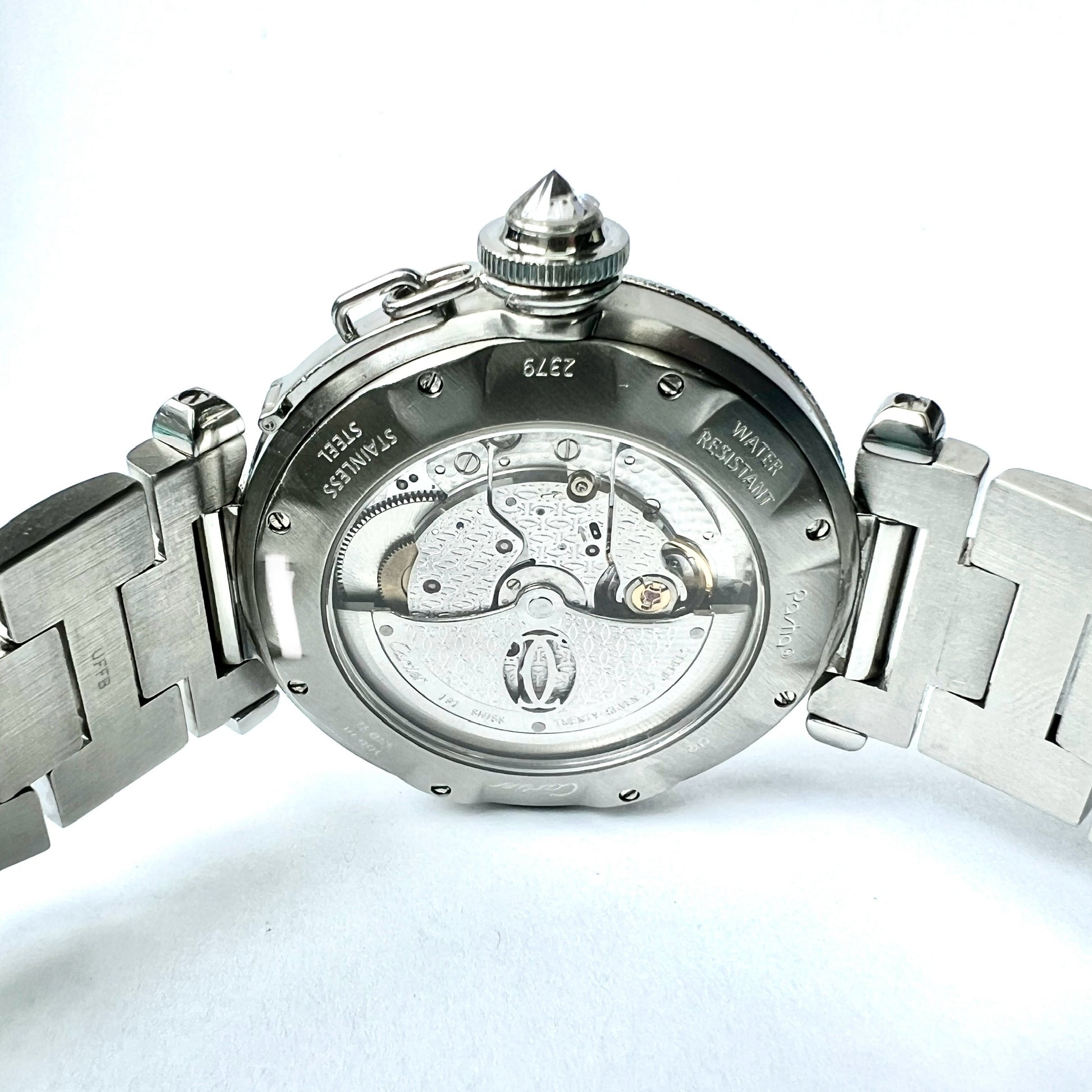 • Case: Stainless Steel Skeleton Backcase, hallmarked ‘Pasha de Cartier’ and stamped ‘Automatic’, ‘Water Resistant 100m/330ft’, 'Stainless Steel’, ‘Swiss Made’, ‘2379’, ‘Serial Number.