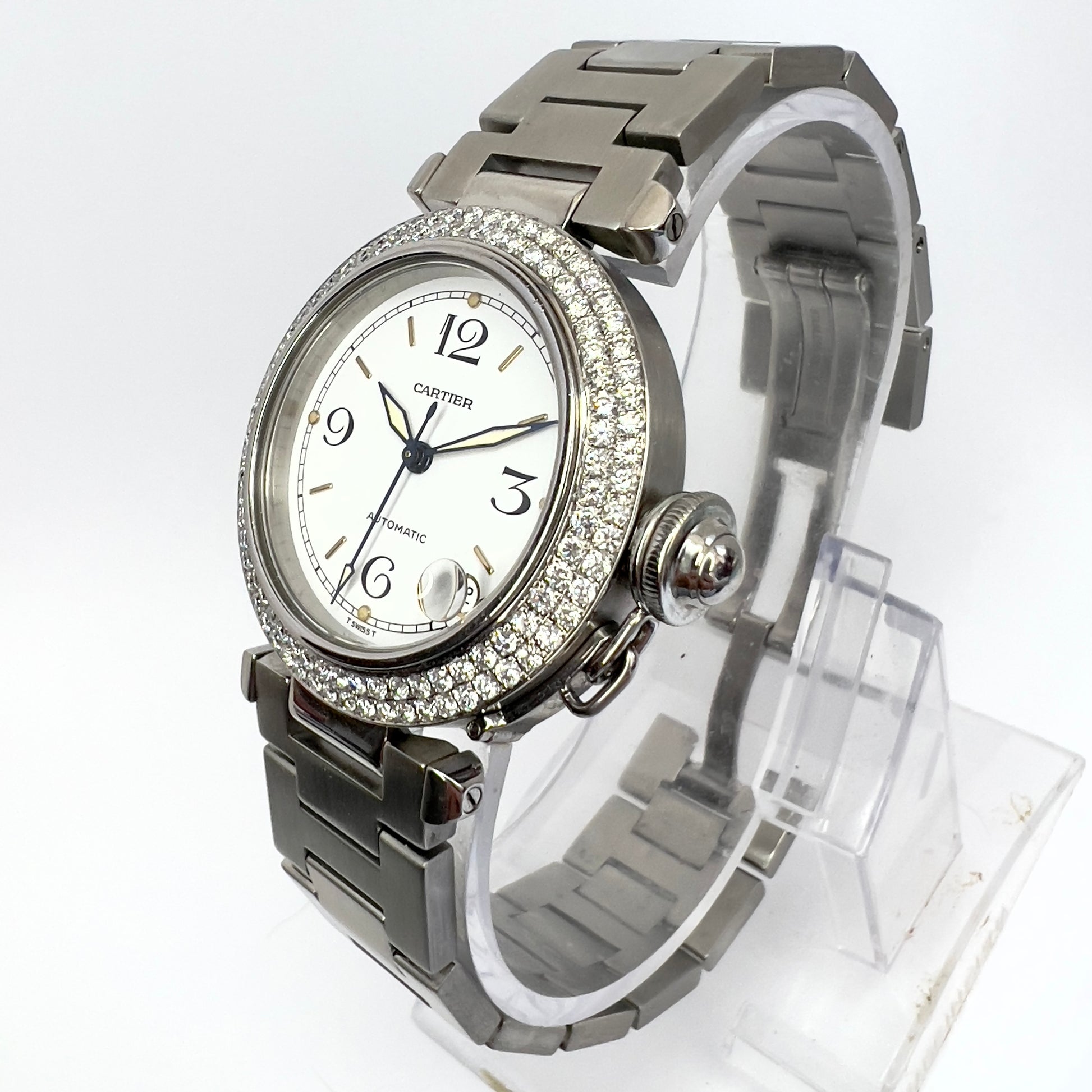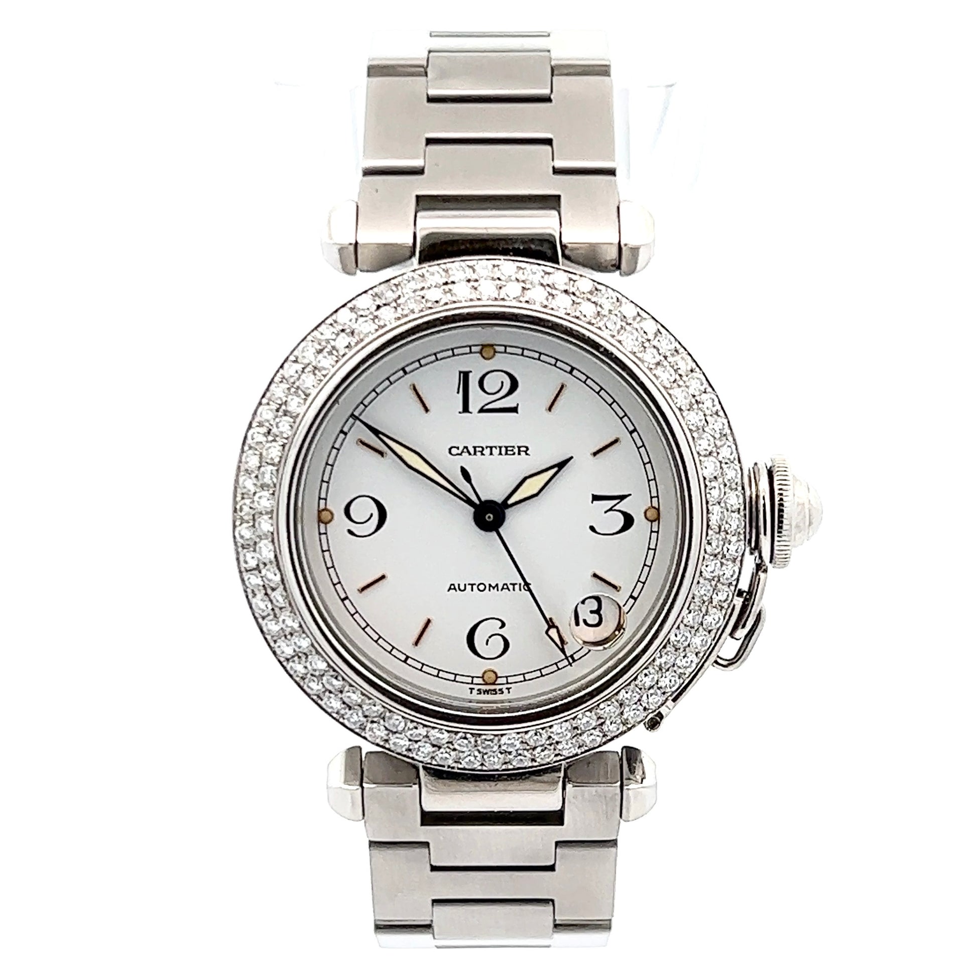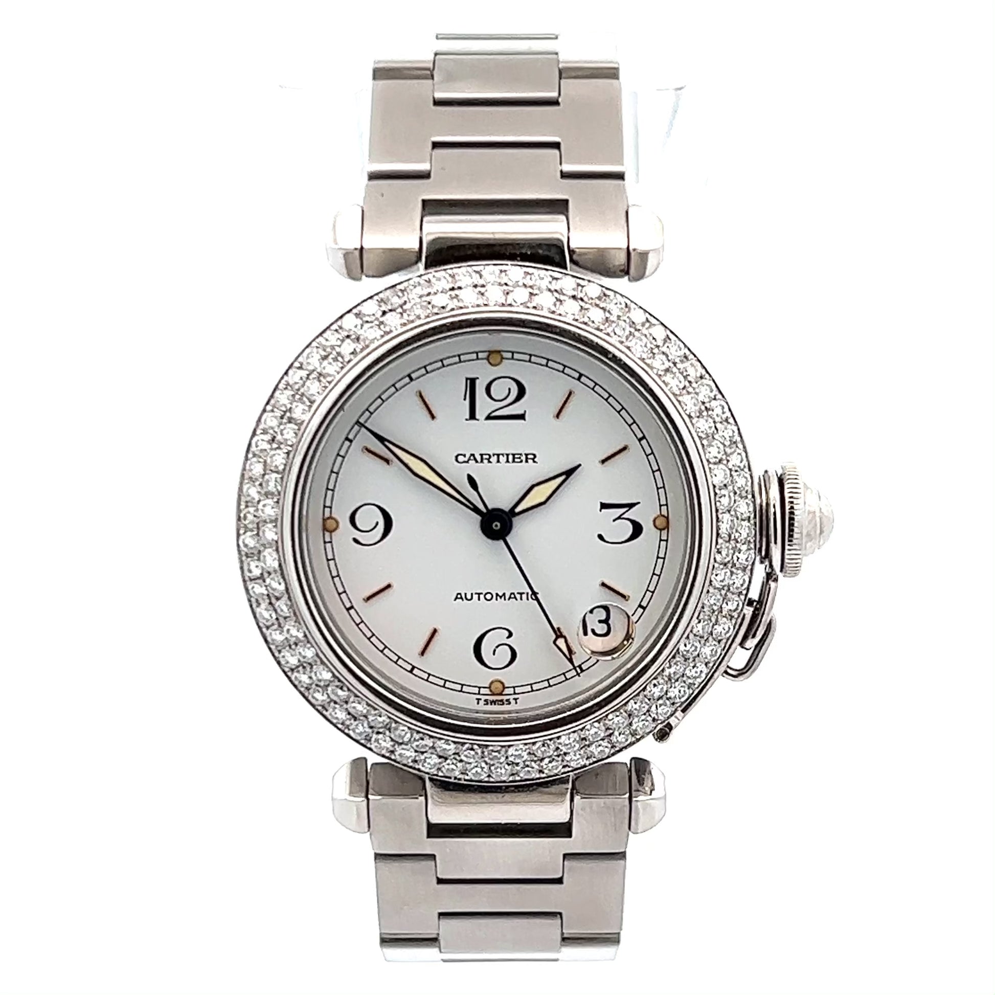 Authentic Pre Owned CARTIER PASHA Automatic 35mm Steel 1.81TCW DIAMOND Watch
