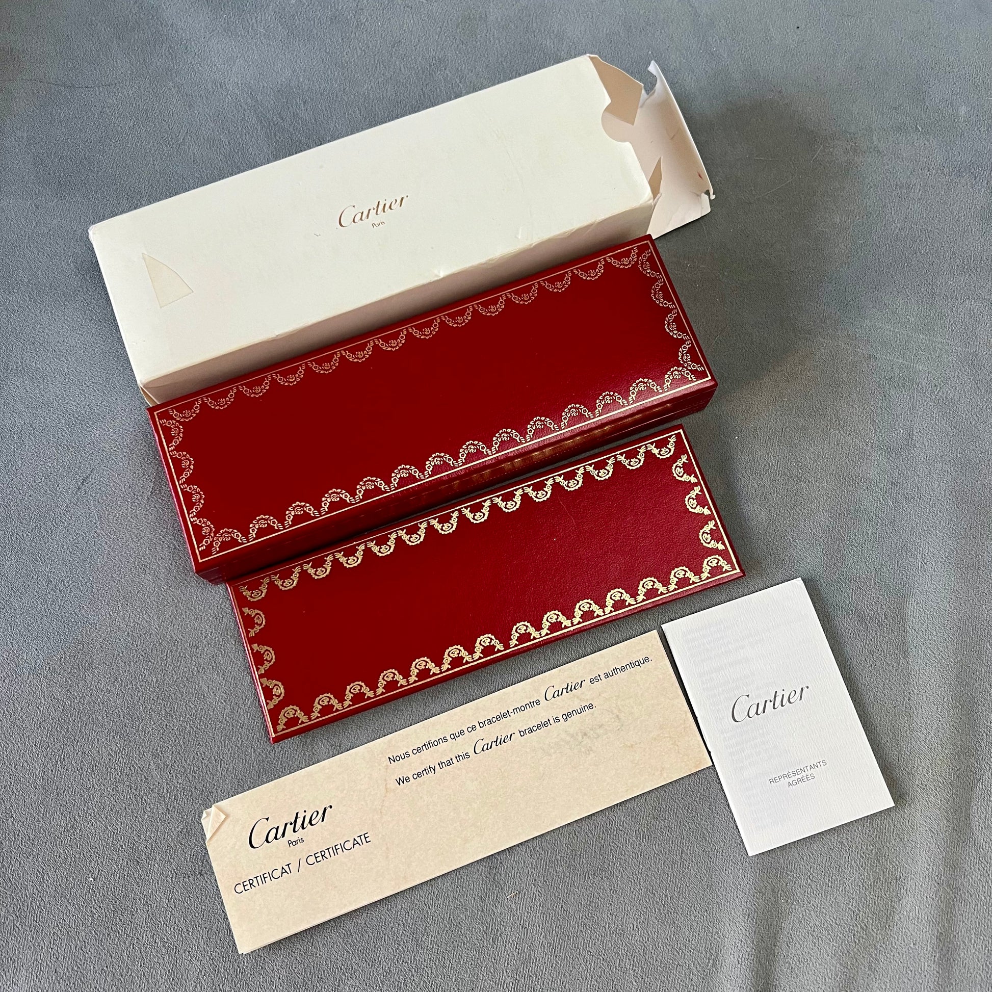 Authentic Pre Owned CARTIER Pasha Bracelet Box + Outer Box + Empty Certificate + Booklet