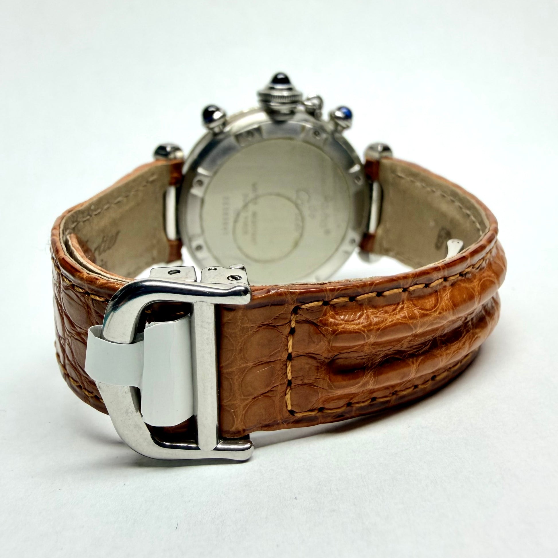 CARTIER PASHA Chronograph 1352 Quartz 36mm Steel Watch Gray Dial