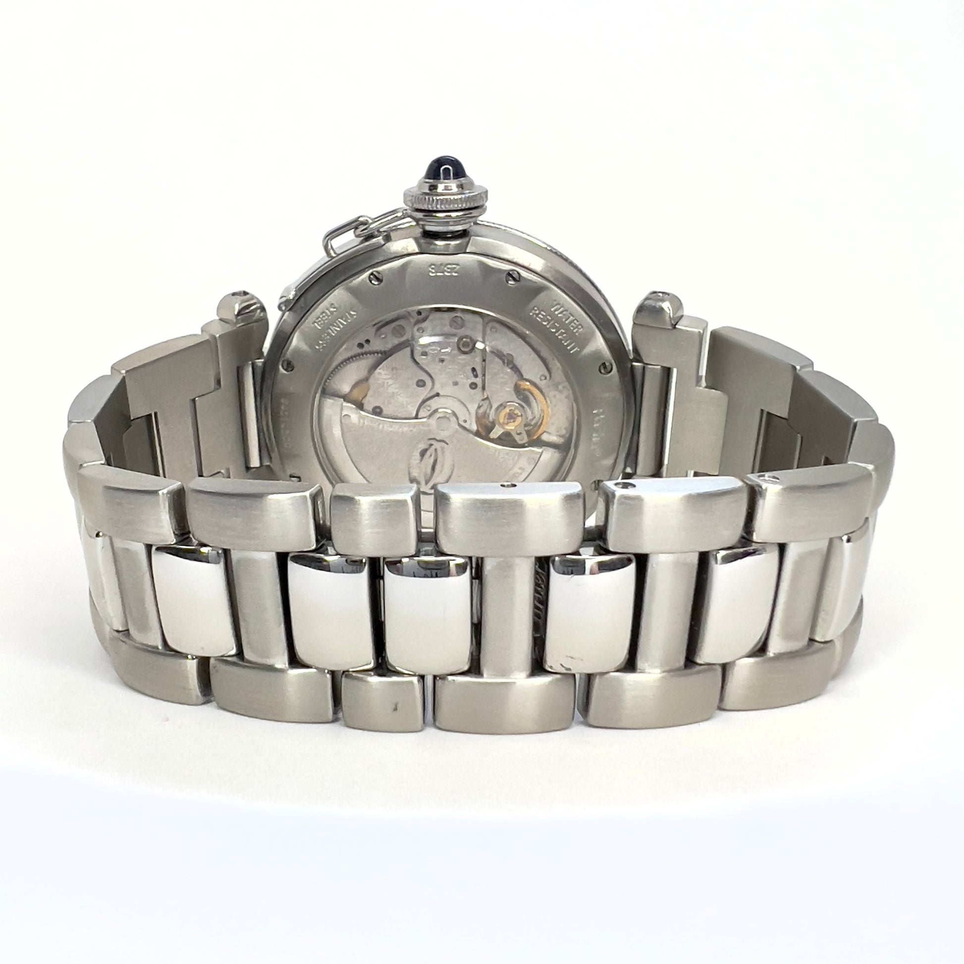 • Case: Stainless Steel Skeleton Backcase, hallmarked ‘Cartier Pasha’ and stamped ‘Automatic’, ‘Water Resistant ', 'Stainless Steel’, ‘Swiss Made’, ‘Serial Number.