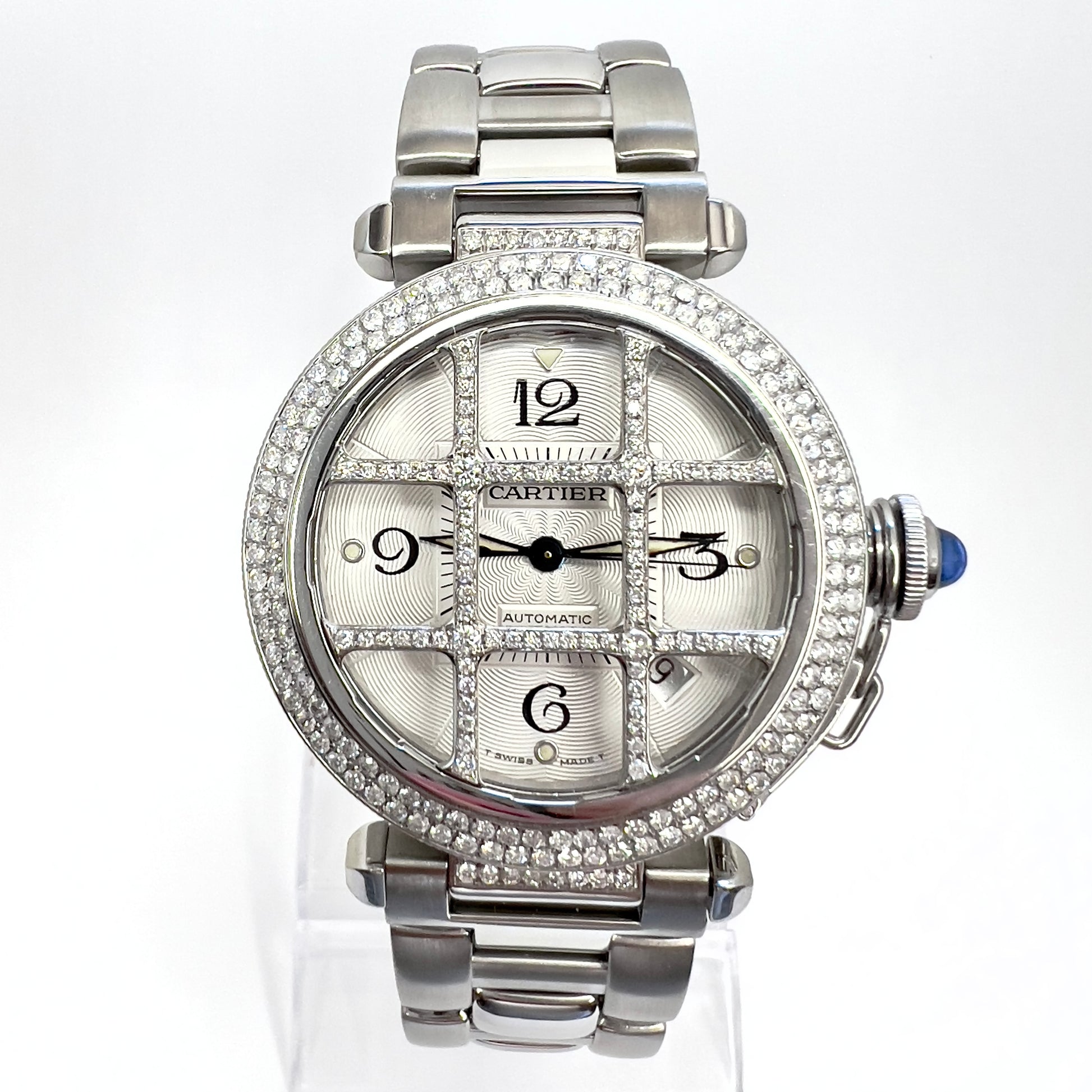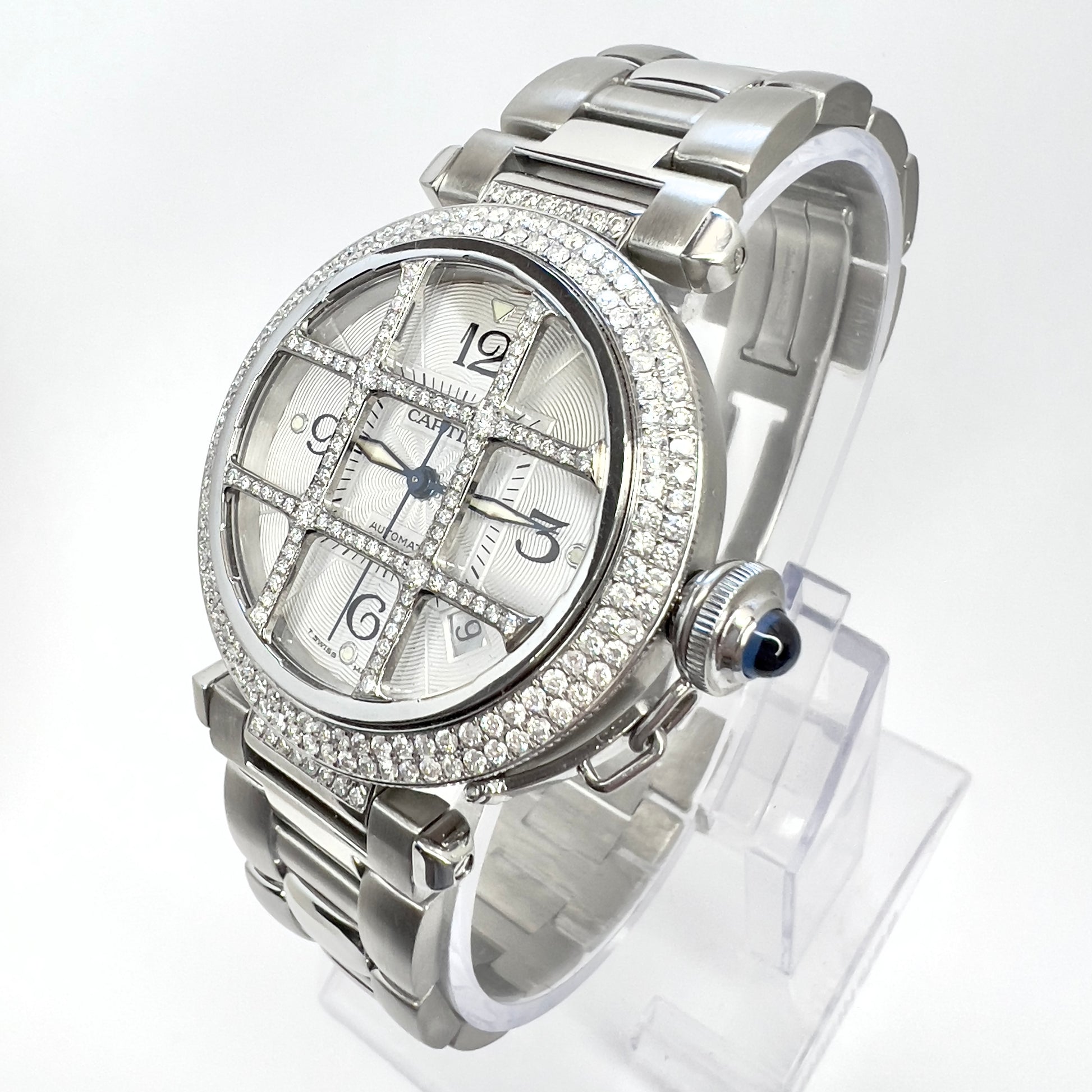 Authentic Pre Owned CARTIER PASHA GRID 38mm Automatic Steel 2.05TCW DIAMOND Watch