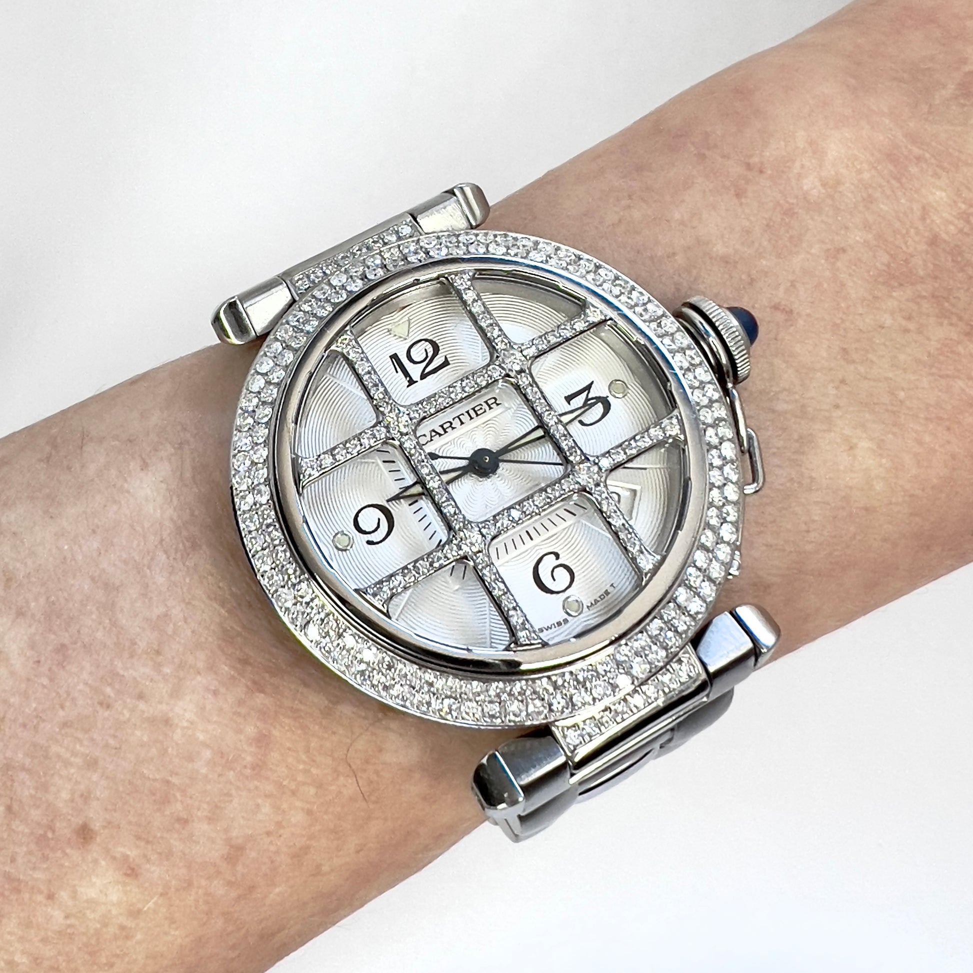 CARTIER PASHA GRID 38mm Automatic Steel 2.05TCW DIAMOND Watch