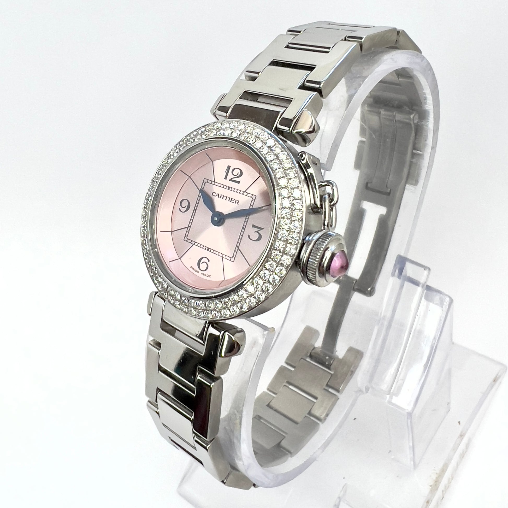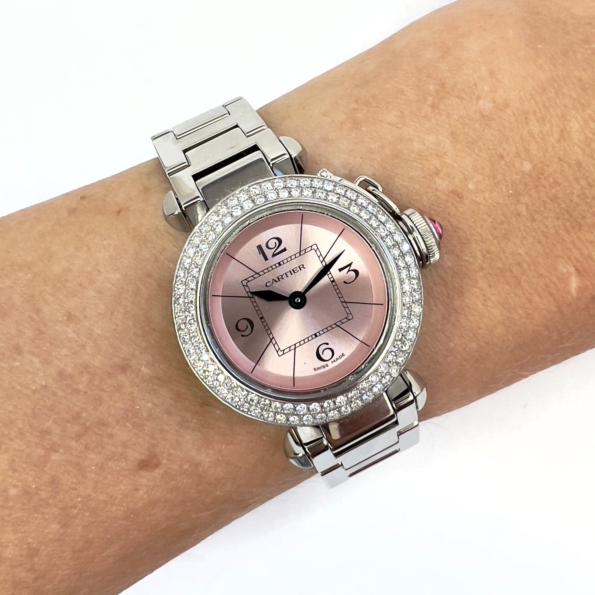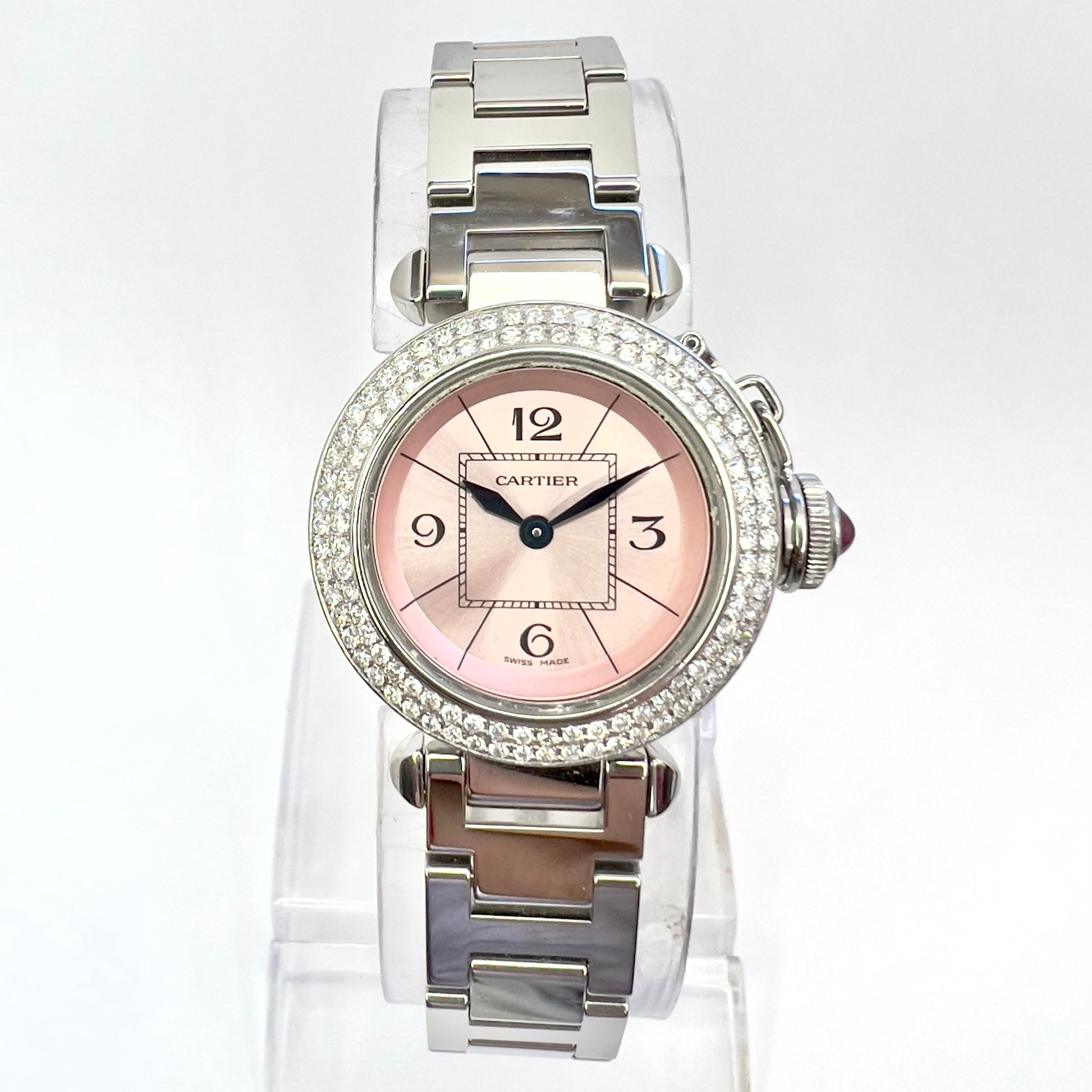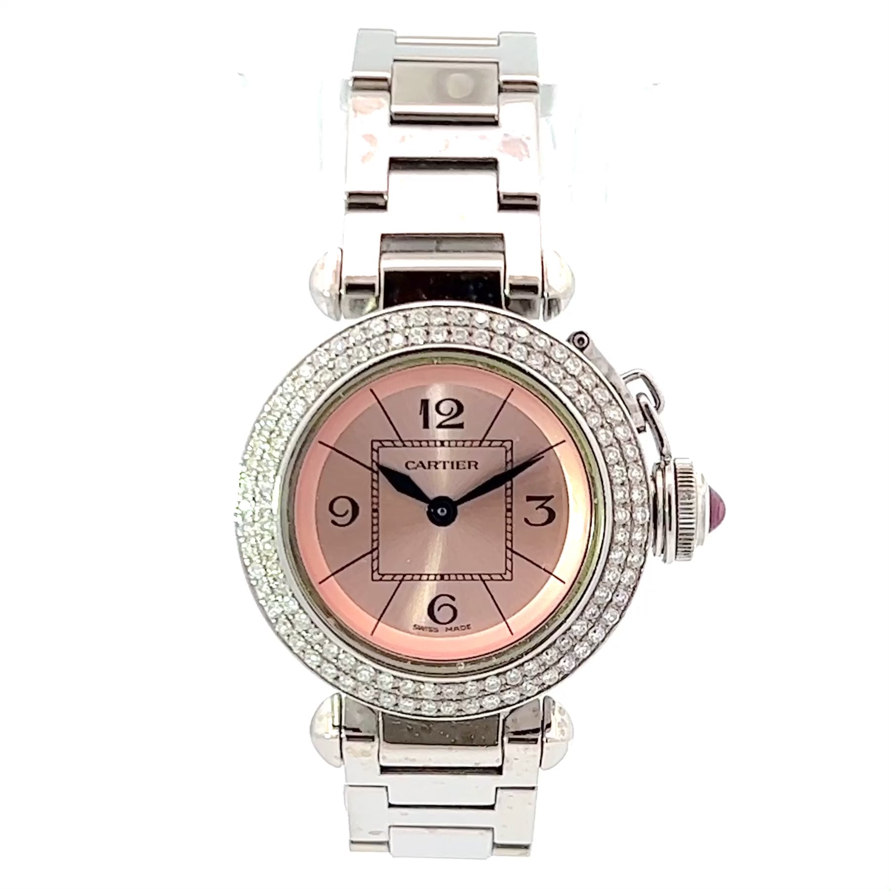 CARTIER PASHA Quartz 27mm Steel 0.73TCW DIAMOND Watch Pink Dial