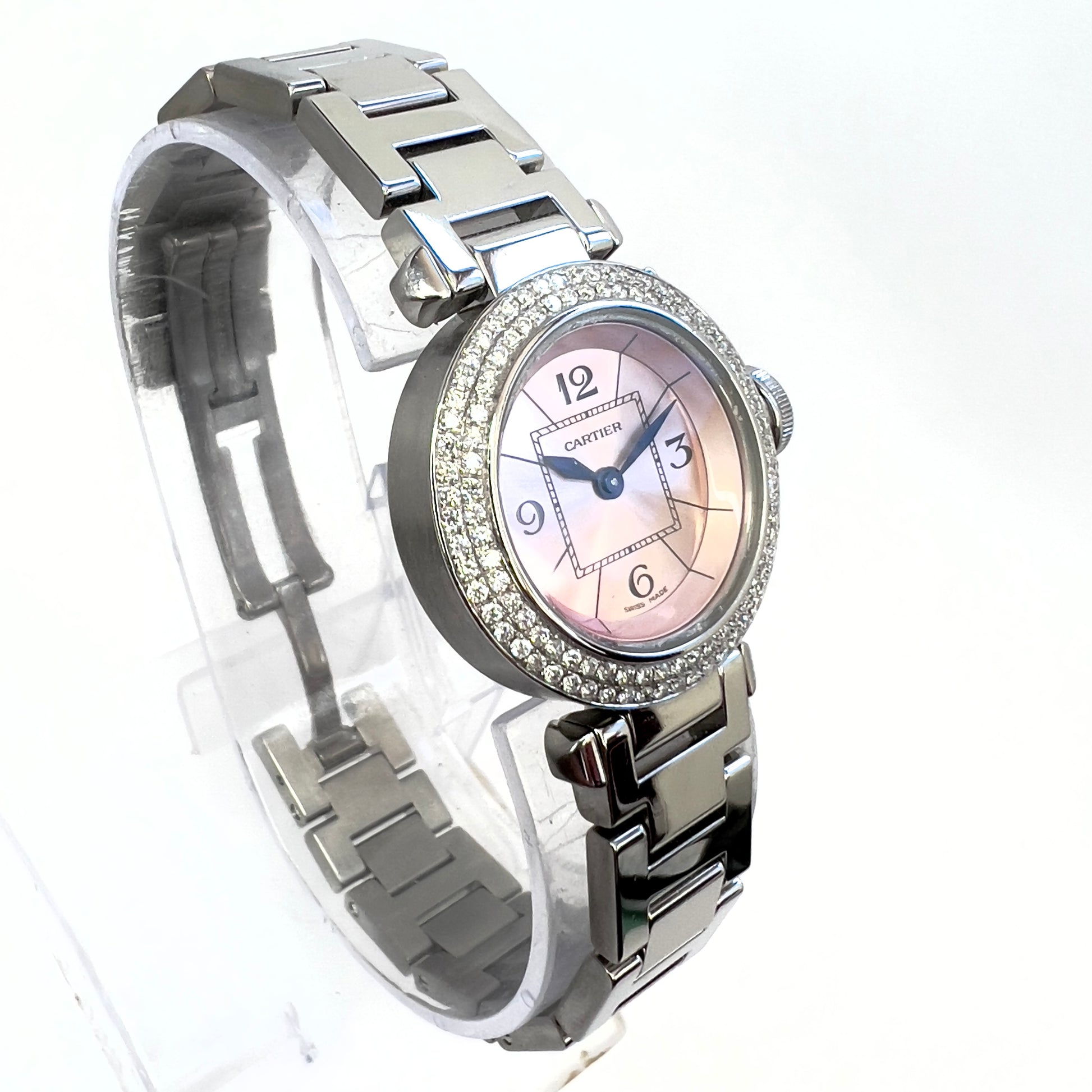 Authentic Pre Owned CARTIER PASHA Quartz 27mm Steel 0.73TCW DIAMOND Watch Pink Dial