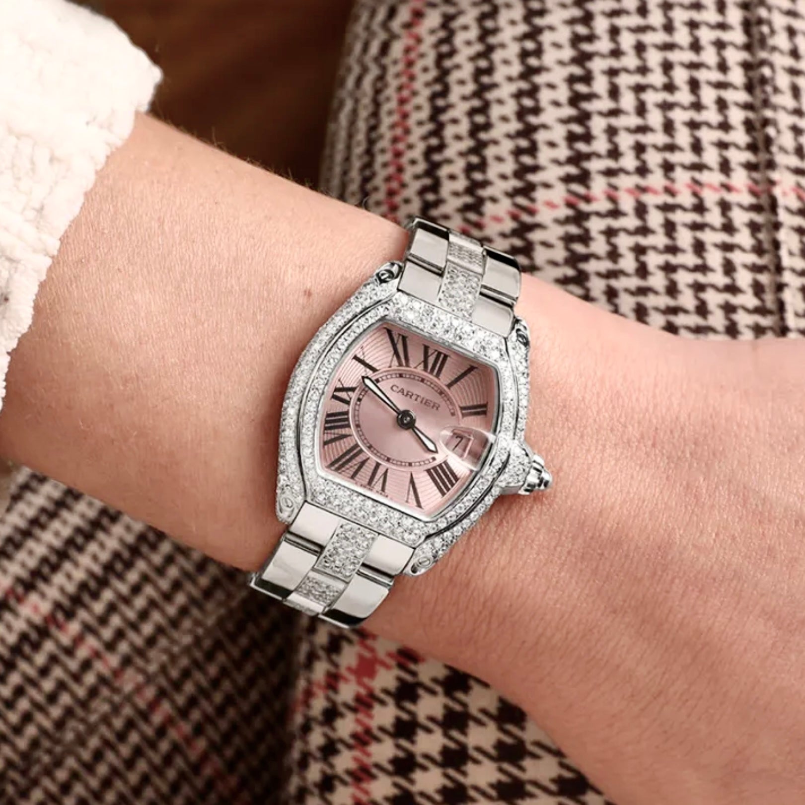 CARTIER ROADSTER Quartz 31mm Steel ~5TCW Diamond Watch