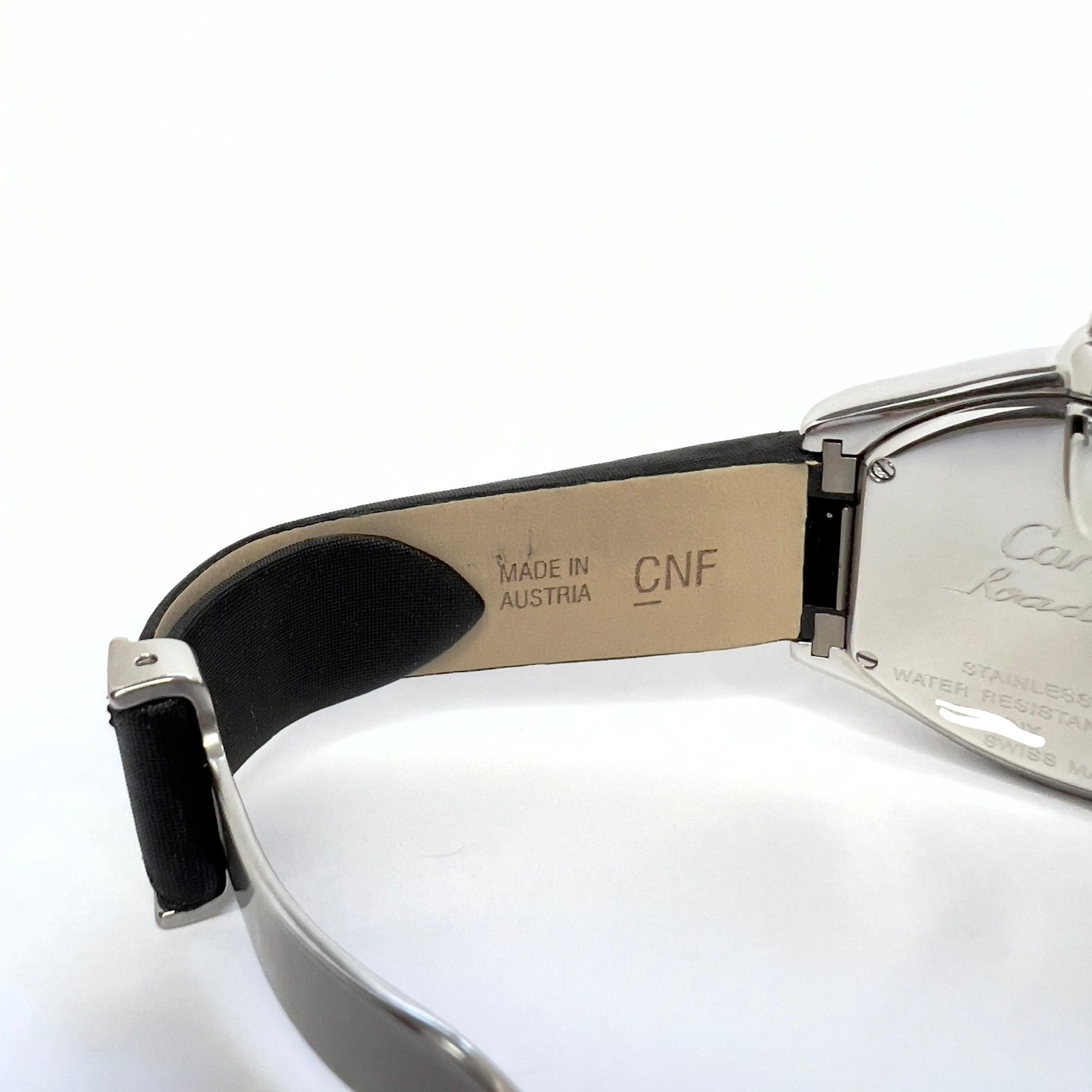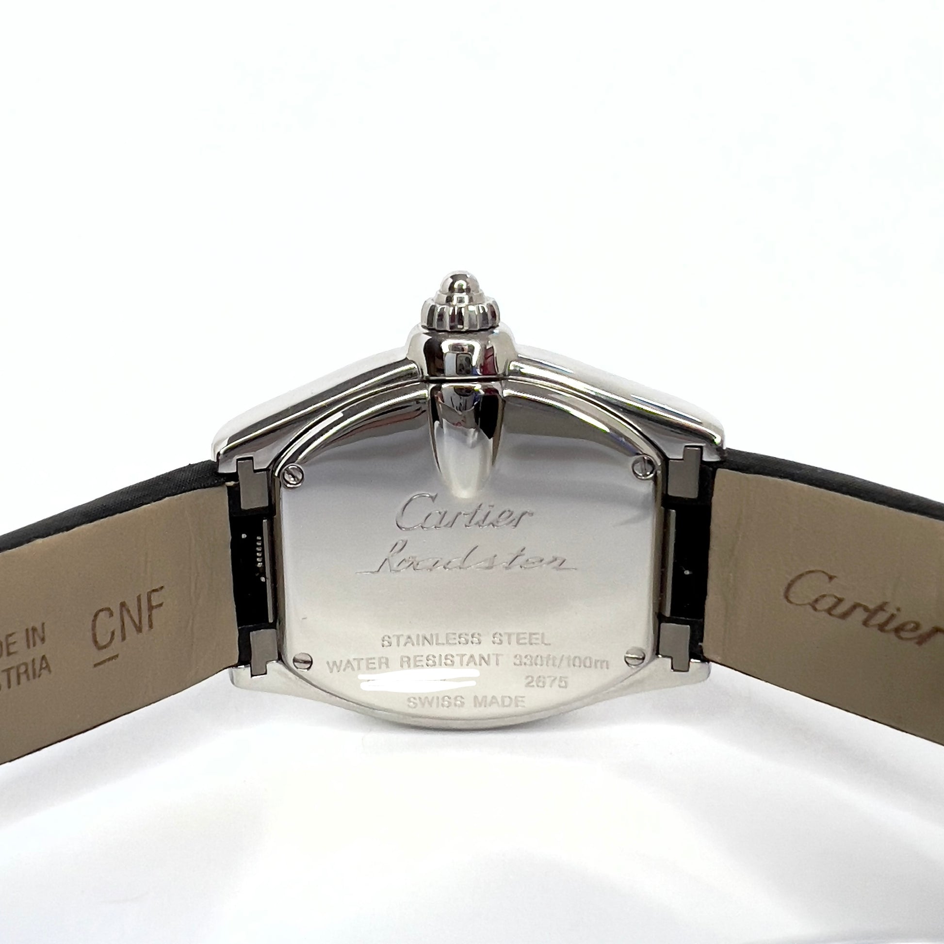 • Case: Glossy Stainless Steel set with Custom Natural Diamonds hallmarked ‘Cartier’ and stamped ‘Roadster', 'Stainless Steel', 'Water Resistant', 330ft/100m, Swiss Made and Serial Number