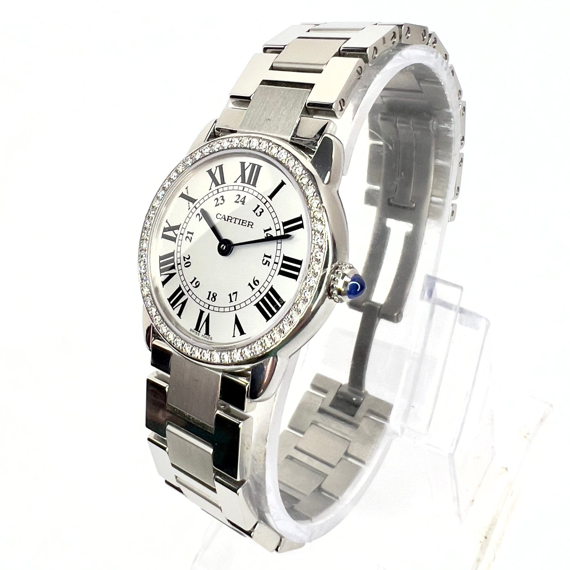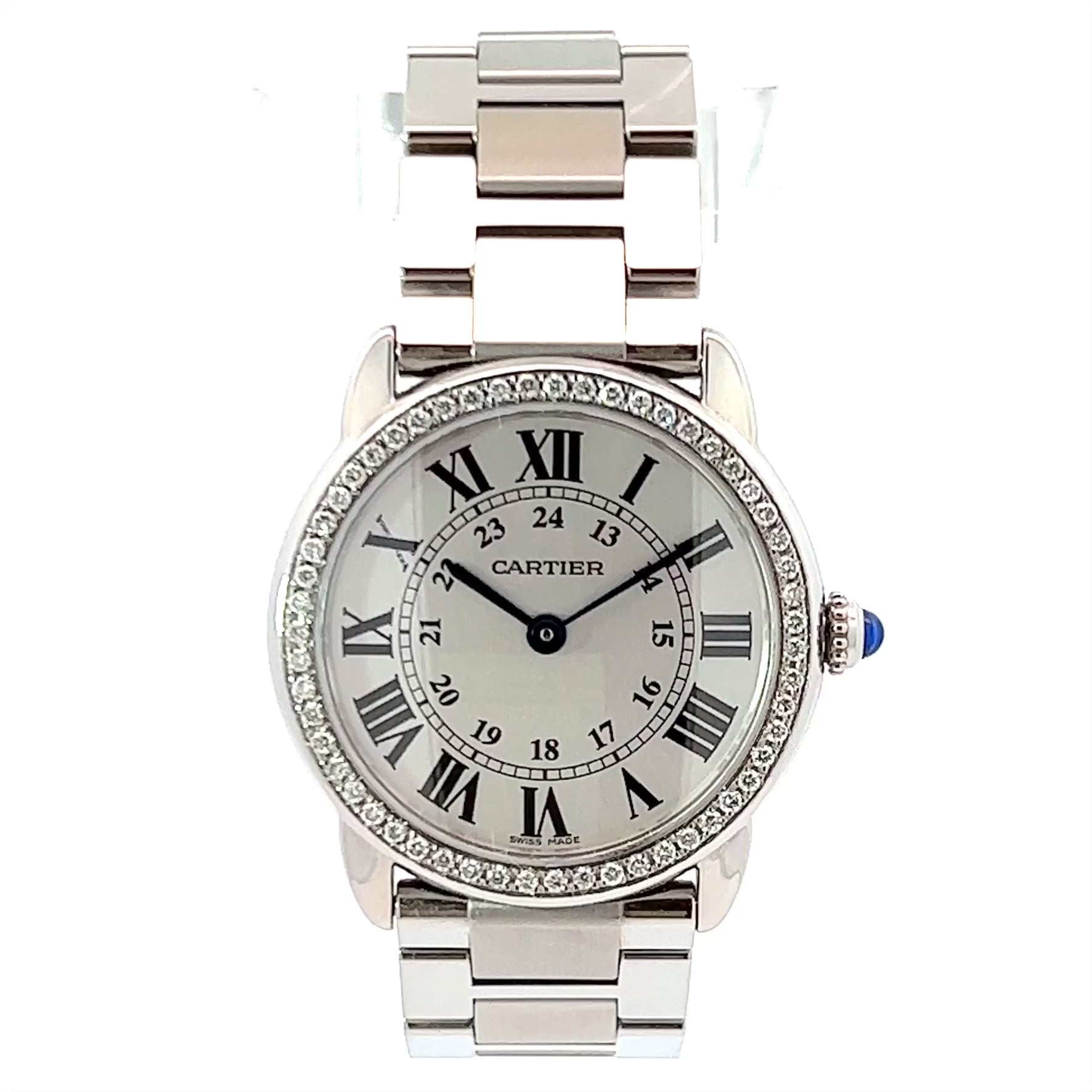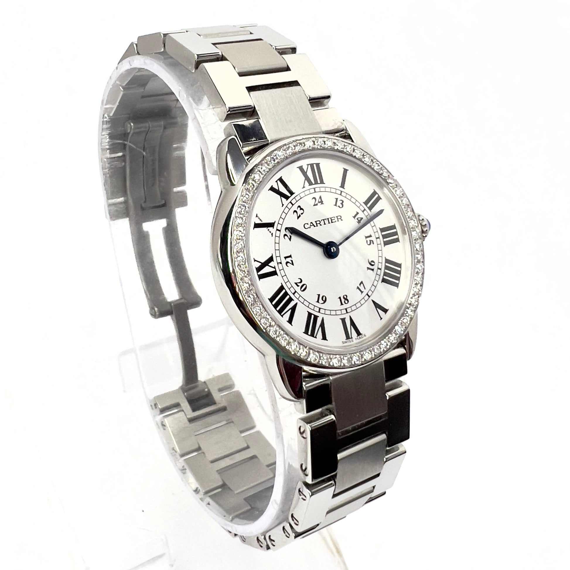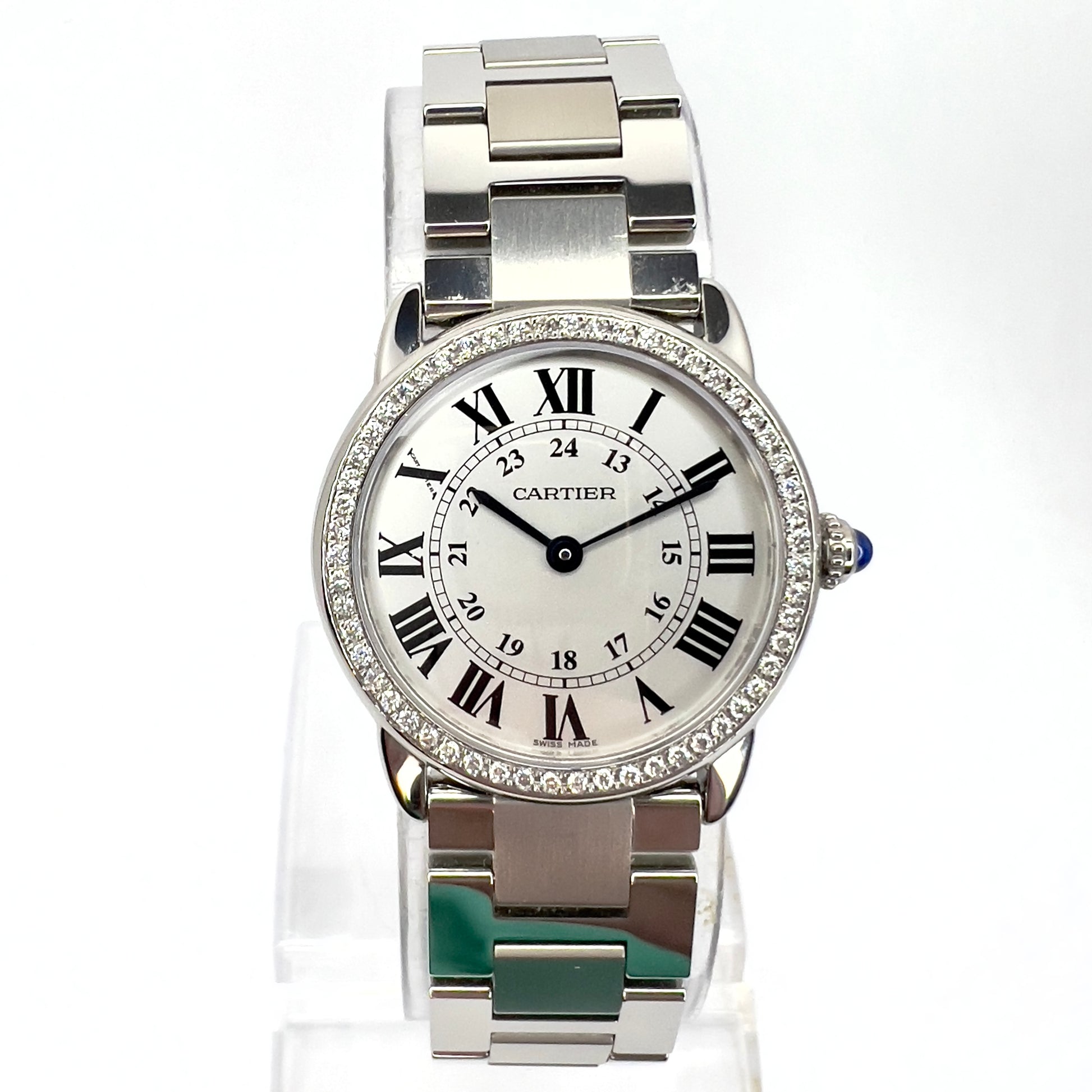 Authentic Pre Owned CARTIER RONDE SOLO 29mm Quartz Steel 0.45TCW DIAMOND Watch