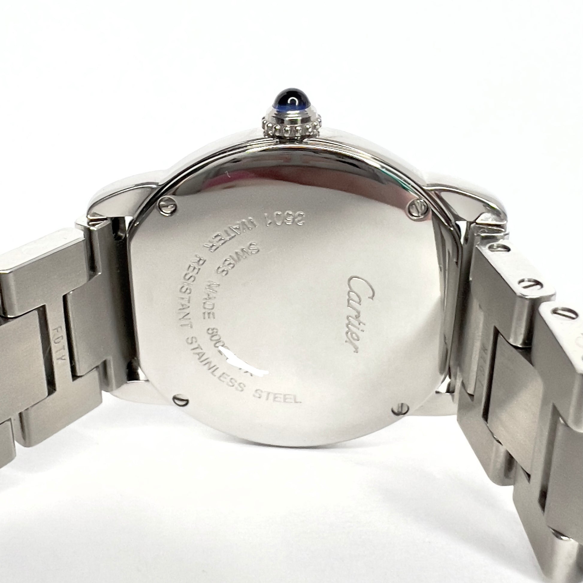 • Case: Glossy Stainless Steel hallmarked ‘Cartier’ and stamped 'Swiss Made', 'Water Resistant', 'Stainless Steel, 3601 and Serial Number