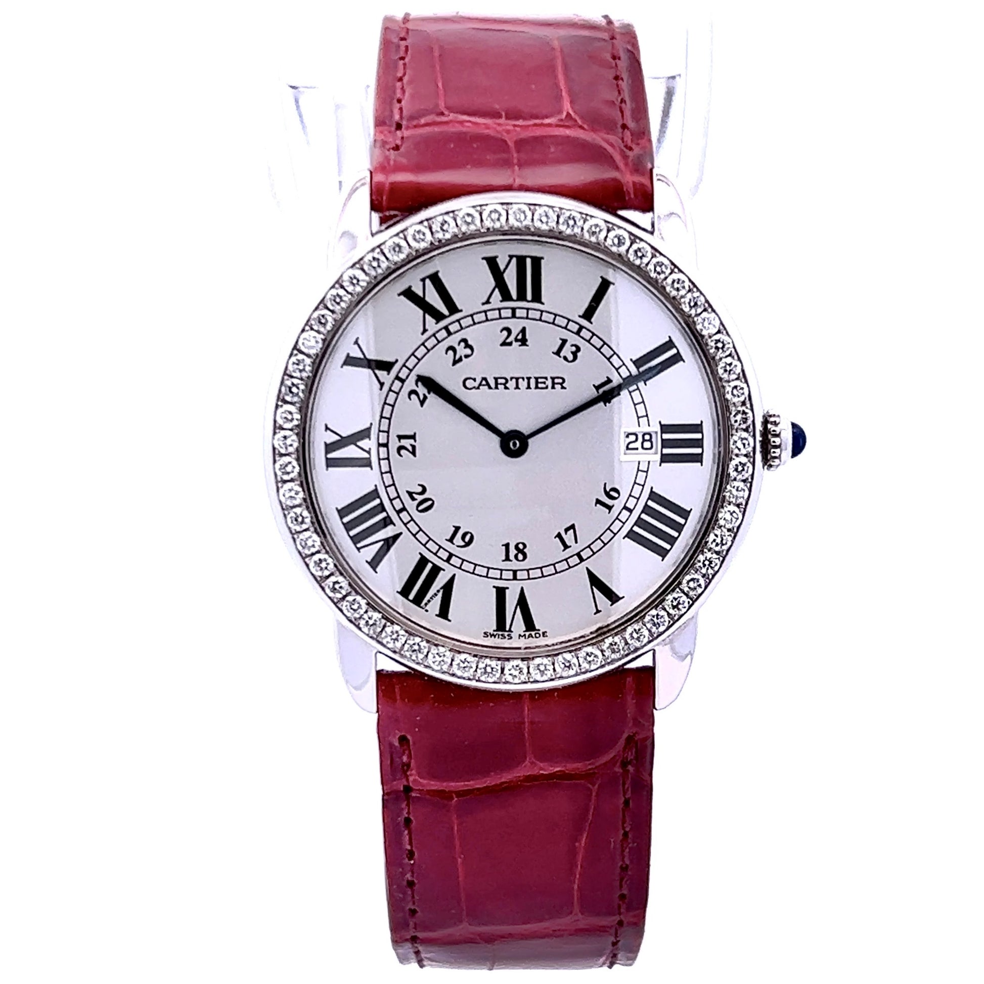 Authentic Pre Owned CARTIER RONDE SOLO Date 36mm Quartz Steel 0.90TCW DIAMOND Watch